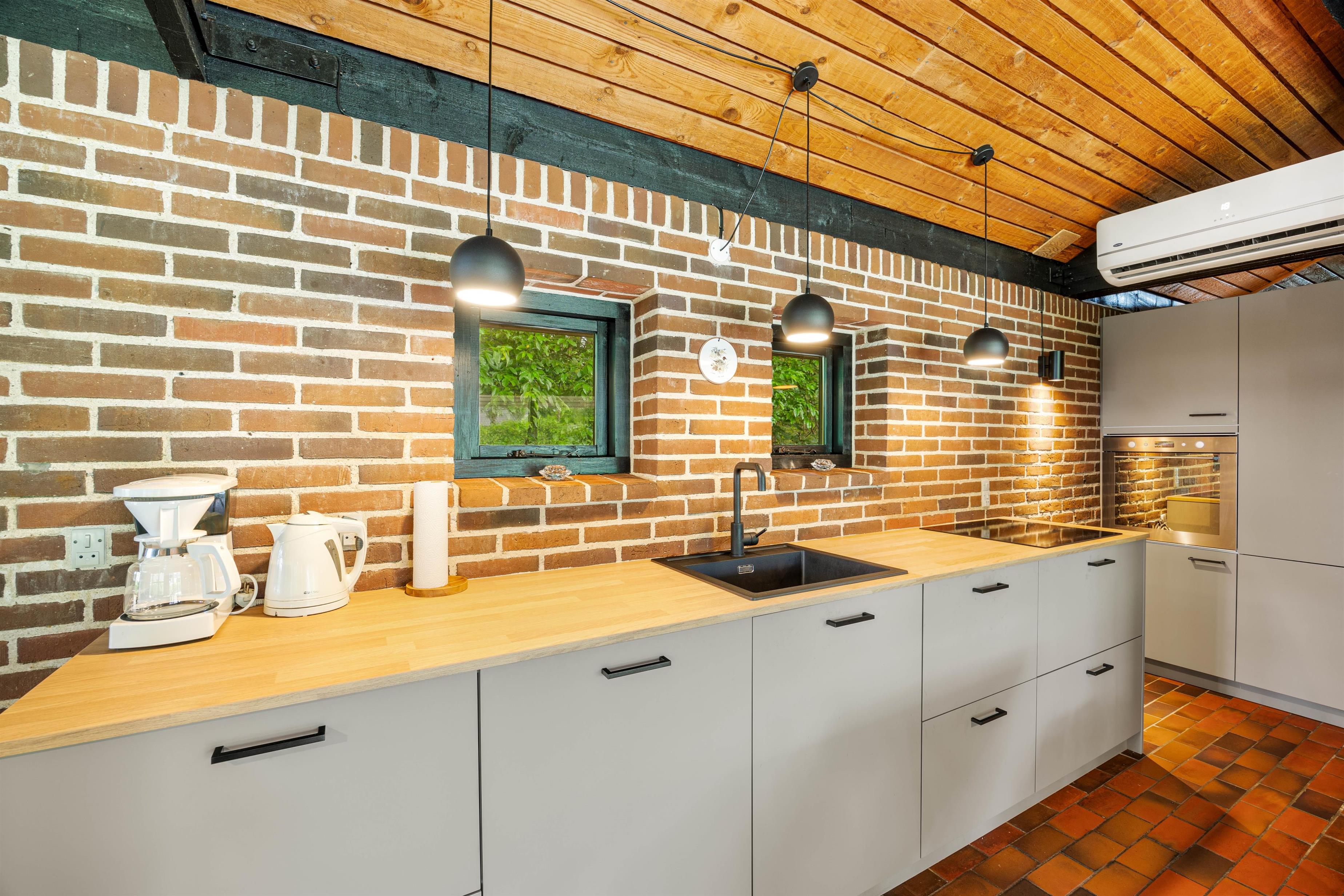 Køkkenet er udstyret med en opvaskemaskine, der tager sig af opvasken, så I kan bruge mere tid på afslapning og hygge. Den hyggelige stue med både pejs og pejseindsats skaber en varm atmosfære, og her kan I nyde afdæmpede aftener i godt selskab.