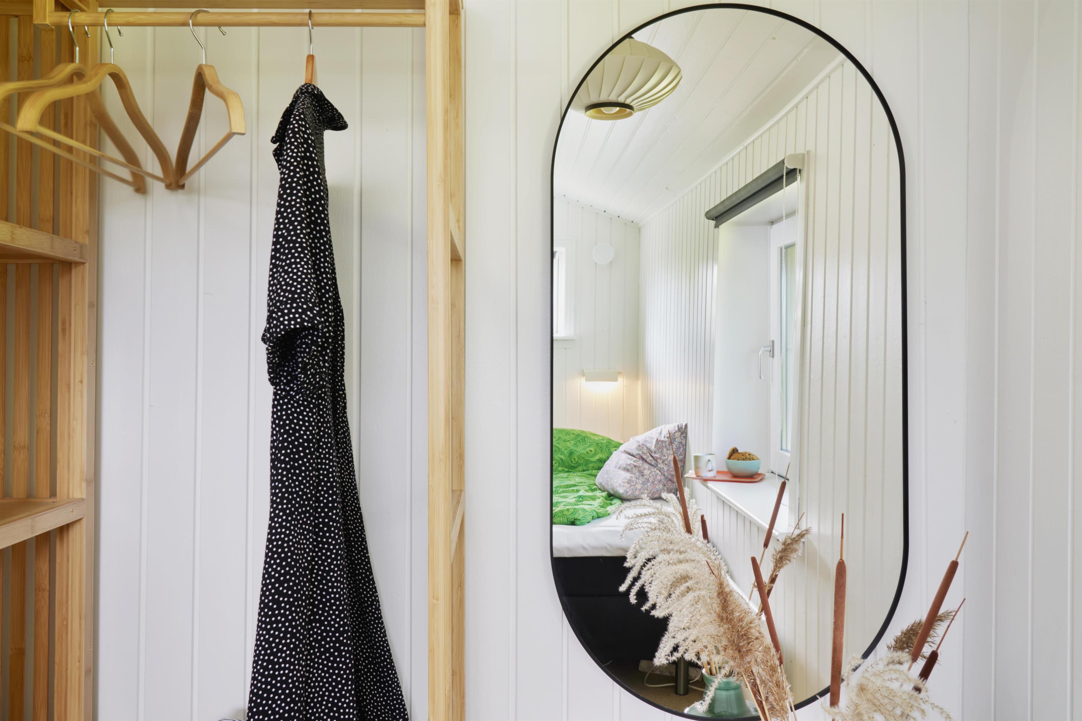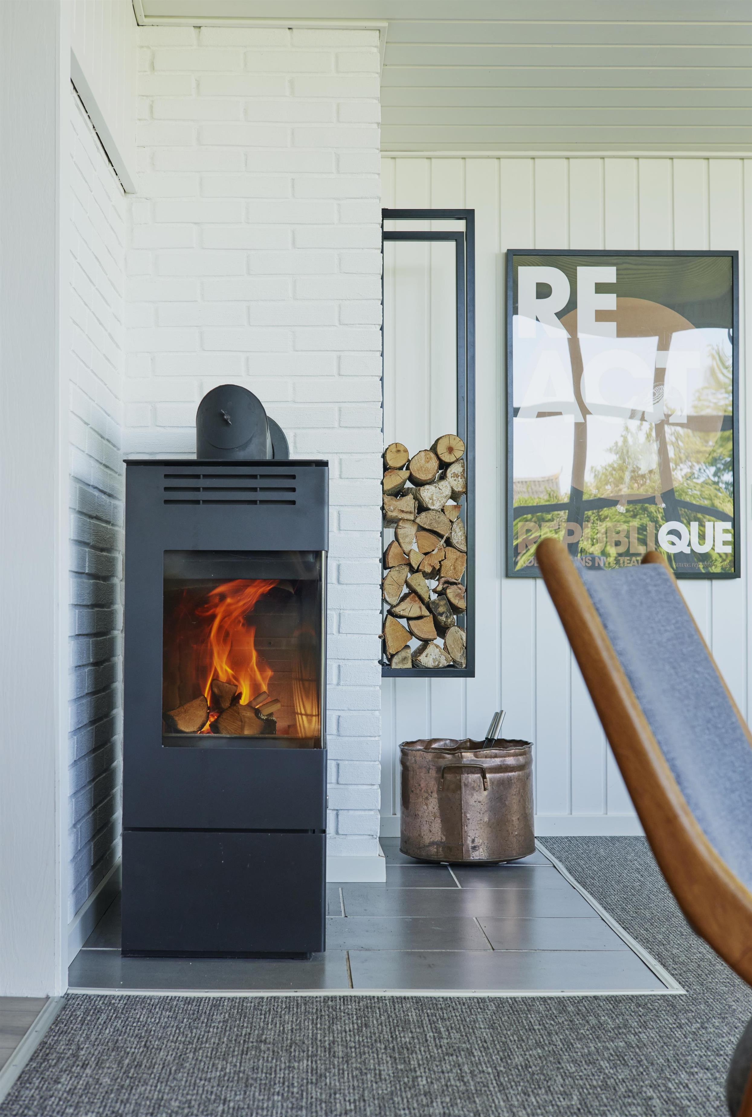 Bevæger I jer videre fra køkkenet, kan I samles i opholdsrummet med brændeovnen der sørger for varme og hygge, perfekt til at skabe en afslappet atmosfære på de køligere dage med hyggen i fokus. I behøver sågar heller ikke at bekymre jer om garderoben efter en lang dag ved fjorden, da vaskemaskinen tager sig af det.