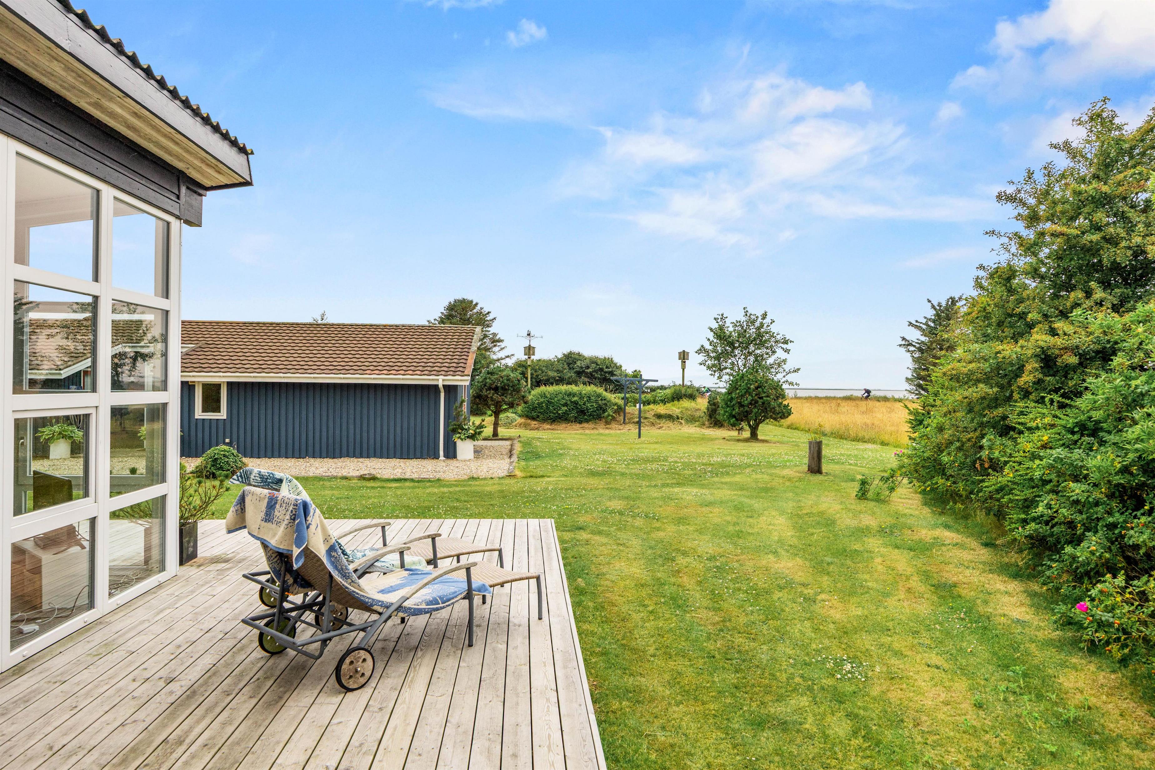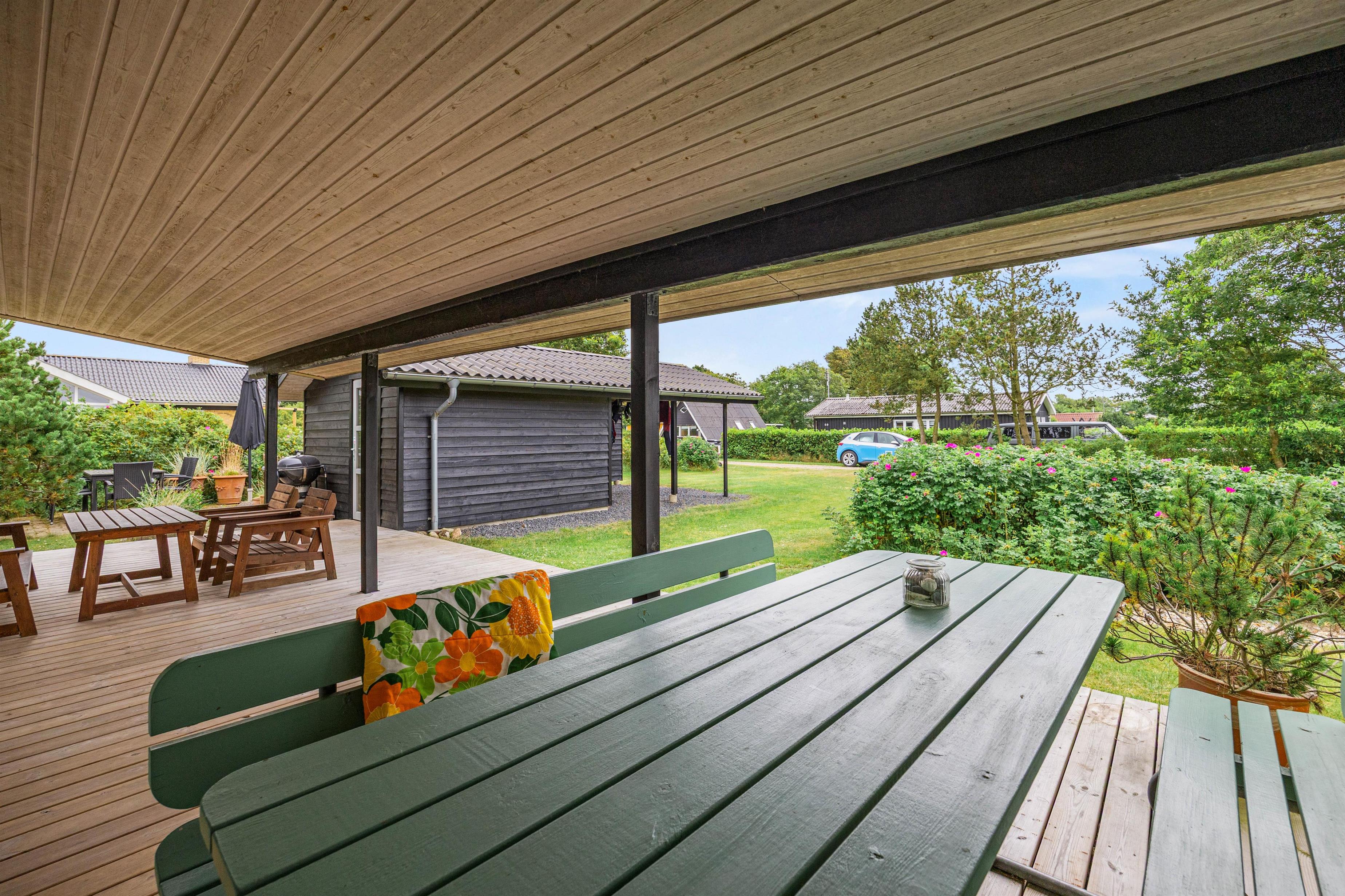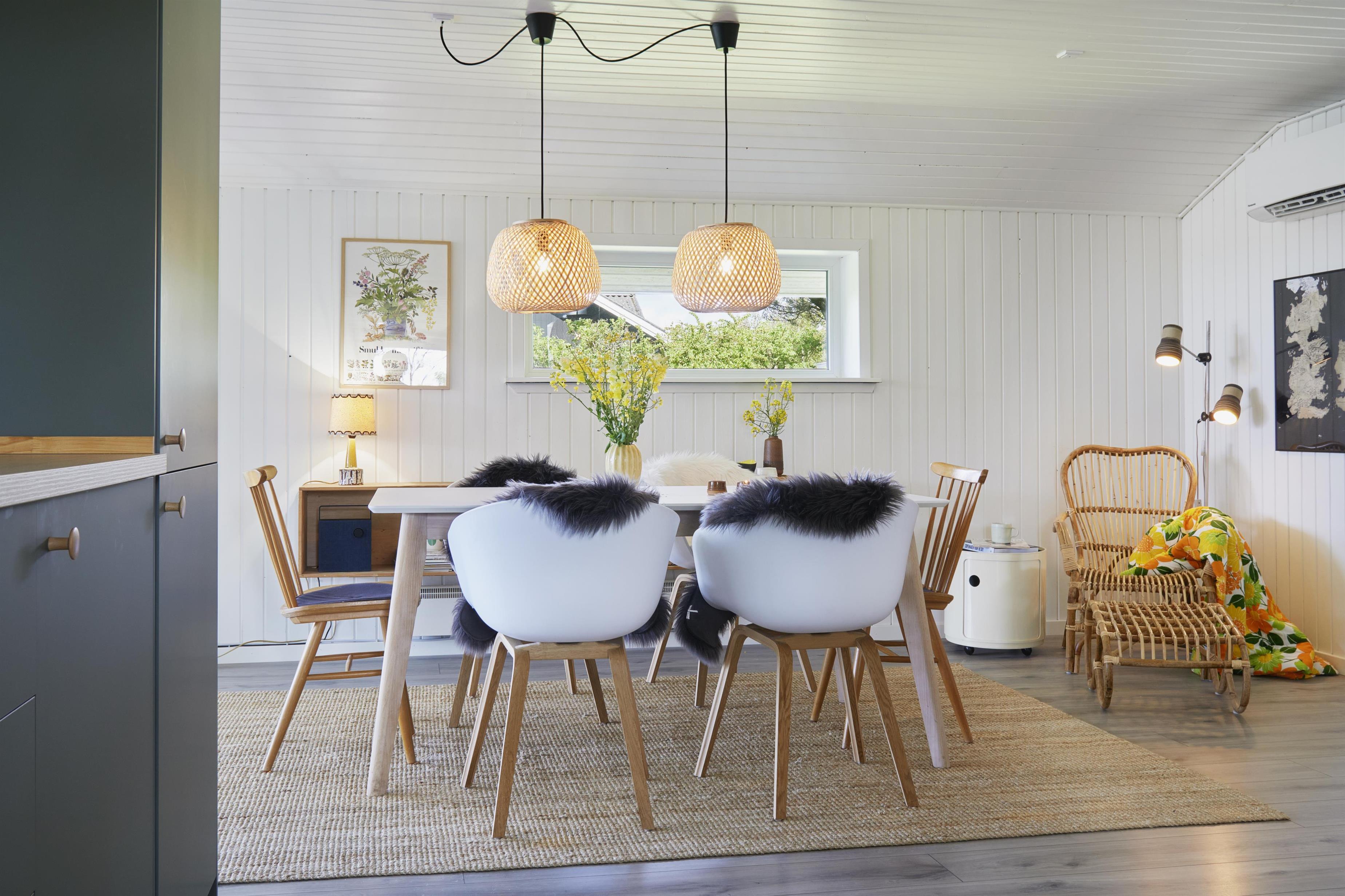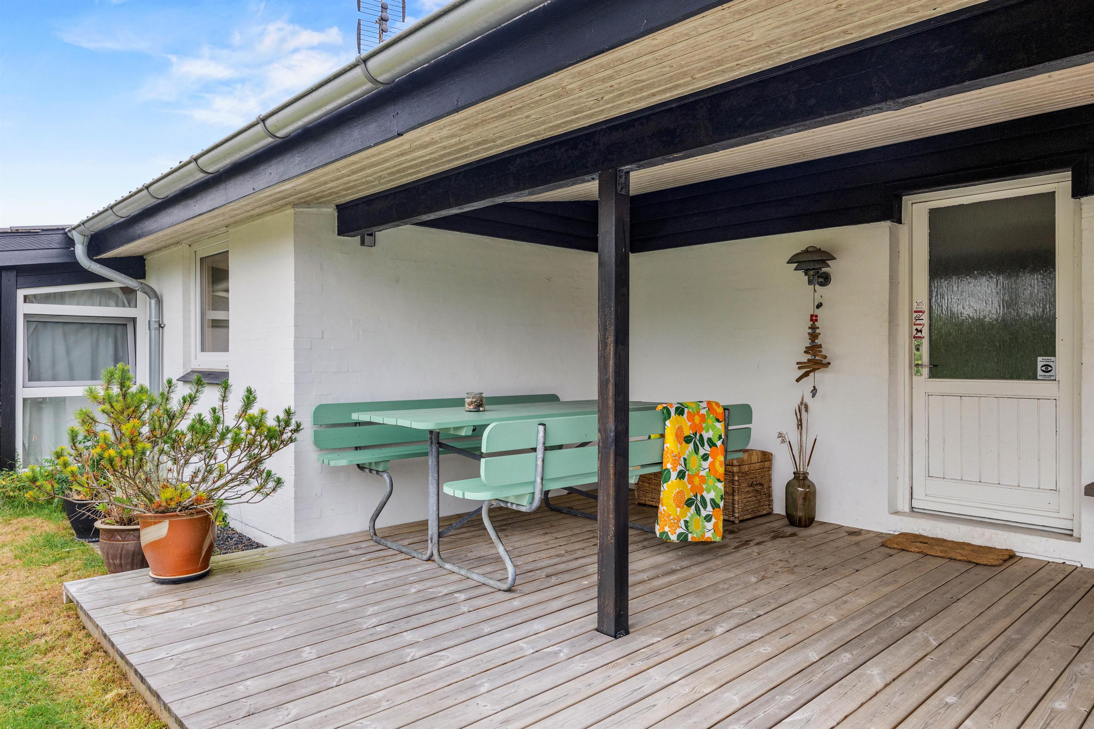 Sommerhuset har både en åben og en overdækket terrasse, samt et afskærmet område, så I kan vælge den perfekte plads uanset vejret. Her kan I nyde dagens første kop kaffe i skyggen eller samles til hyggelige måltider under åben himmel.