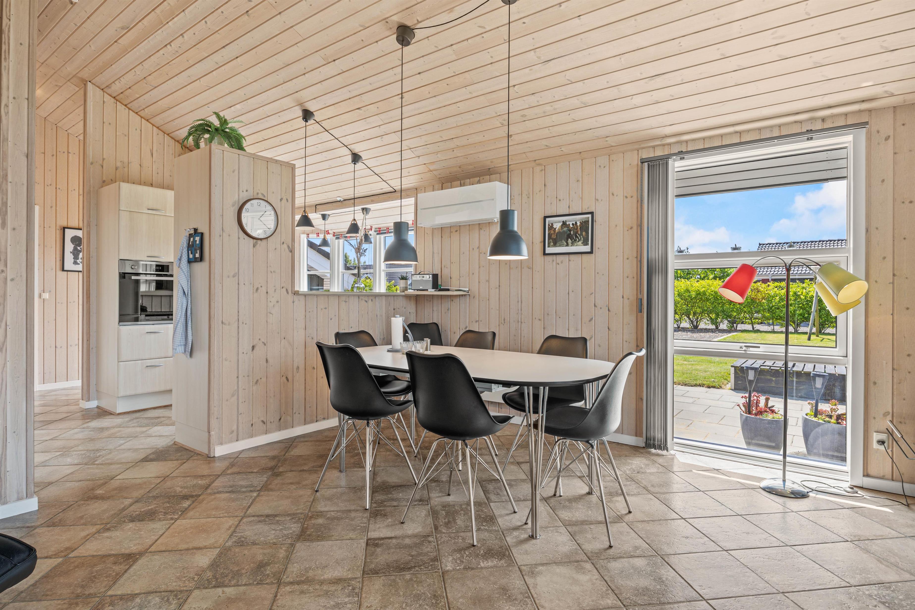Udemiljøet ved sommerhuset giver fantastiske muligheder for at nyde de lange, lyse dage i den friske luft. Terrassen er designet til at imødekomme alle jeres behov, med både åbne, overdækkede og afskærmede områder, hvor I kan nyde jeres måltider eller bare slappe af med en god bog. Om aftenen er grillen perfekt til at tilberede lækre måltider, mens I nyder solnedgangen. Vildmarksbadet sætter prikken over i'et for en afslappende aften under stjernerne.