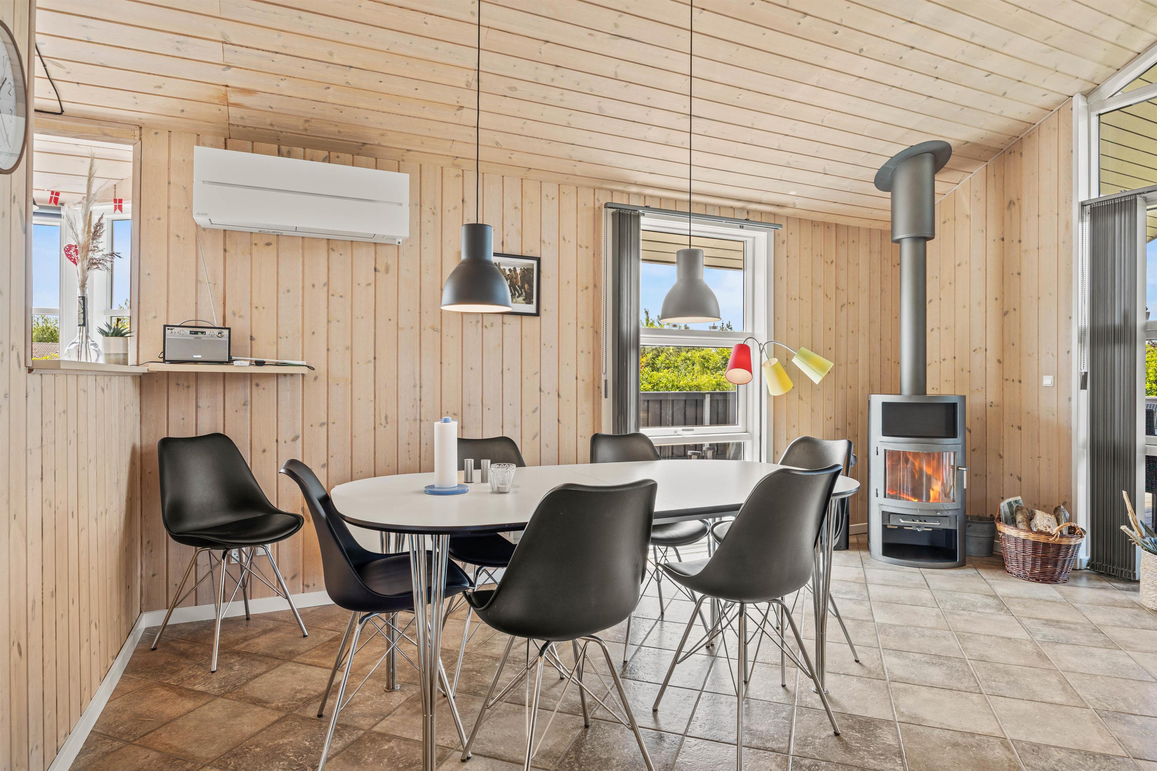 Sommerhuset er også udstyret med 2 badeværelser, begge med praktisk gulvvarme, der giver en luksuriøs oplevelse, især i de kolde måneder. Efter en dag med aktiviteter kan I lade stressen forsvinde i den dejlige sauna eller tømmespa, der begge bidrager til fuldkommen afslapning. Dette sommerhus emmer af rigtig sommerhus stemning og ingen undtagelser er brændeovnen, som både med sine varme flammer og knitrende lyde skaber hygge og stemning.