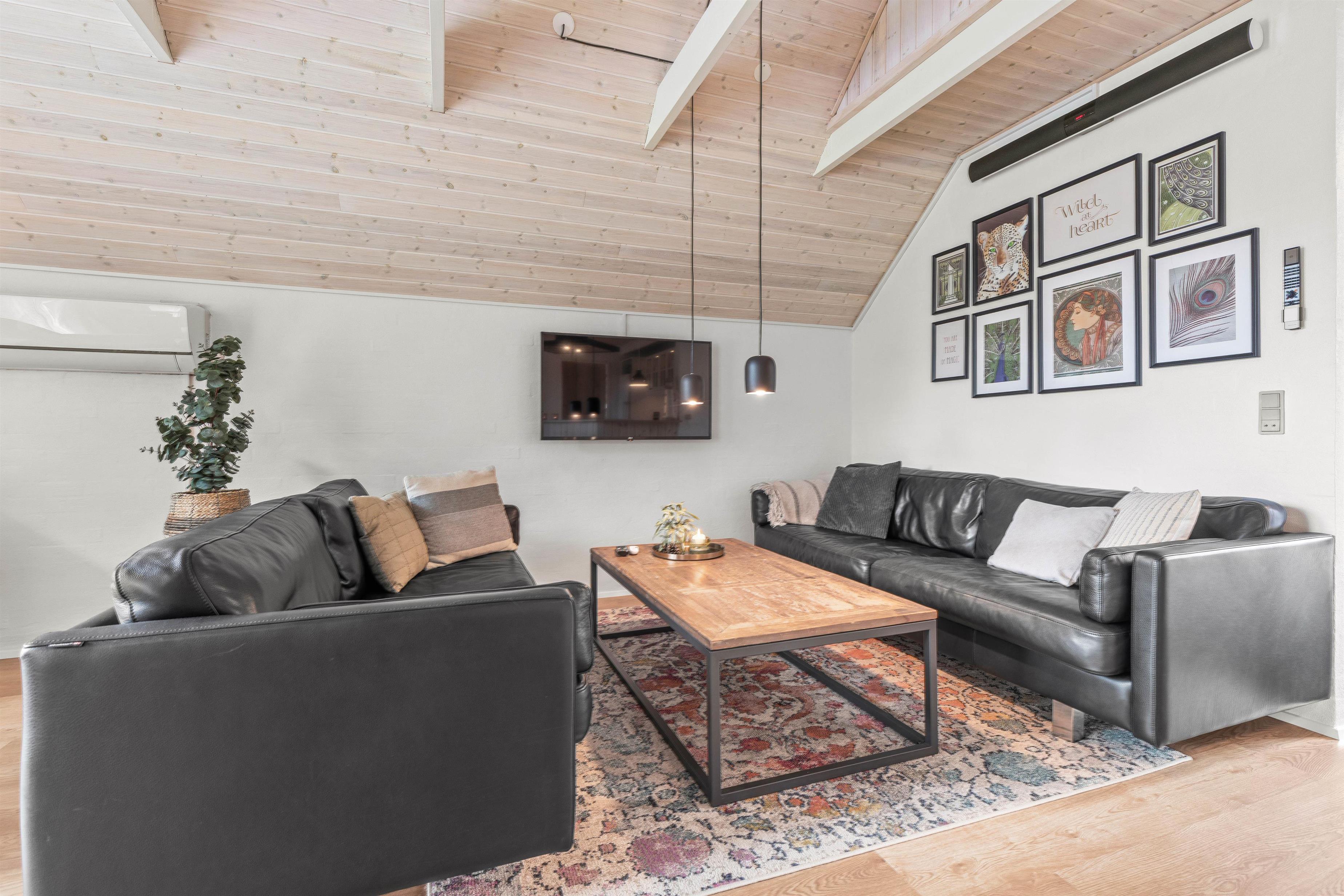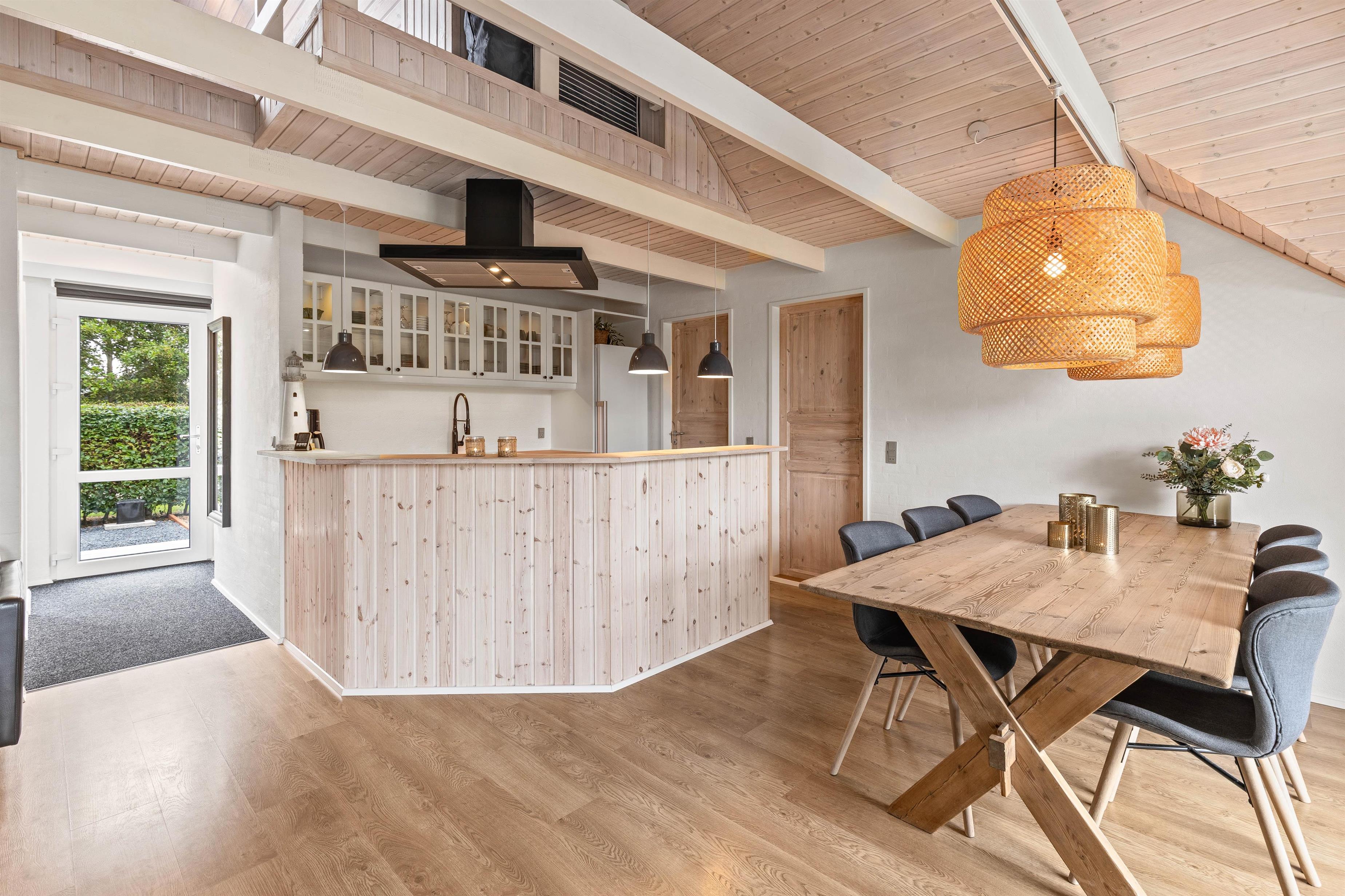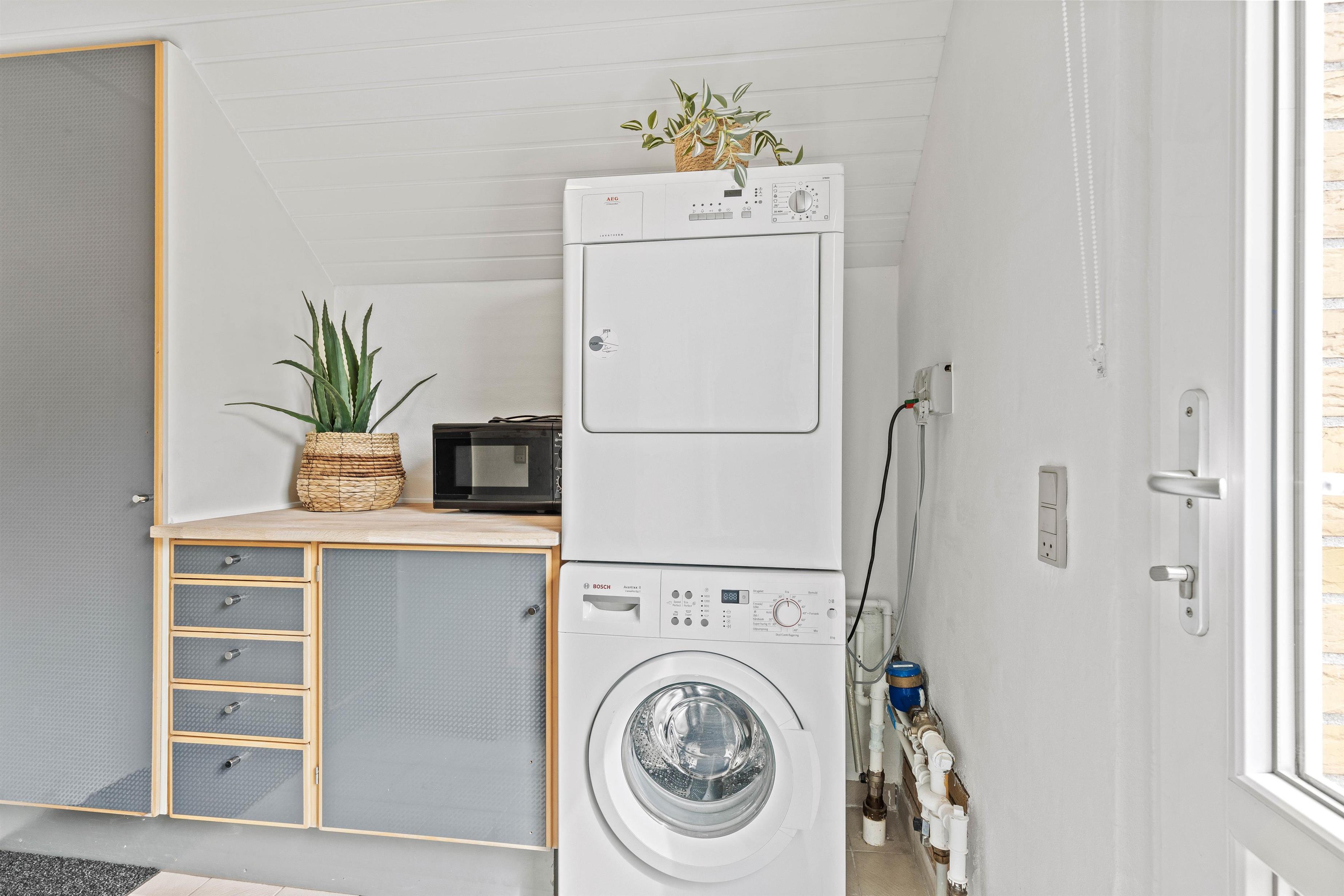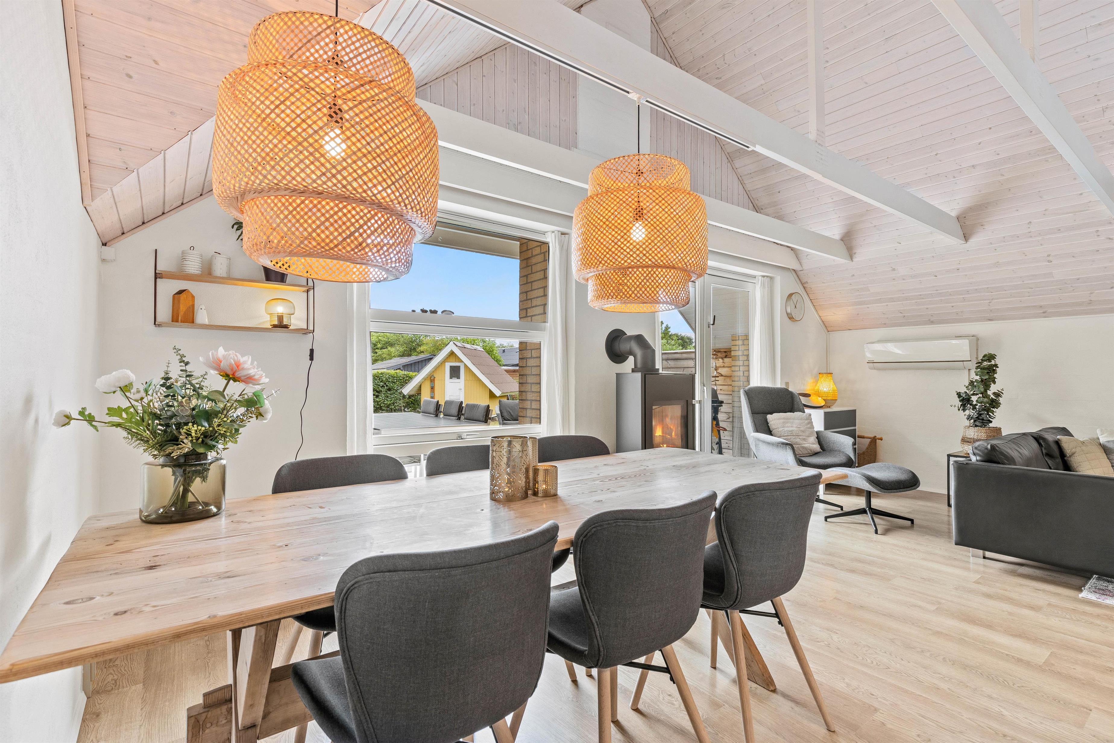 Her er mange gode og praktiske faciliteter, som vaskemaskine, tørretumbler og endda opvaskemaskine, så I har mere tid til at slappe af med hinanden på ferien. Her er også en energivenlig varmepumpe, der giver jer mulighed for at opvarme sommerhuset hurtigt og effektivt. Dertil er der en brændeovn, som både sørger for varme, hygge og en helt unik sommerhusatmosfære. Der er noget dragende ved at stirre ind i de knitrende flammer, mens man mærker varmen brede sig.