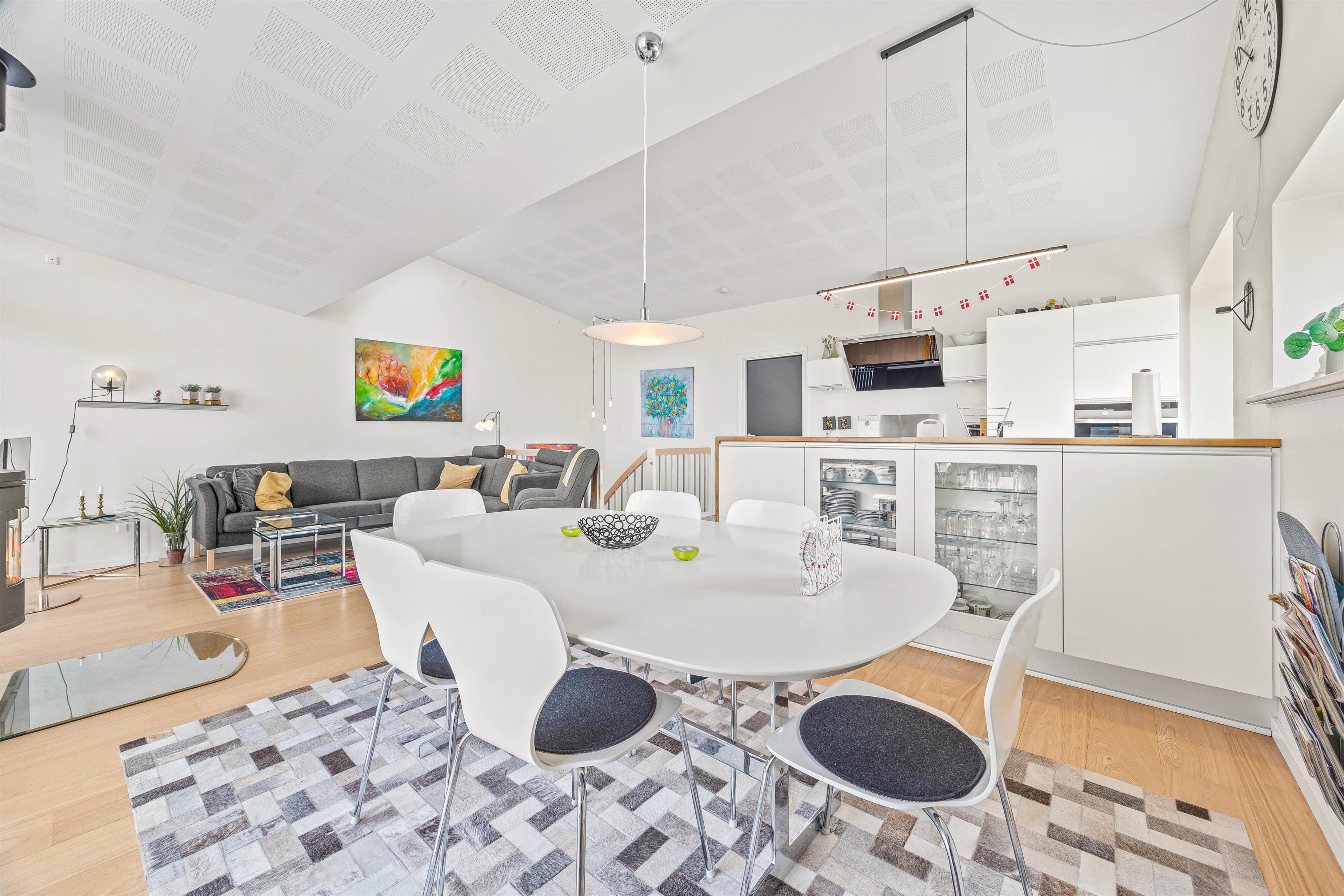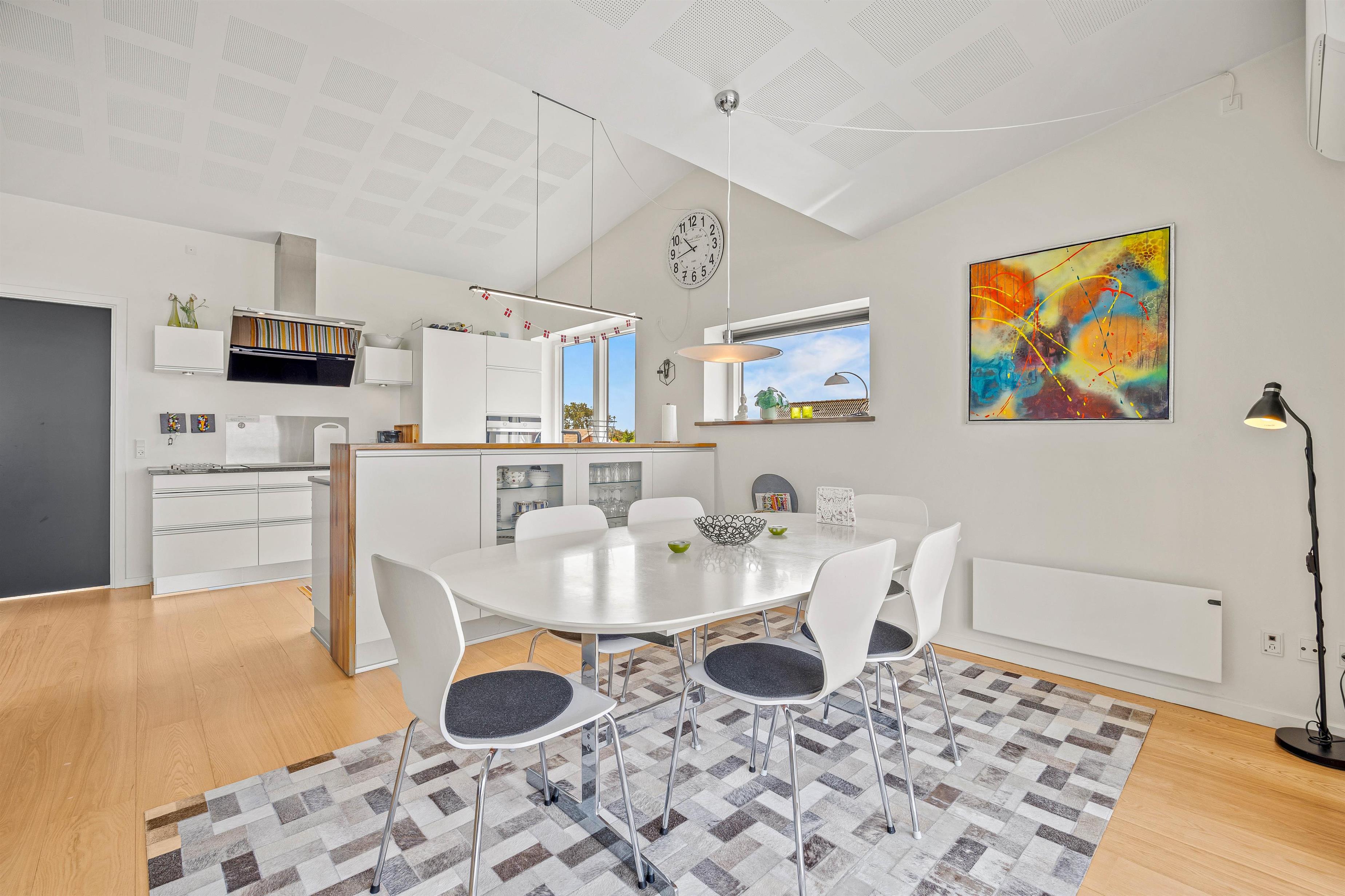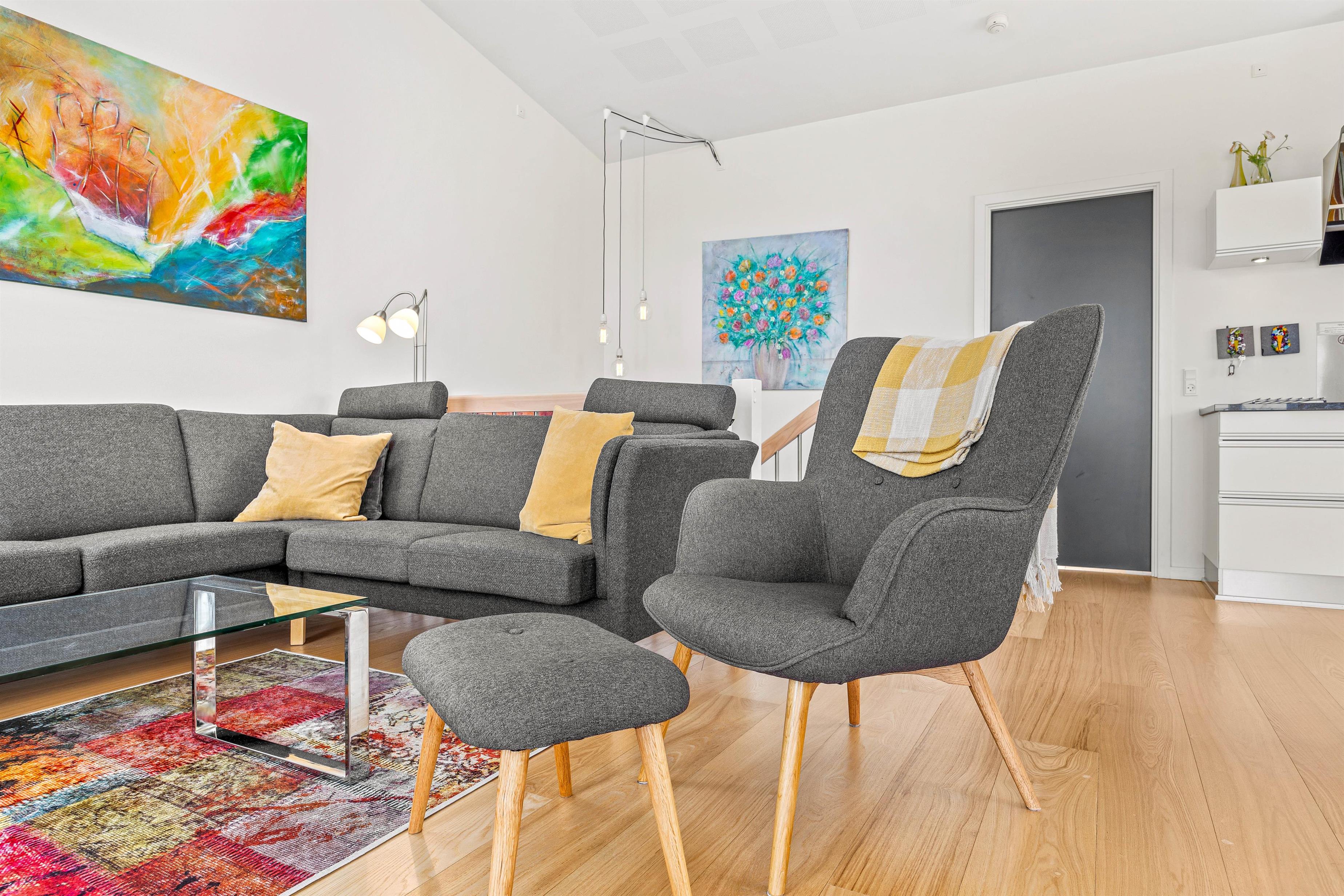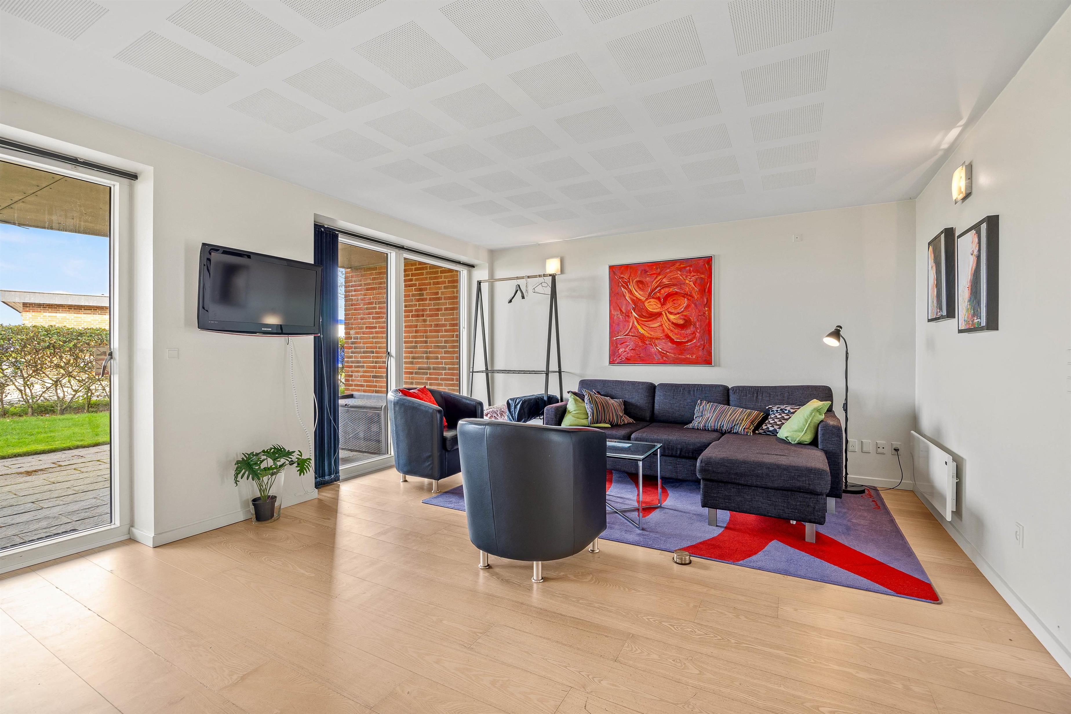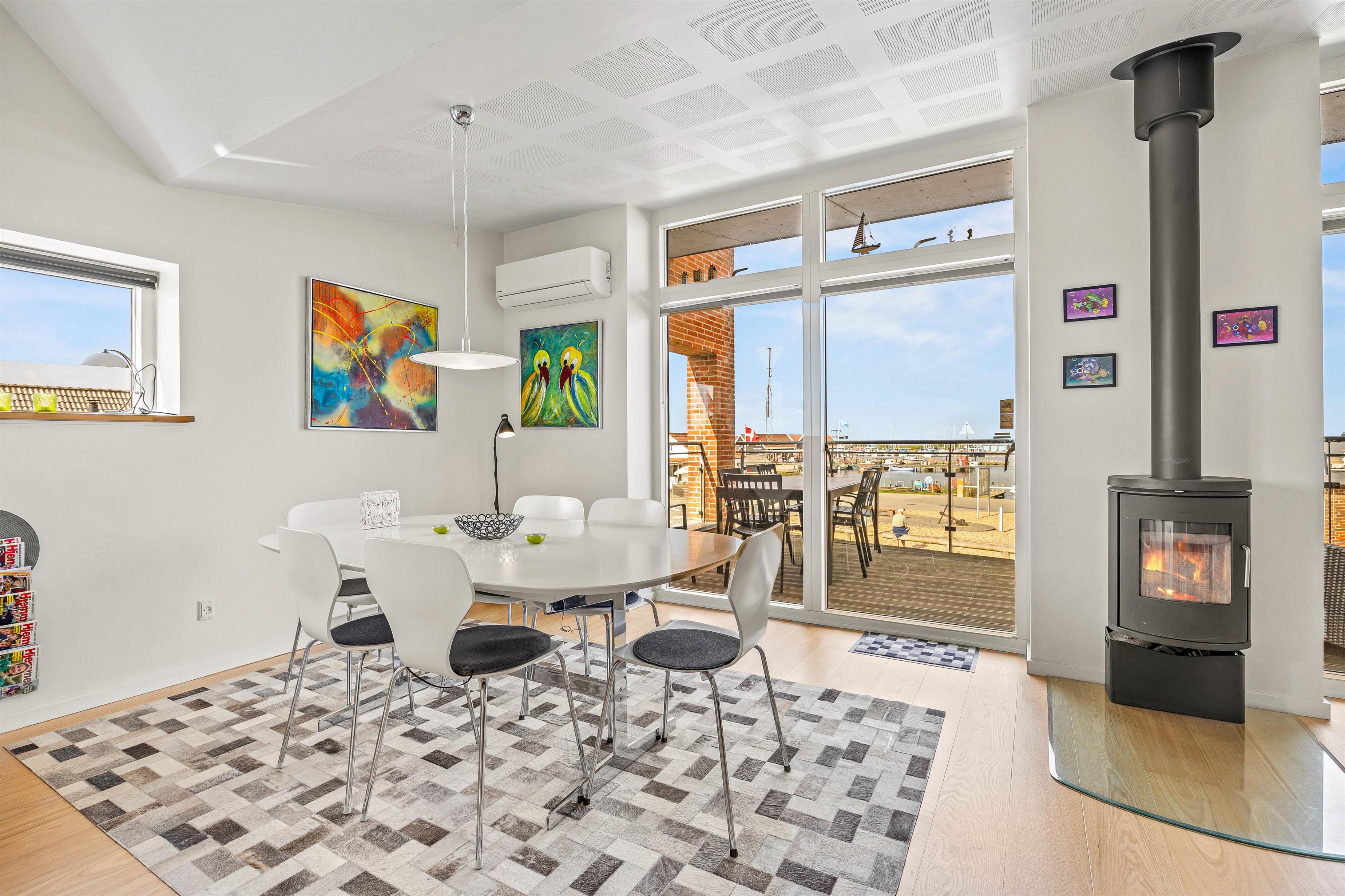 Stuen er lys og indbydende med en hyggelig brændeovn, der skaber en varm atmosfære på kølige aftener. Gode siddepladser og en Chromecast gør det let at slappe af og nyde jeres yndlingsfilm og serier. Her kan familien samles til fælles hygge og aktiviteter.