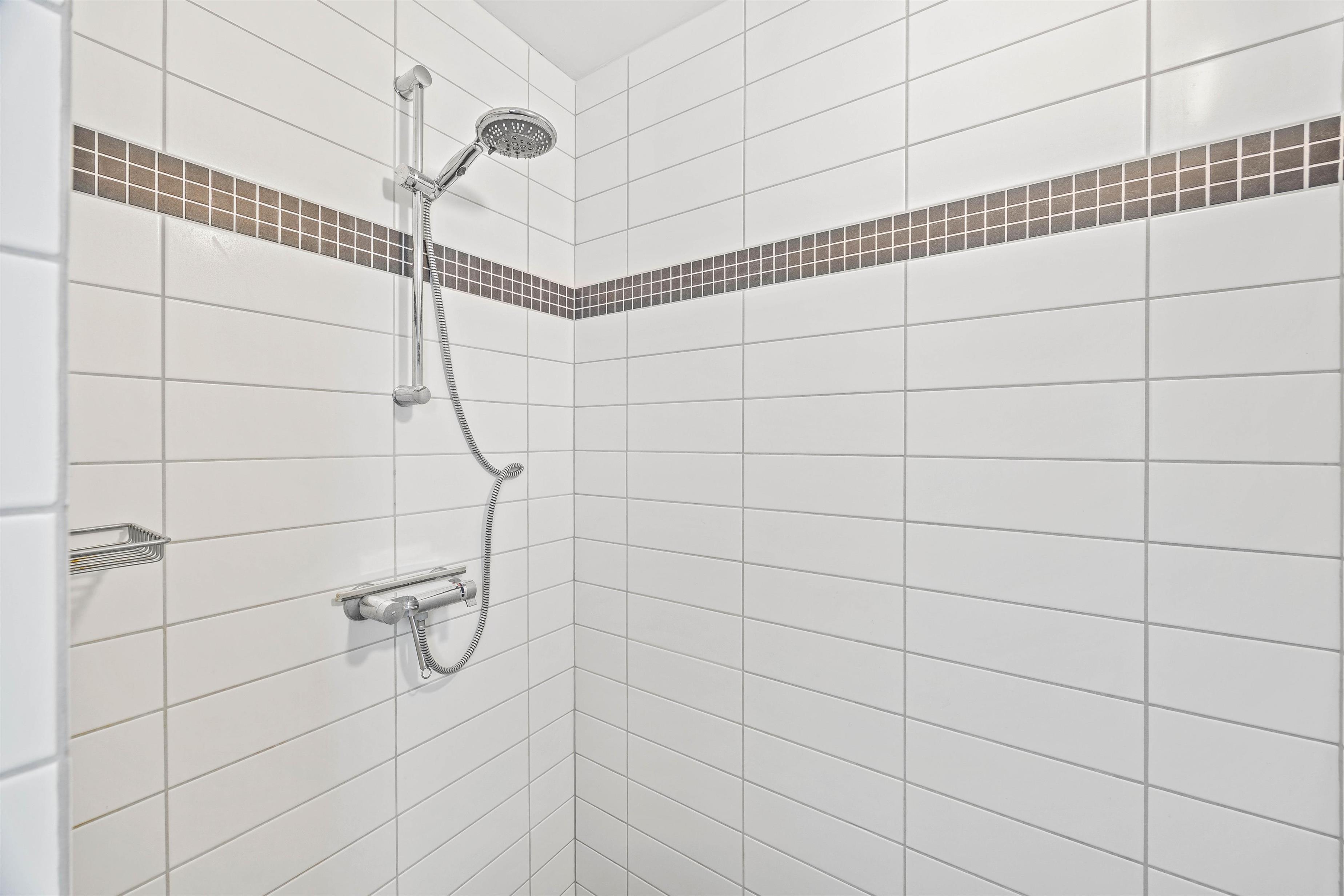 Badeværelserne i ferielejligheden er lyse og funktionelle. Med 2 badeværelser undgår I kø om morgenen, og gulvvarmen i badeværelset sikrer en behagelig start på dagen. Der er også adgang til både vaskemaskine og tørretumbler, hvilket gør det nemt at holde garderoben frisk under hele ferien.