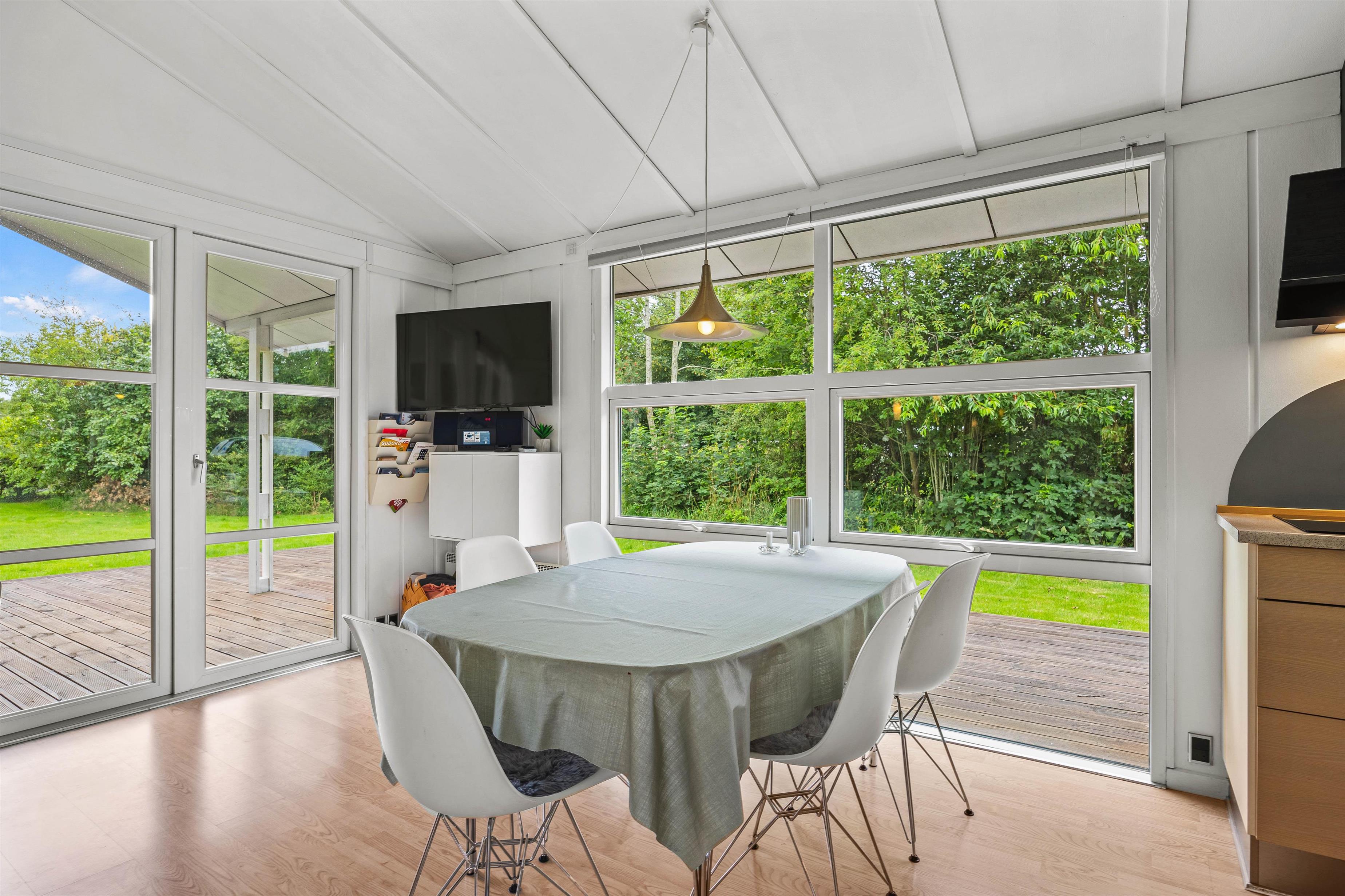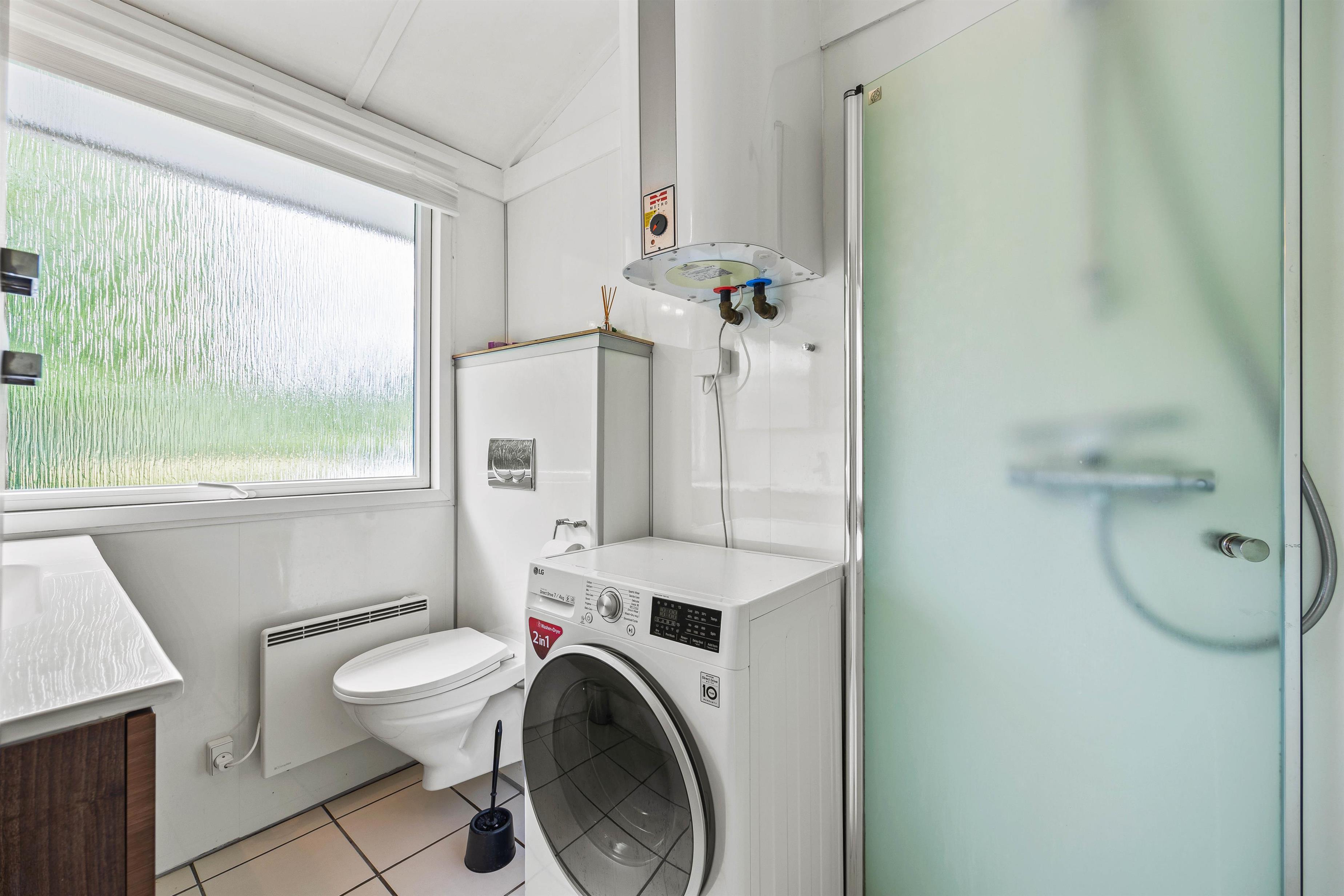 Badeværelset er udstyret med gulvvarme, så I kan nyde varme fødder selv på kølige morgener. Sommerhuset tilbyder desuden både vaskemaskine og tørretumbler, så I nemt kan holde tøjet rent og friskt under hele opholdet.