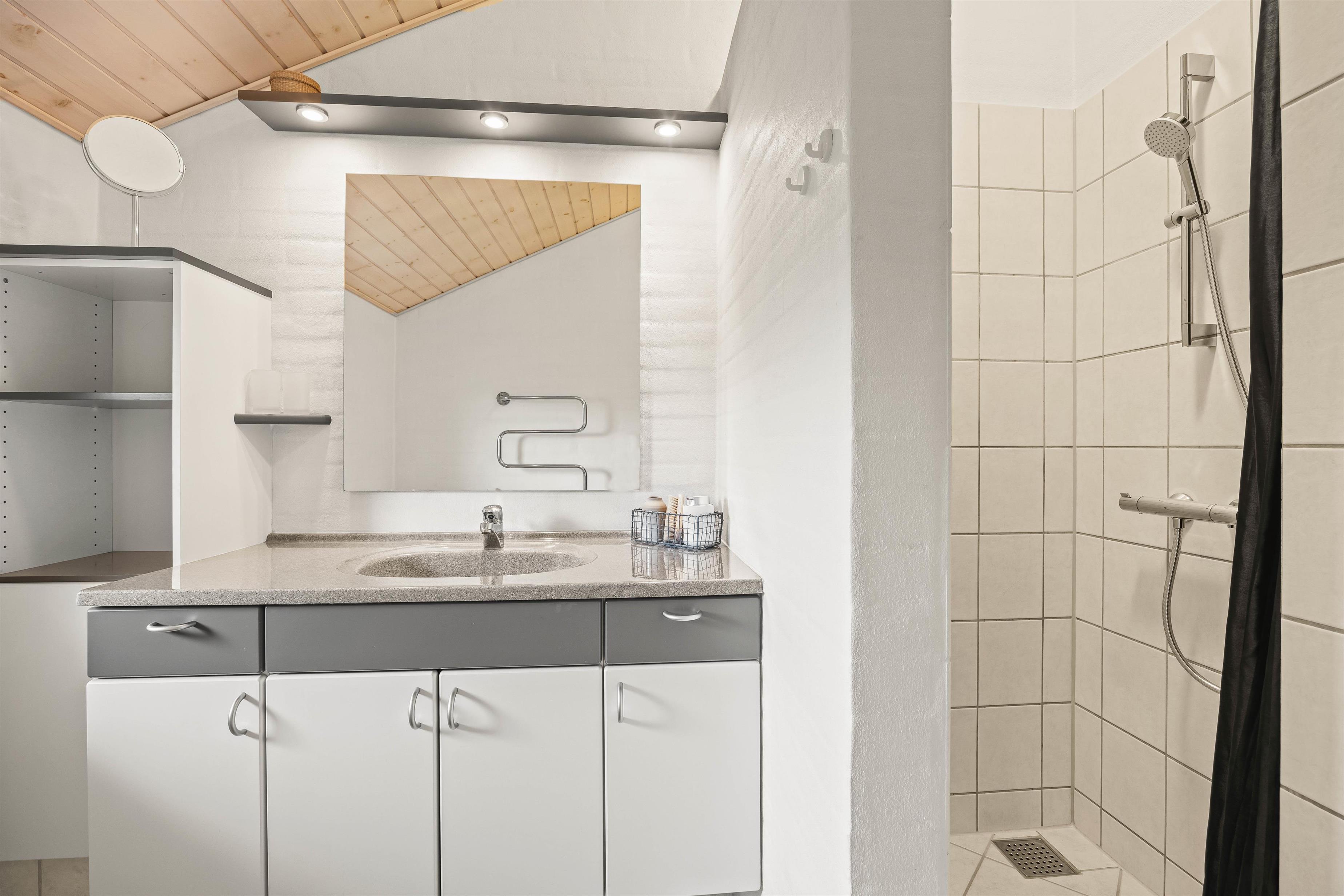 Badeværelserne er udstyret med behagelig gulvvarme for ekstra komfort. Derudover finder I både vaskemaskine og tørretumbler i huset, så I kan holde garderoben frisk og ren under hele jeres ophold.