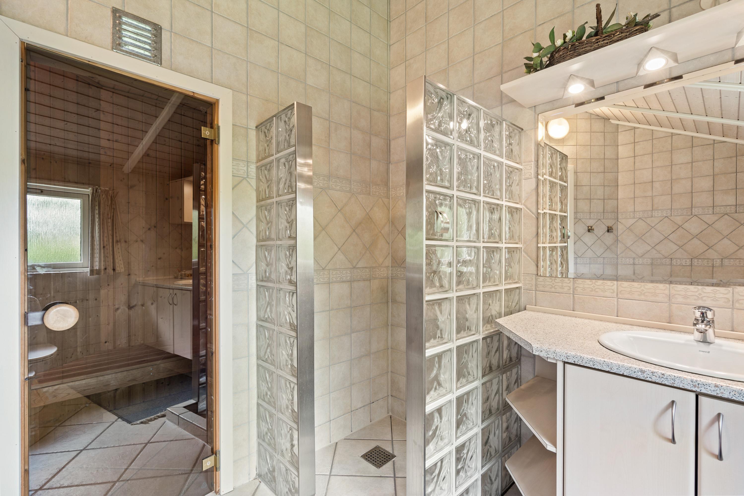Et af højdepunkterne i sommerhuset på Strandvænget 48 i Bork Havn finder I på badeværelset. Her venter jer nemlig en dejlig spa og en skøn sauna, hvor I kan tilbringe mange afslappende stunder i løbet af ferien, hvor I kommer helt ned i gear.