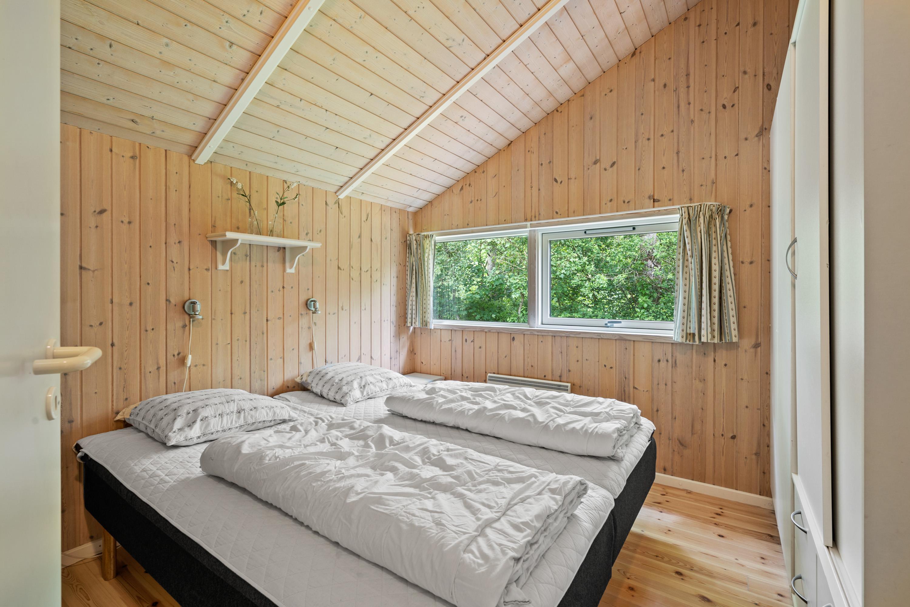 Det 110 kvadratmeter store sommerhus rummer 3 gode soveværelser. De 3 soveværelser er i alt indrettet med 2 dobbeltsenge og 2 enkeltsenge, som I kan samle ny energi i. Med både et badeværelse og et gæstetoilet er der ingen risiko for kø til toilettet fra morgenstunden.