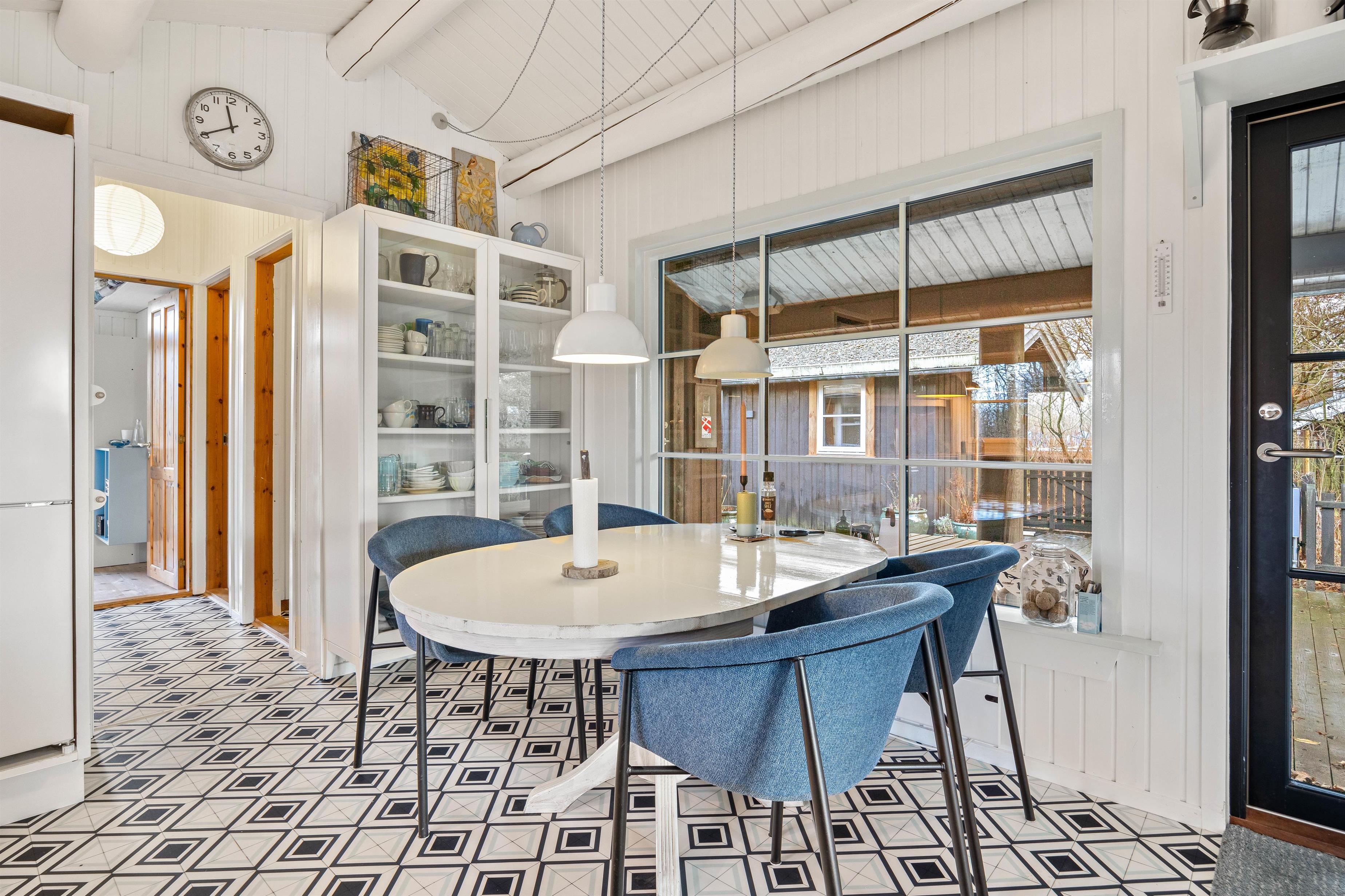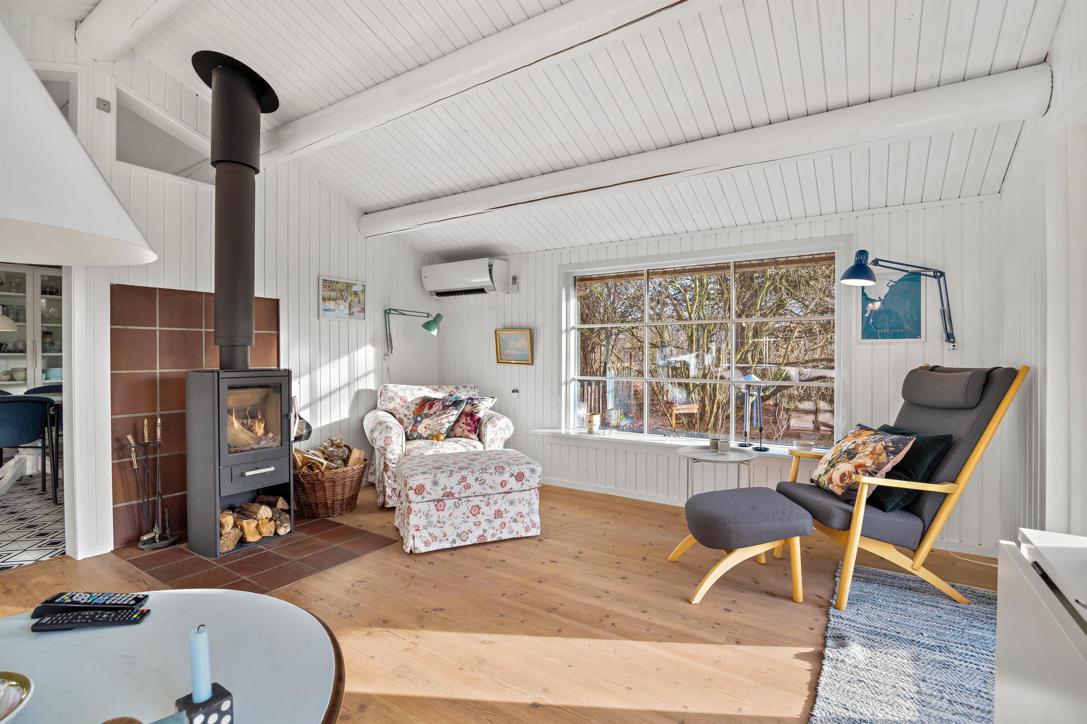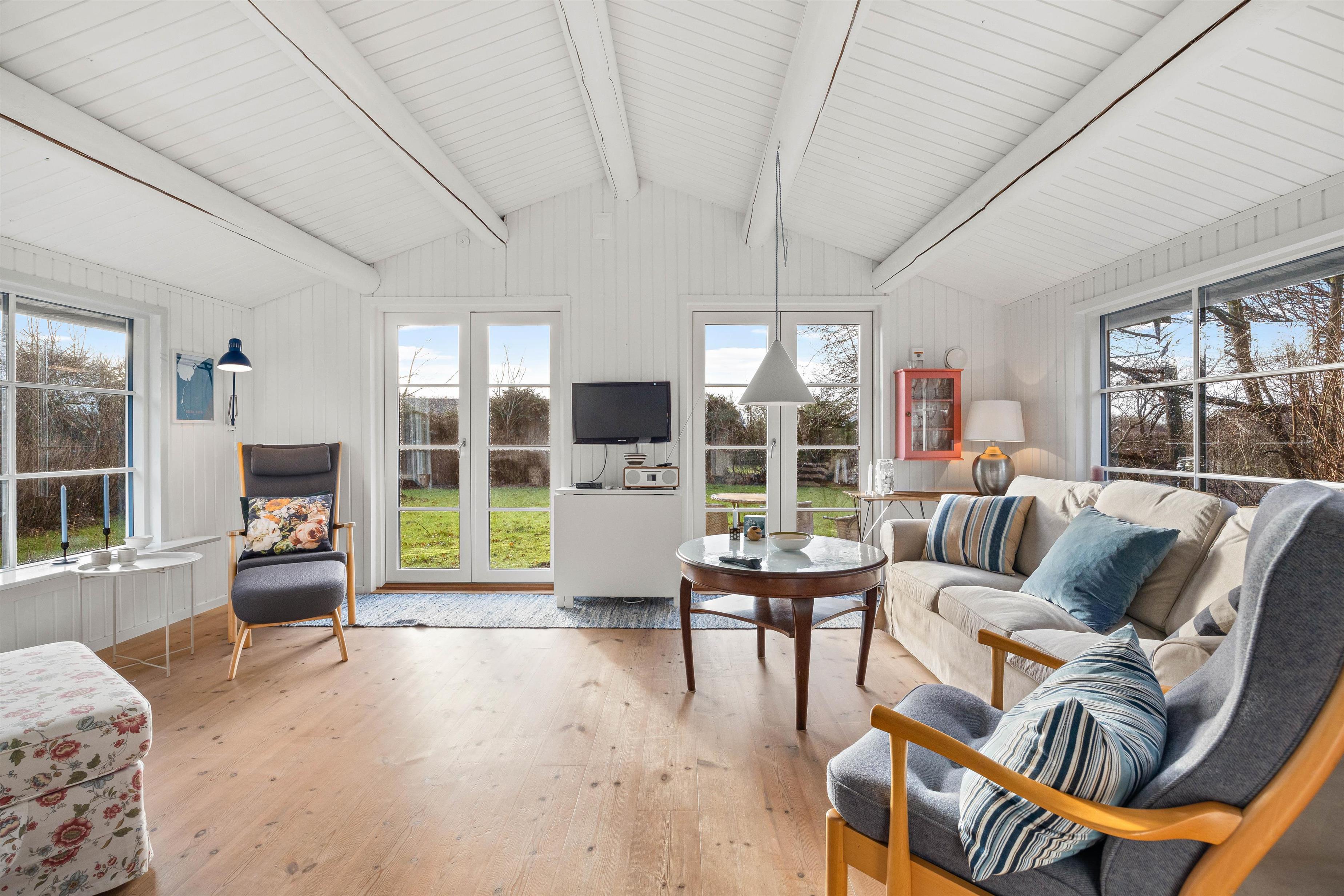 I sommerhuset på Tues Drøwt 44 i Bork bliver I budt velkommen af sommerhusets lyse og hyggelige indretning. De mange vinduer lukker masser af lys ind, som er med til at komplimentere indretningen i feriehuset.