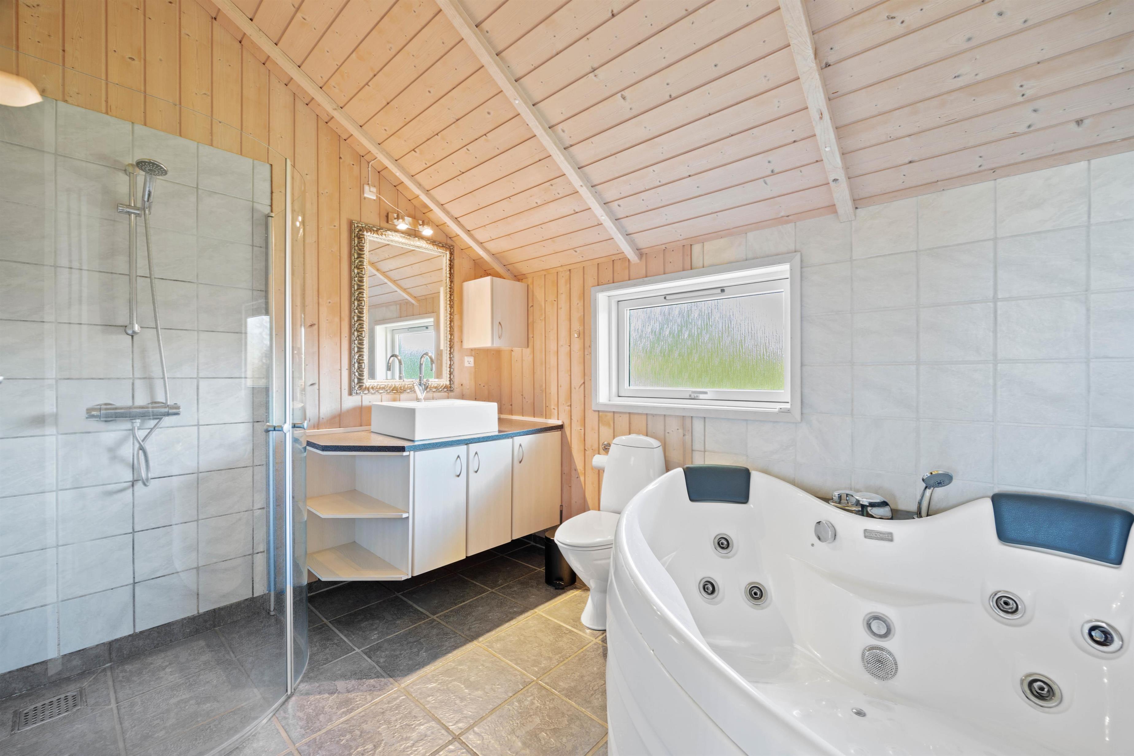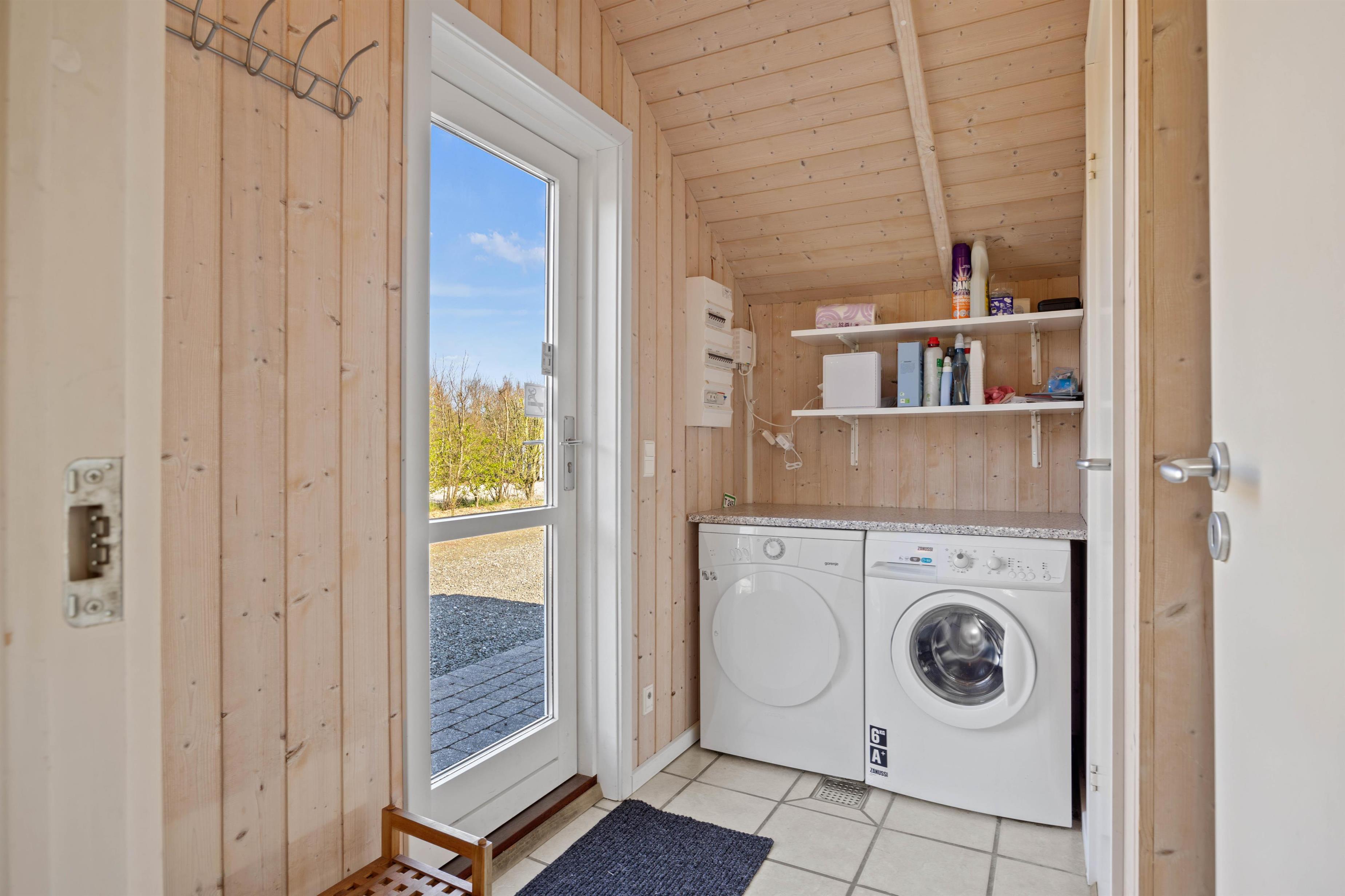 De 2 charmerende badeværelser, udstyret med behagelig gulvvarme, sikrer en skøn start på dagen. Efter en dag fyldt med aktiviteter kan I lade jer forkæle i saunaen eller slappe af i den forfriskende tømmespa. Når det kommer til praktiske gøremål, sørger opvaskemaskinen for nem ryddeliggørelse efter måltiderne, mens både vaskemaskinen og tørretumbleren giver jer let pleje af tøjet gennem hele opholdet.