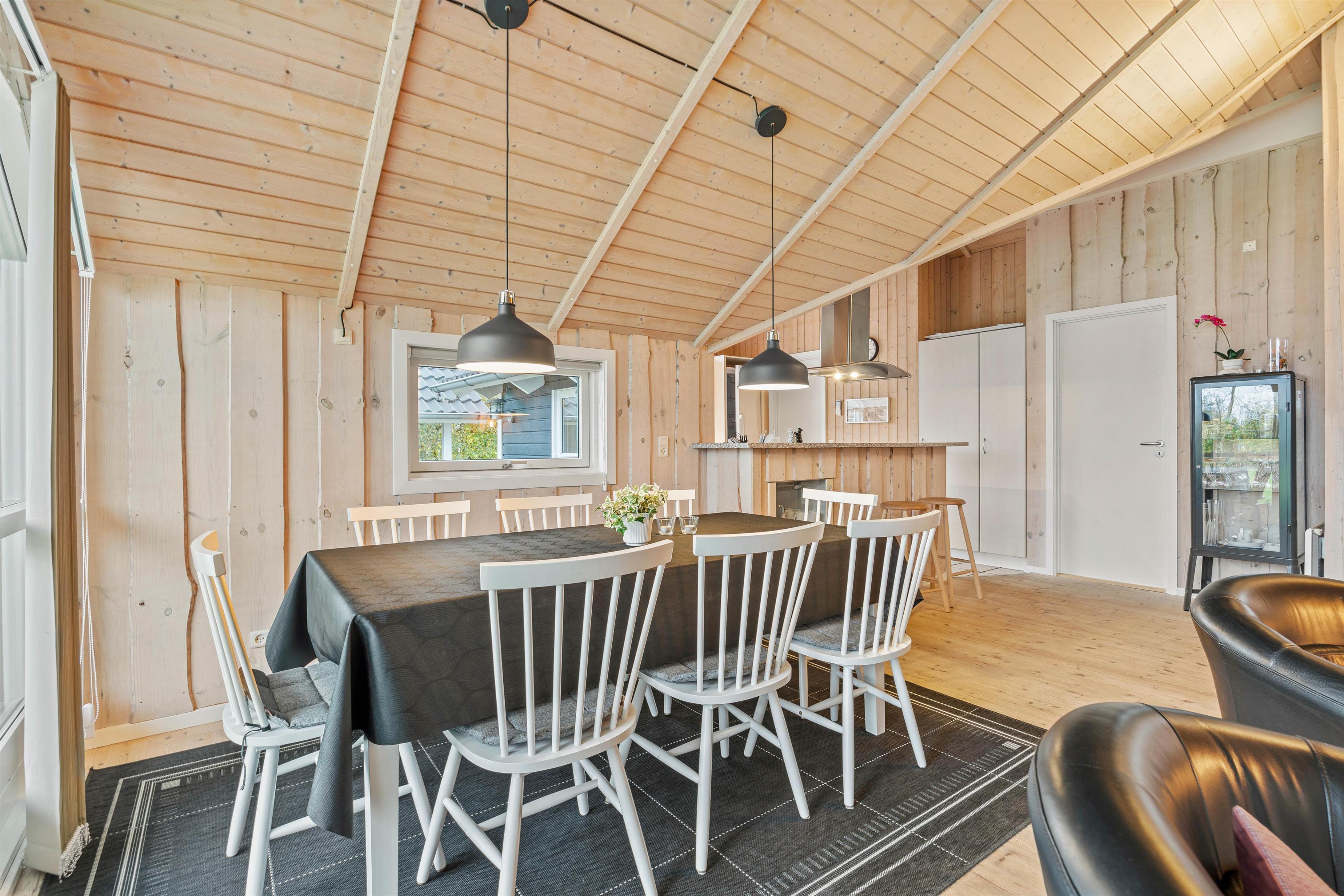 Sommerhuset på Duevænget 14 i Bork Havn tilbyder et indbydende indendørs miljø, der kombinerer praktiske elementer med maksimal komfort. Med de 3 rummelige soveværelser, der tilsammen har plads til 8, er der rigelig med mulighed for en tryg og afslappet nattesøvn. På de køligere aftener kan brændeovnen tændes, hvilket skaber den perfekte hyggestemning, hvor det er oplagt at nyde aftenen sammen omkring den knitrende ild.