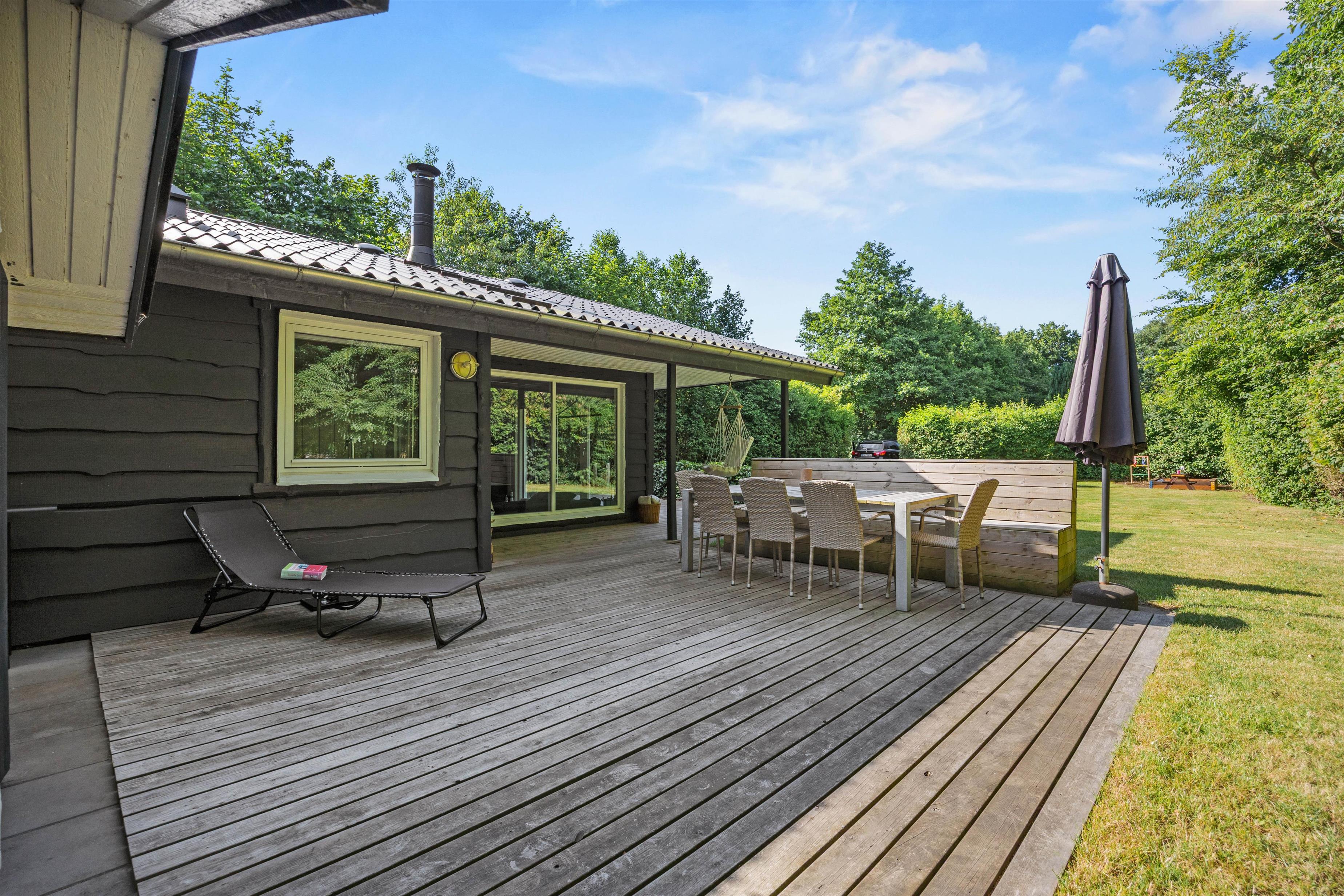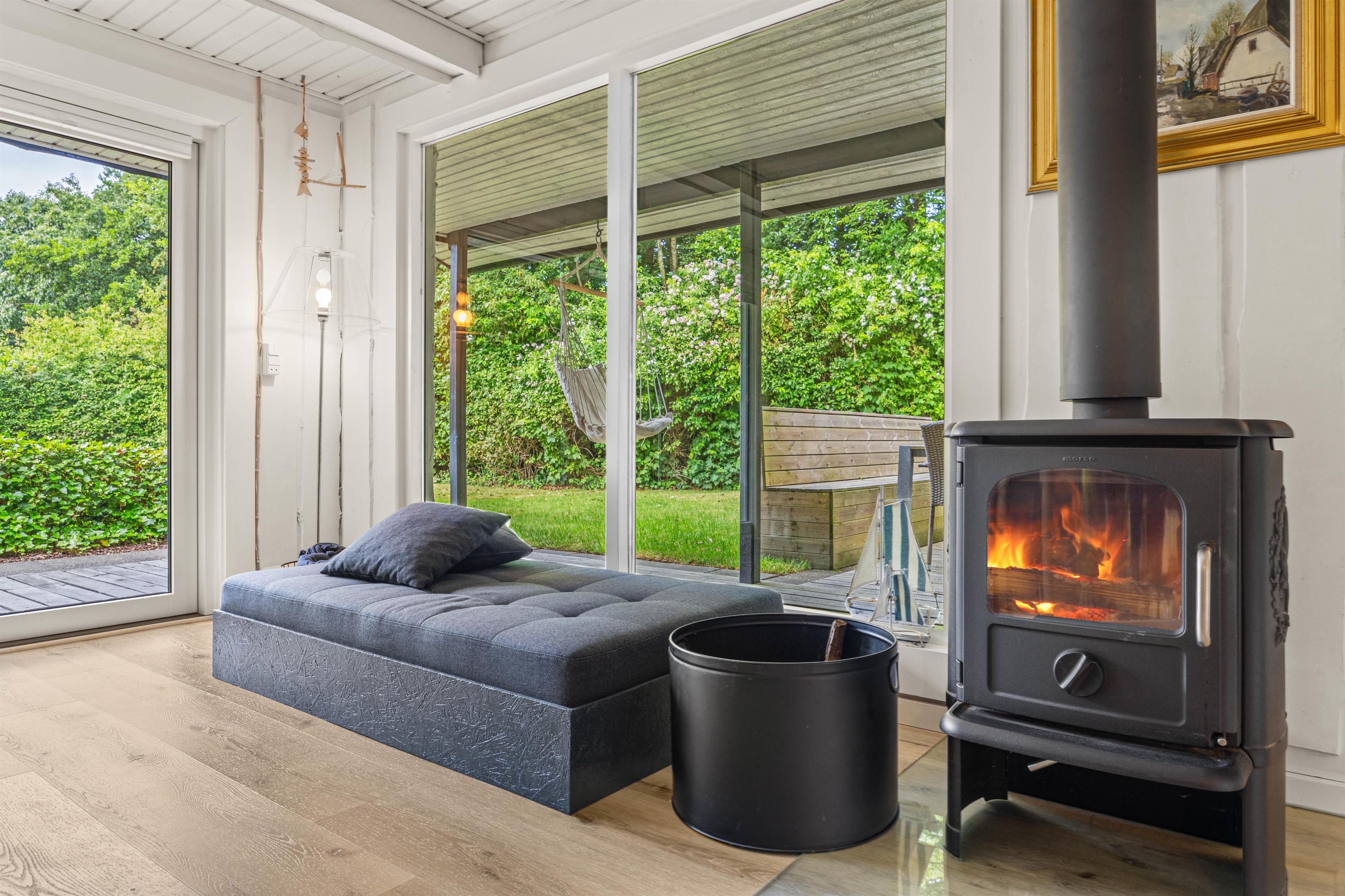 Denne feriebolig sørger for, at I kan nyde jeres ferie, uanset hvad vejret bringer. På de kølige feriedage kan I tænde op i brændeovnen og nyde de varme flammer, som skaber hyggelige stunder i stuen, hvor I kan nyde en god bog eller et brætspil med familien. Badeværelset har gulvvarme for ekstra komfort. Udendørs finder I terrassen, der giver mulighed for at sidde både under halvtag eller åben himmel. Samtidig er terrassen afskærmet så det er et oplagt sted, at nyde en dejlig kop morgenkaffe eller aftensmad mens mørket falder på.
