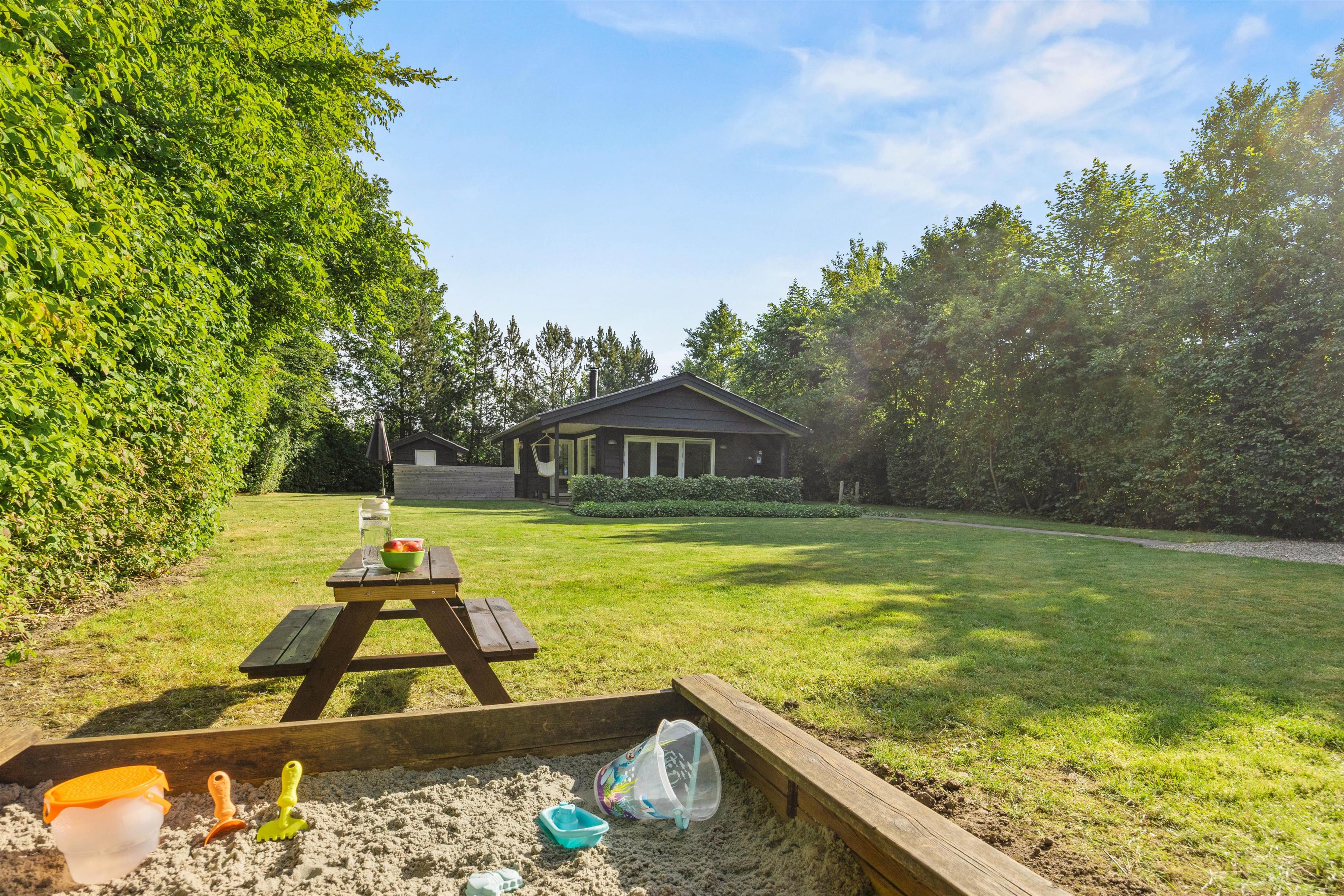 Med en kort afstand på blot 1500 meter til Ringkøbing Fjord åbner der sig et væld af muligheder for strandture og vandsport for hele familien. Den rummelige grund på 1063 m2 giver jer frihed til at nyde naturen direkte på adressen. Børn kan lade deres fantasi blomstre på gyngen eller i sandkassen, mens de voksne kan slappe af i de komfortable havemøbler, eller I alle kan samles om bålstedet til snobrød og skumfiduser, samt fredelige øjeblikke med fuglekvidder som baggrundsmusik.