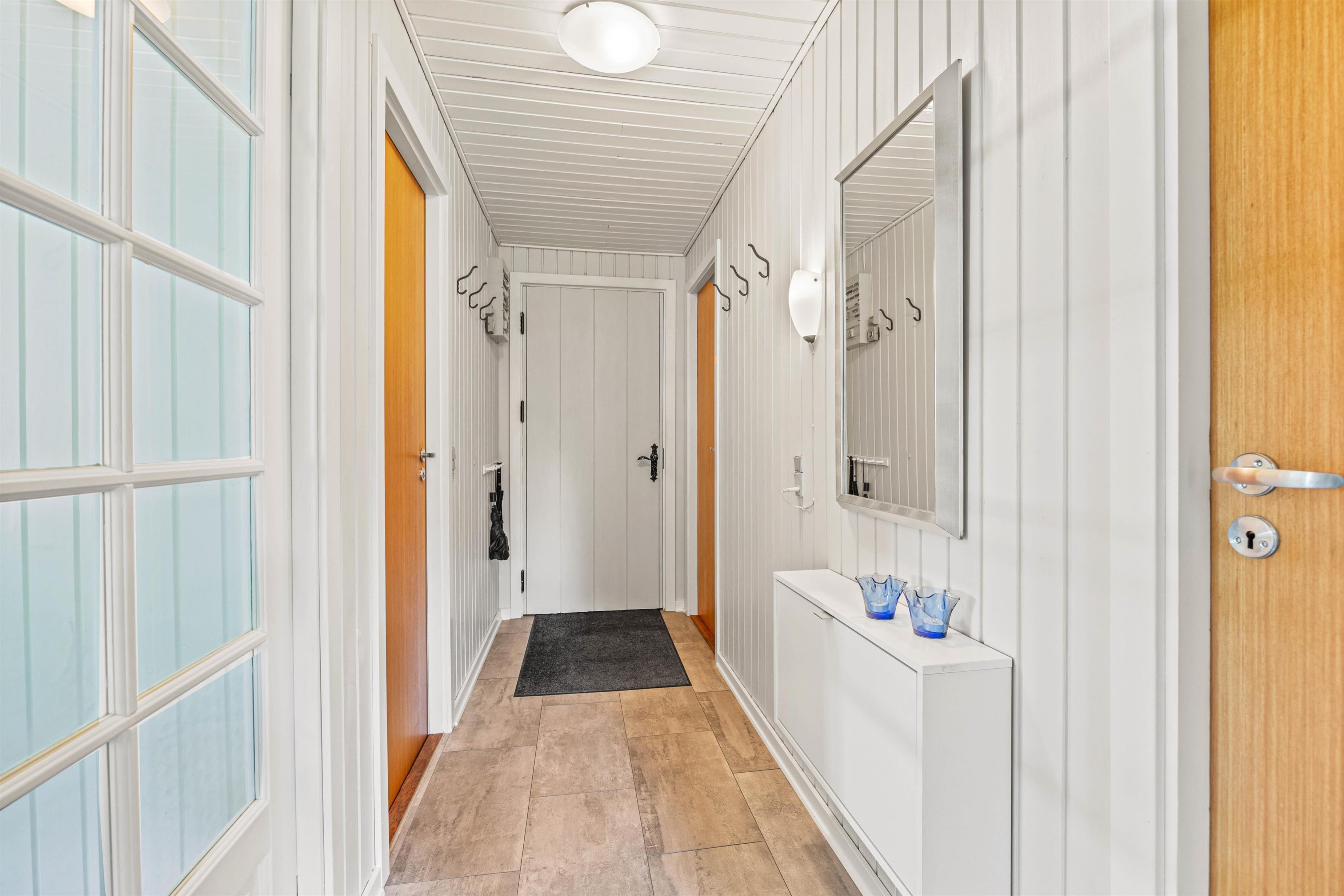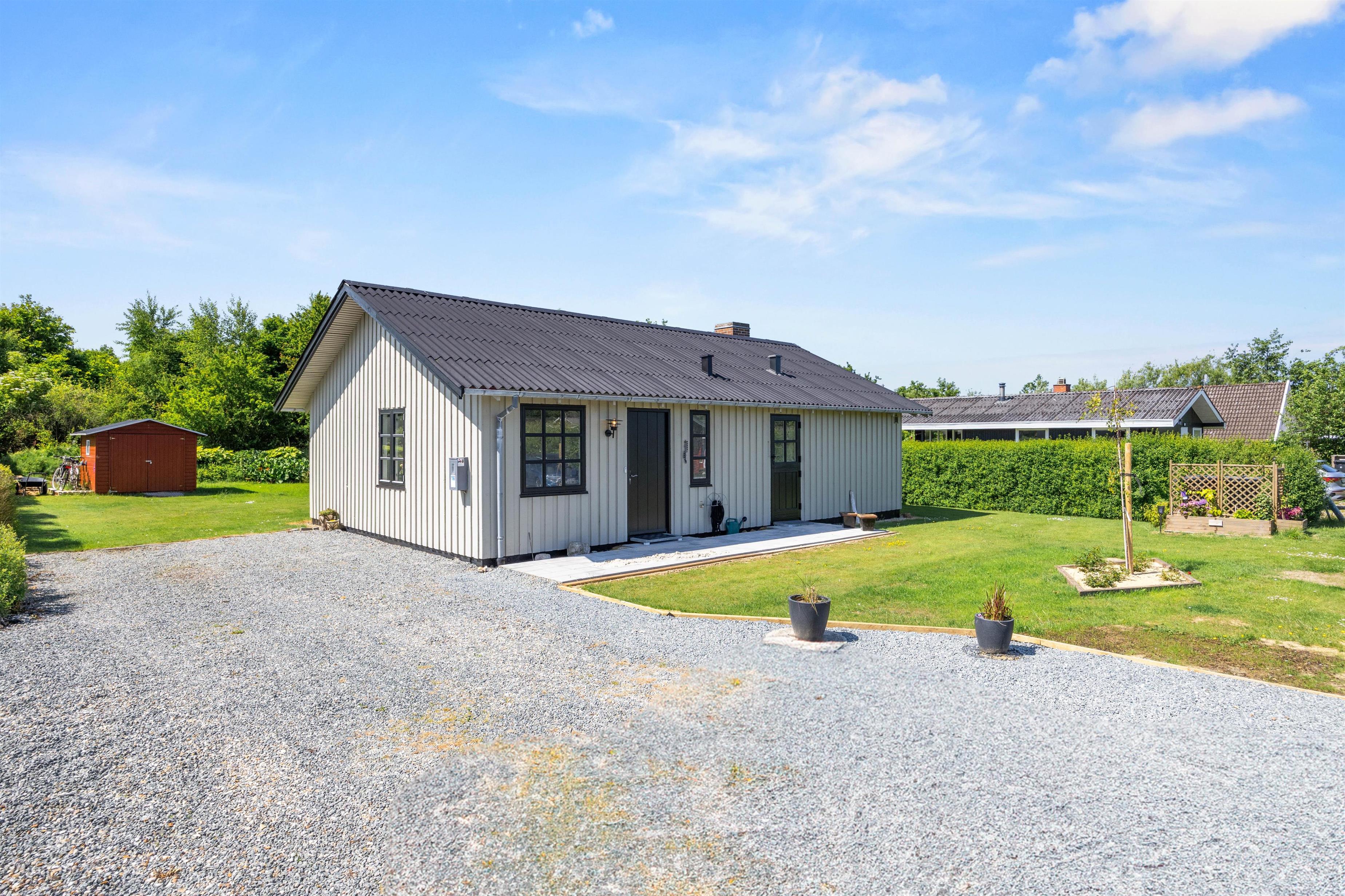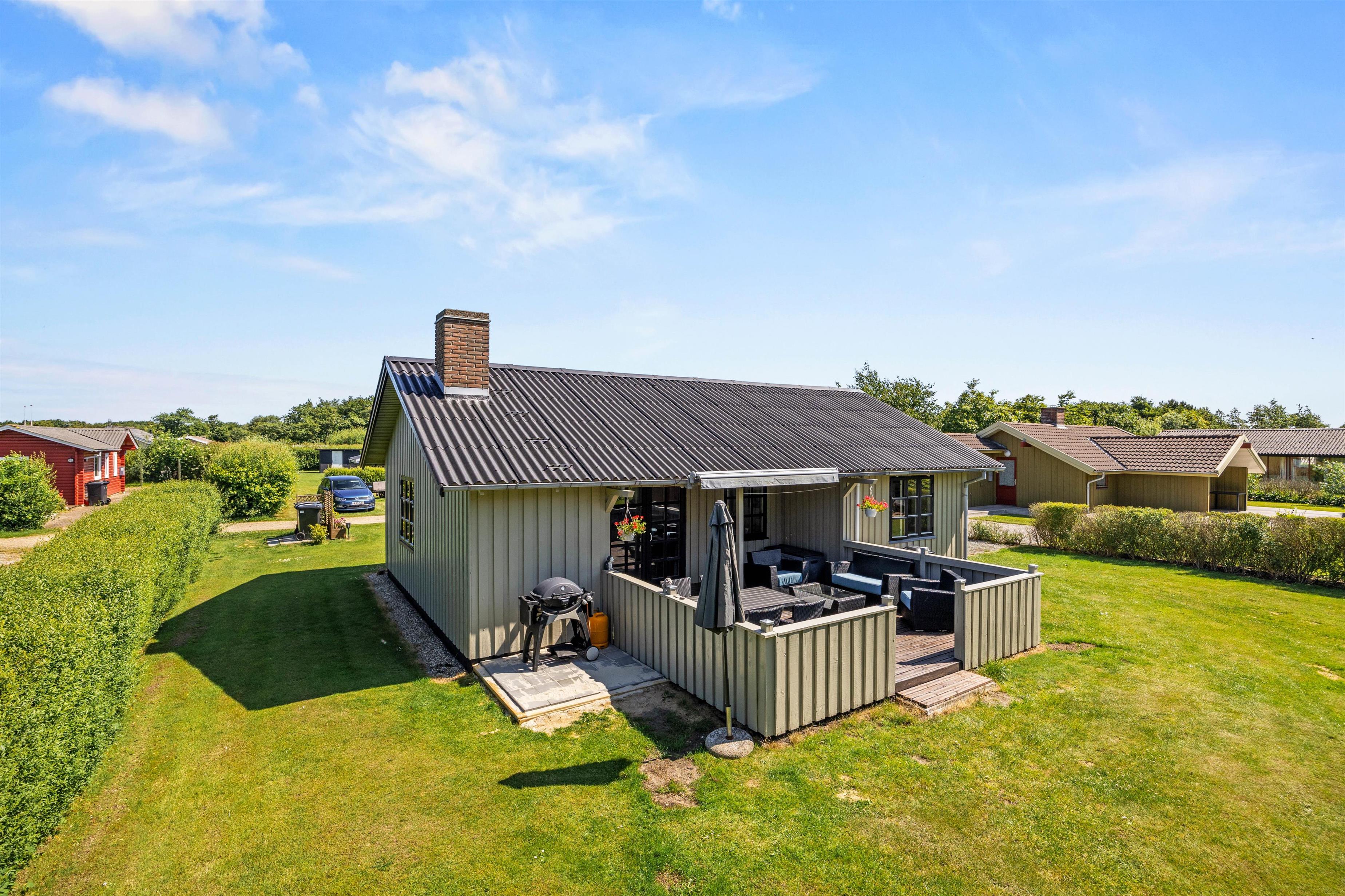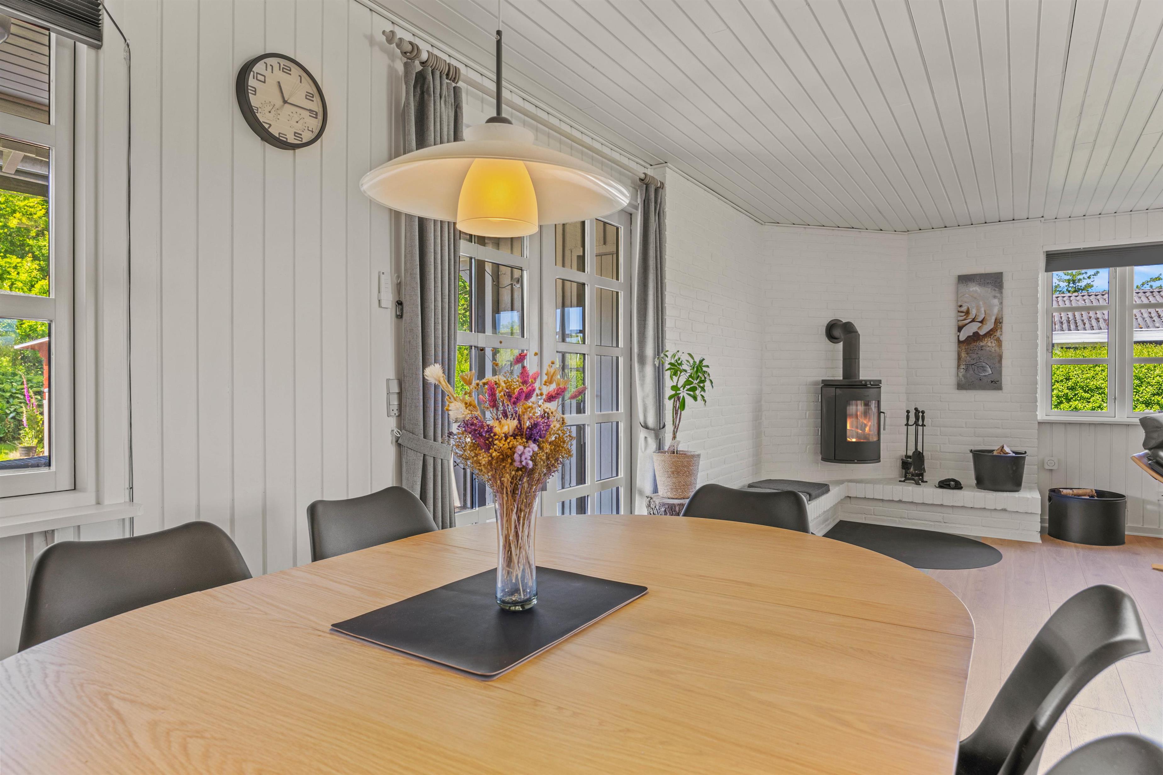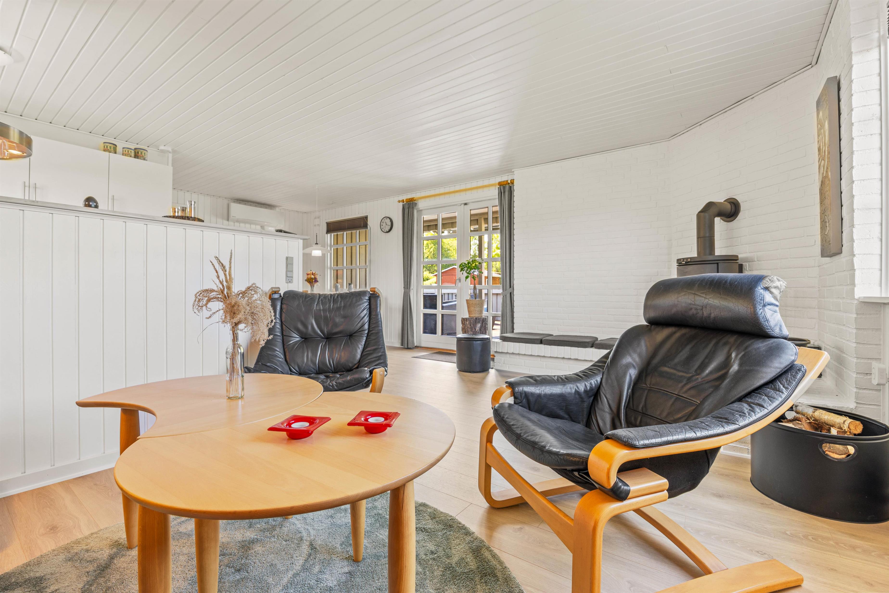 Sommerhuset er designet til at tilbyde komfort og plads til op til fem feriegæster. Med tre velindrettede soverum er der rigelig plads til, at alle kan finde deres egen lille oase af ro og afslapning. Et fuldt udstyret badeværelse sikrer, at alle har mulighed for at få en god start på dagen, uanset om det er ved at tage et langt bad eller frisk opvågnen fra en begivenhedsrig dag. I den hyggelige stue venter en knitrende brændeovn, der inviterer til hygge og samvær på de køligere aftener. Derudover sørger en effektiv og energibesparende luft-til-luft varmepumpe for, at I altid har et behageligt indeklima, uanset årstiden og verjet udenfor.