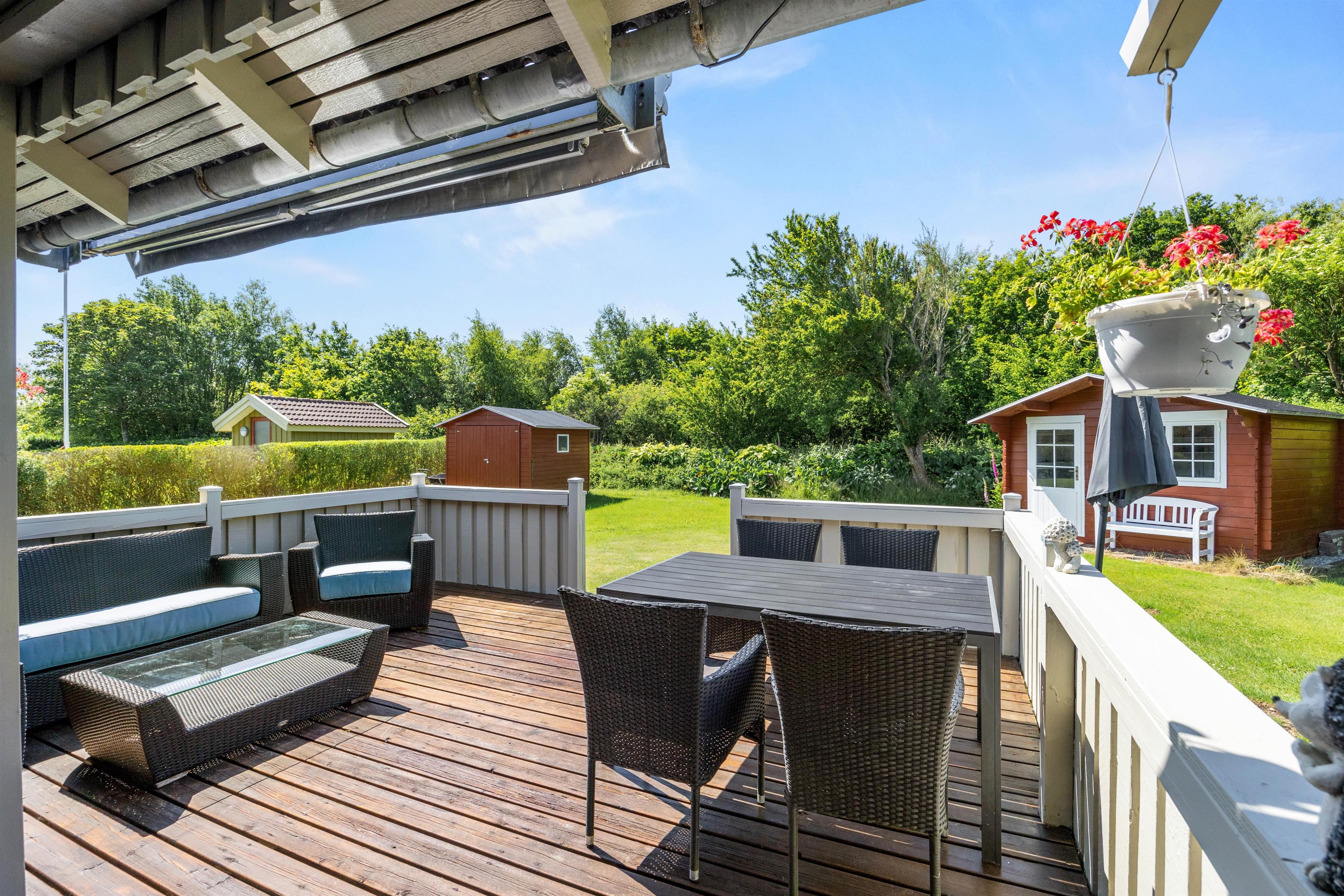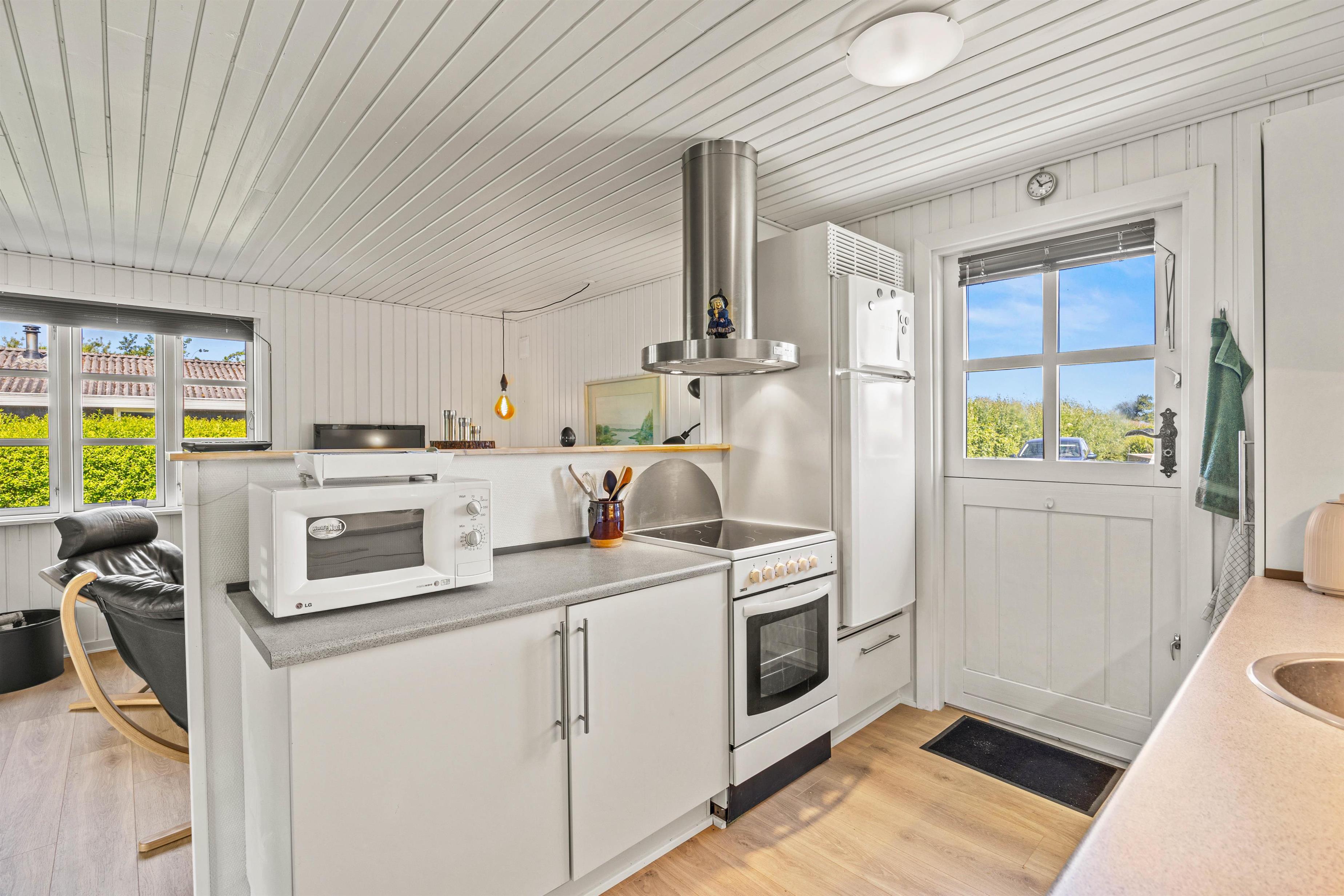 Dette sommerhus har en række praktiske faciliteter, der gør jeres ophold mere komfortabelt. Med en opvaskemaskine og vaskemaskine til rådighed forenkles de daglige gøremål, så I kan bruge mere tid på at slappe af og nyde jeres velfortjente ferie. Køkkenet er velindrettet og fuldt udstyret, så I kan tilberede både enkle måltider og gastronomiske lækkerier uden besvær. Udenfor kan I nyde sommerdagene på den vidunderlige plænegrund med tilhørende havemøbler, der giver den perfekte ramme for en solrig brunch eller hyggelige grillmiddage.