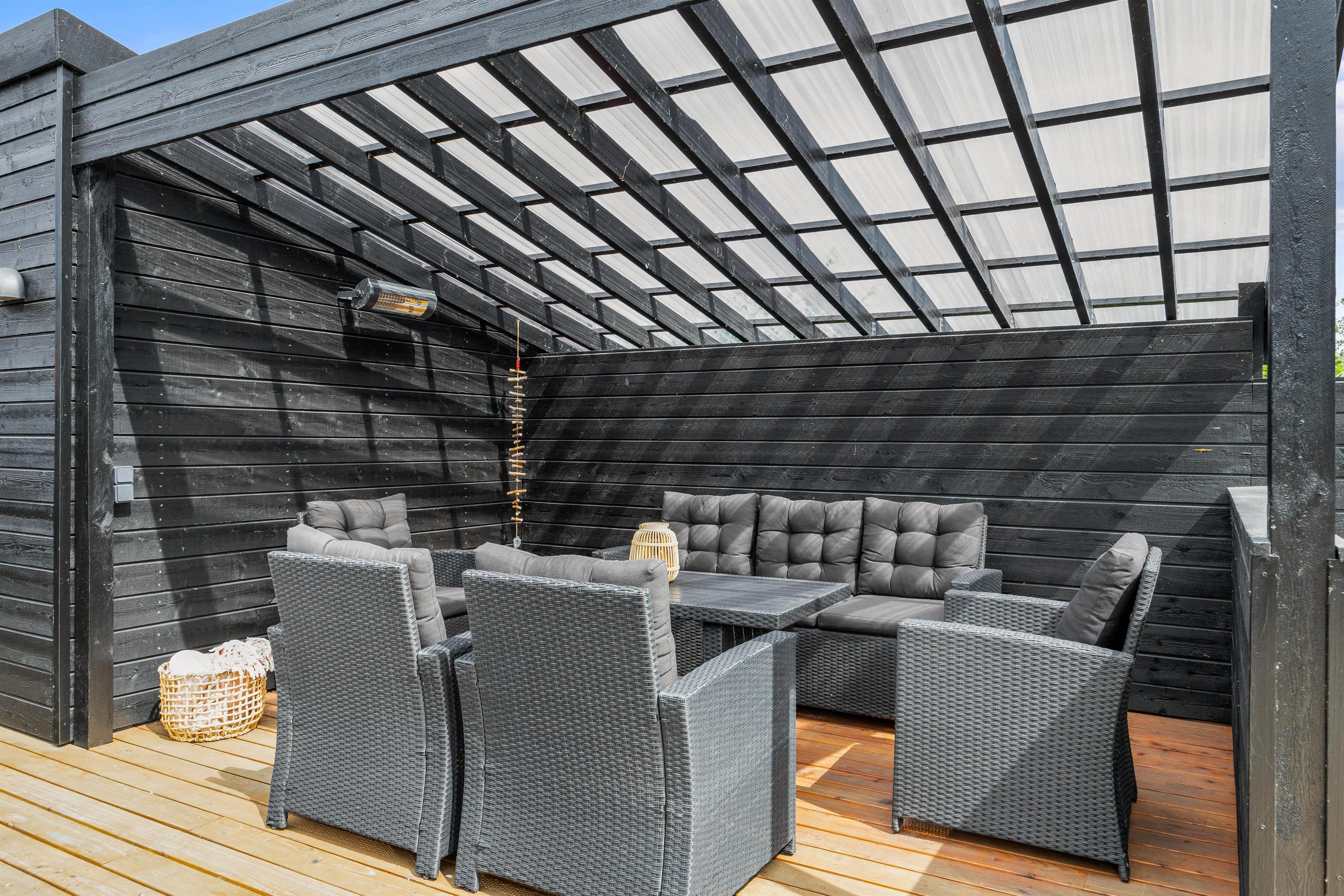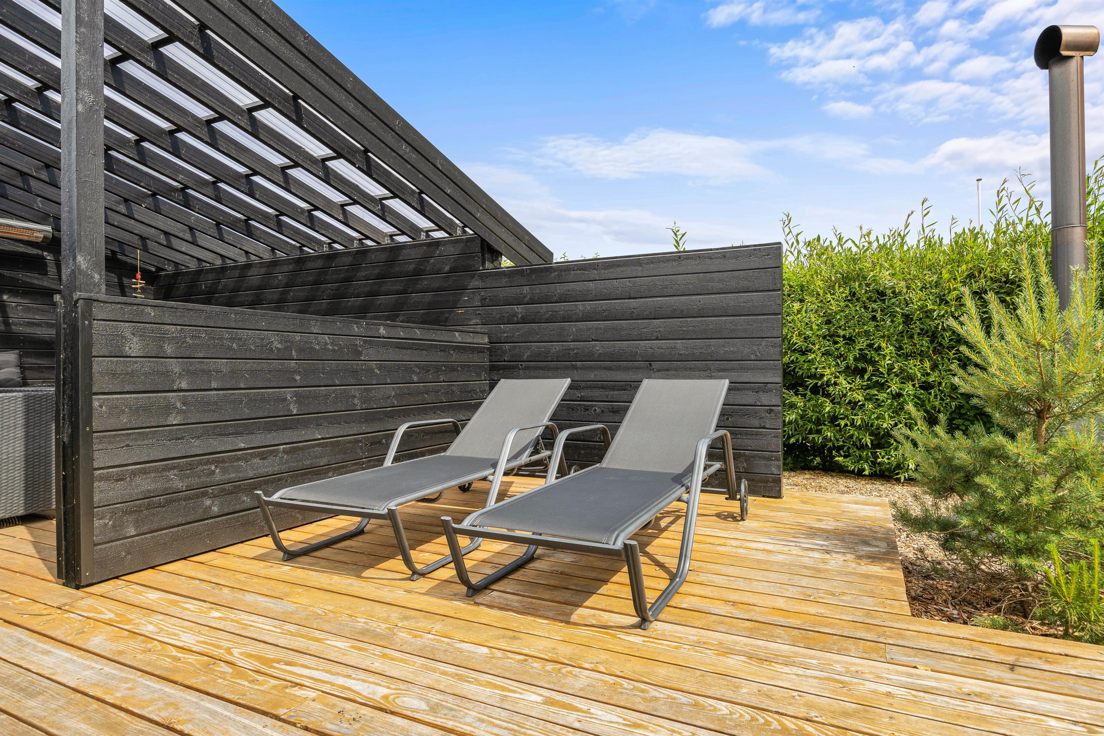 Udover terrassens store størrelse, byder området på en række unikke faciliteter såsom et indbydende vildmarksbad og en afslappende udesauna, hvor I kan lade hverdagens stress forsvinde. En særlig oplevelse venter jer, når I aften efter aften kan glide ned i vildmarksbadet og lade jer betage af den klare, stjernefyldte himmel.