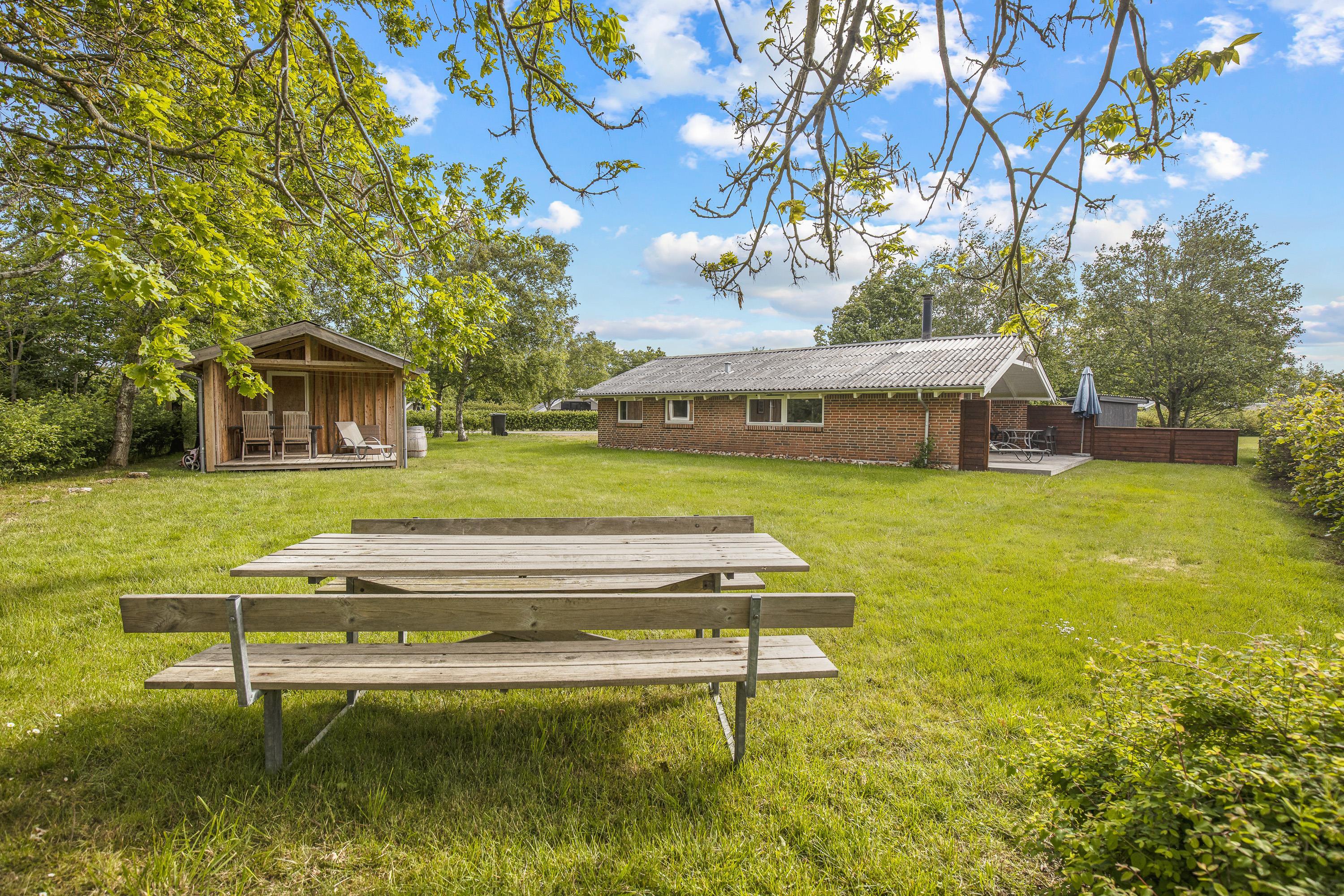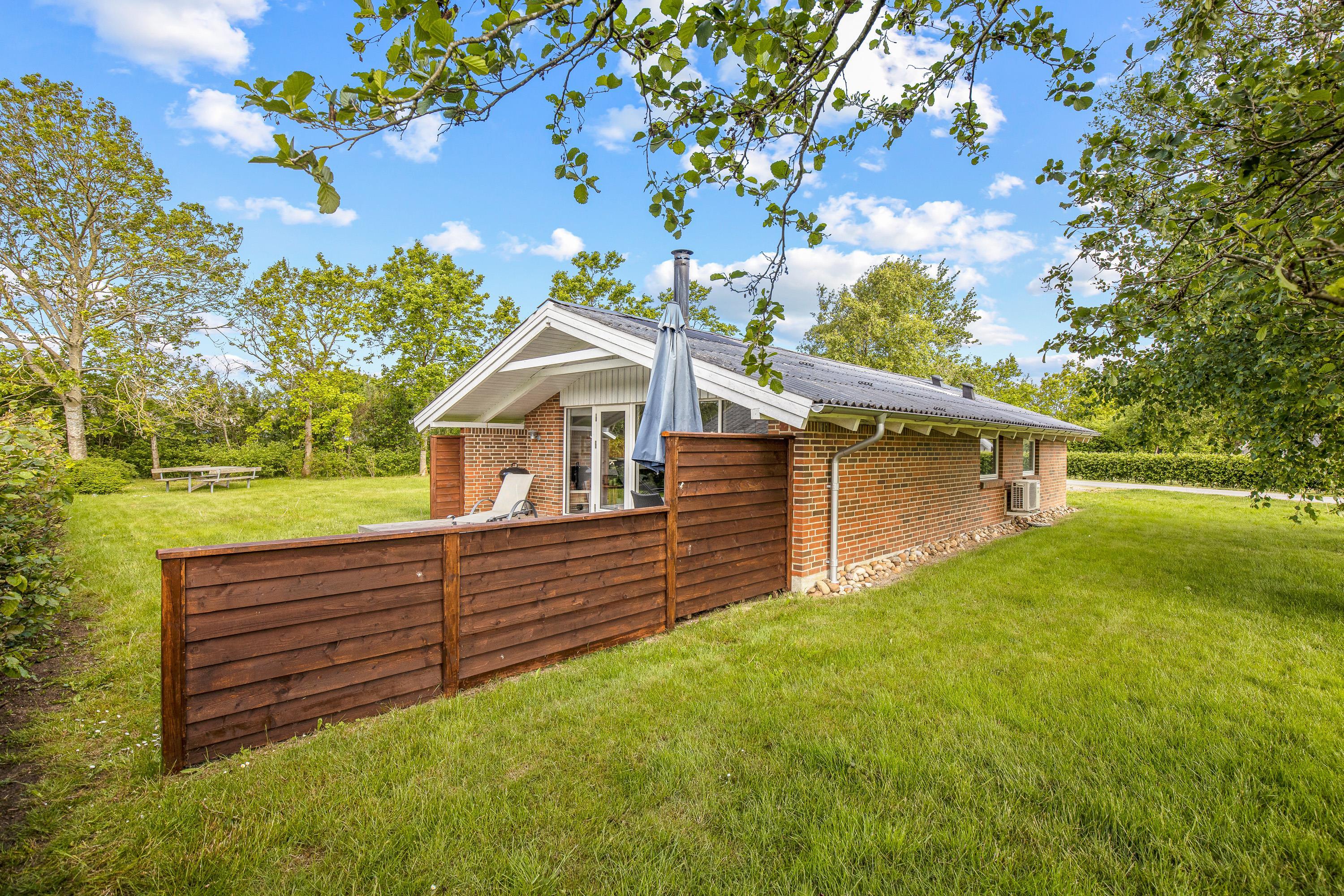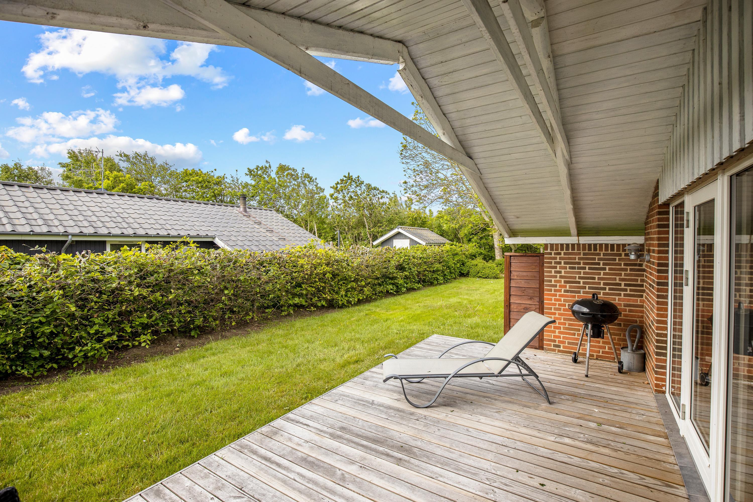 Udendørs kan I nyde sommerhusets skønne omgivelser på den rummelige plænegrund, perfekt til afslapning eller leg for både børn og voksne. Den afskærmede og overdækkede terrasse skaber et dejligt uderum, hvor I kan nyde en stille stund med en god bog eller samles omkring middagsbordet til en hyggelig grillaften, uanset vejrets luner.