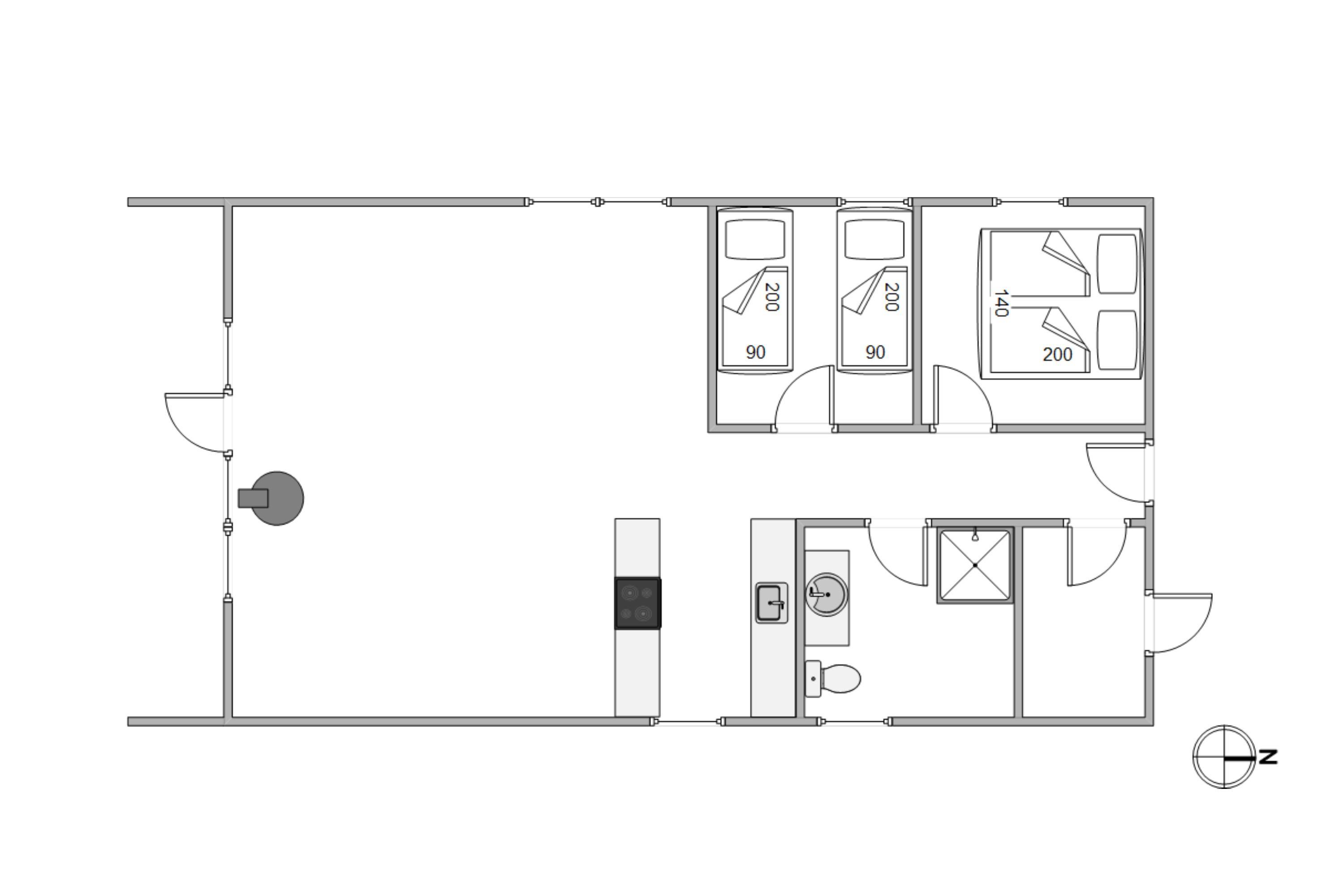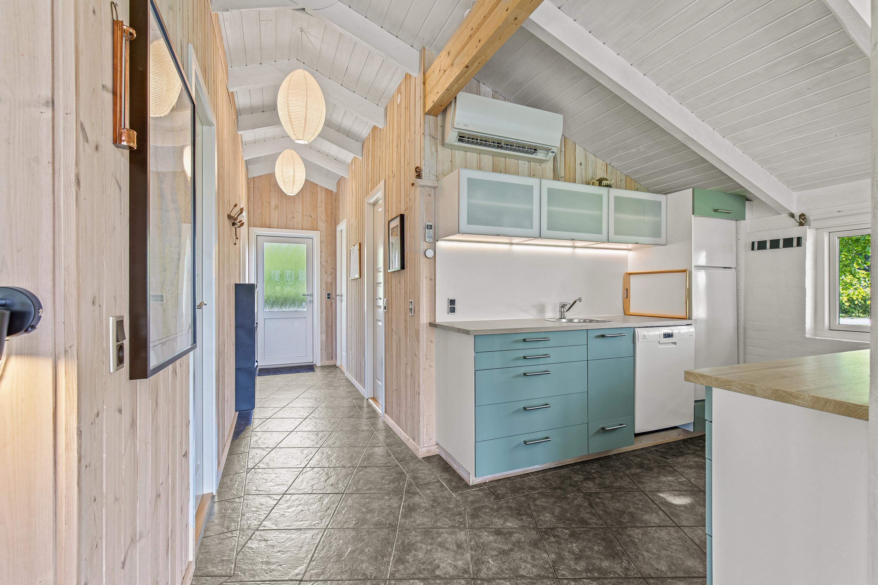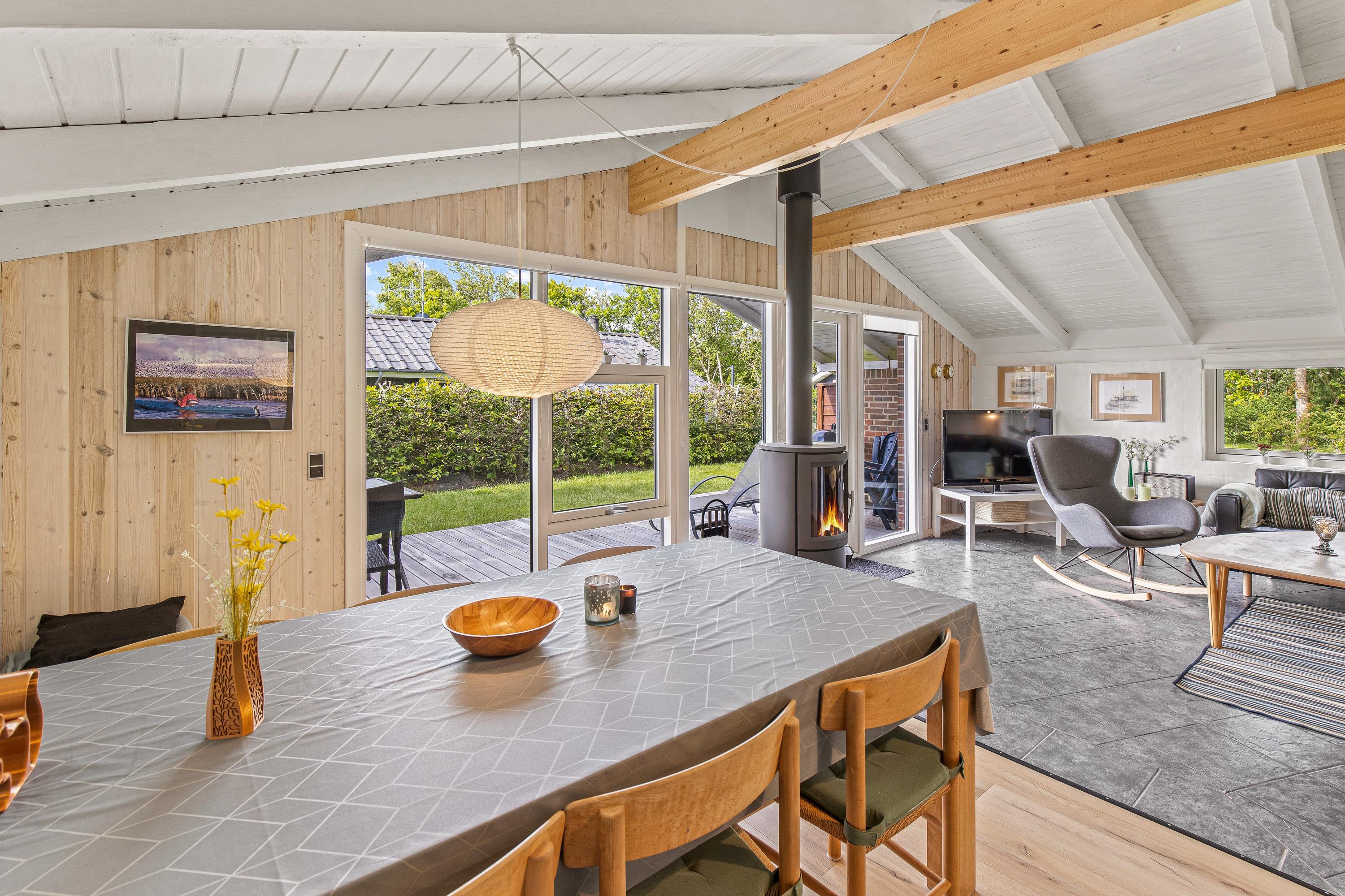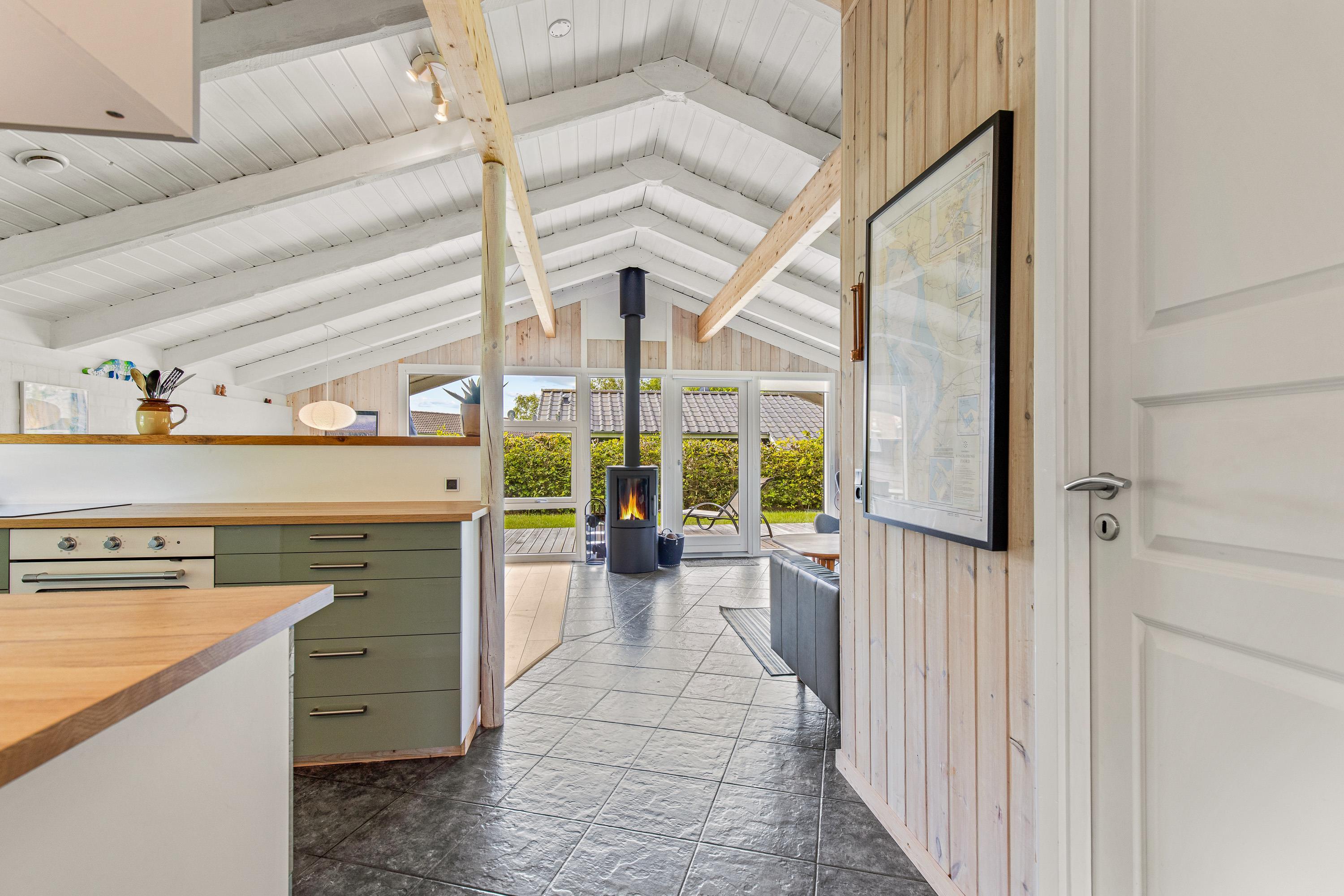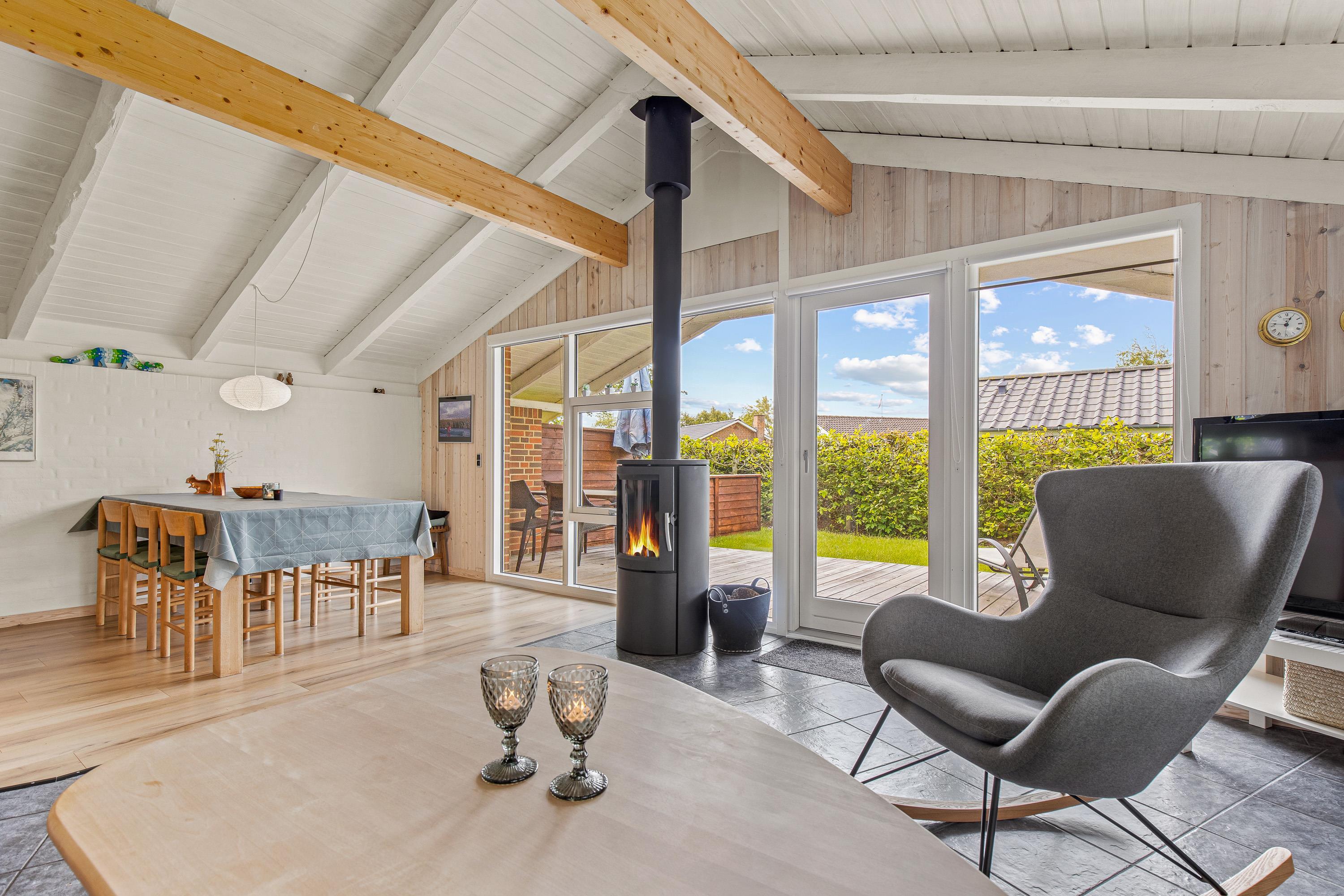 Indenfor byder sommerhuset på en række faciliteter, der sikrer komforten under jeres ophold. Stuen er familiens samlingspunkt, hvor en varm brændeovn skaber en hyggelig atmosfære på kølige aftener. Huset har 2 soverum med i alt 4 sovepladser, rummeligt nok til både familieferier og hyggelige udflugter med venner.