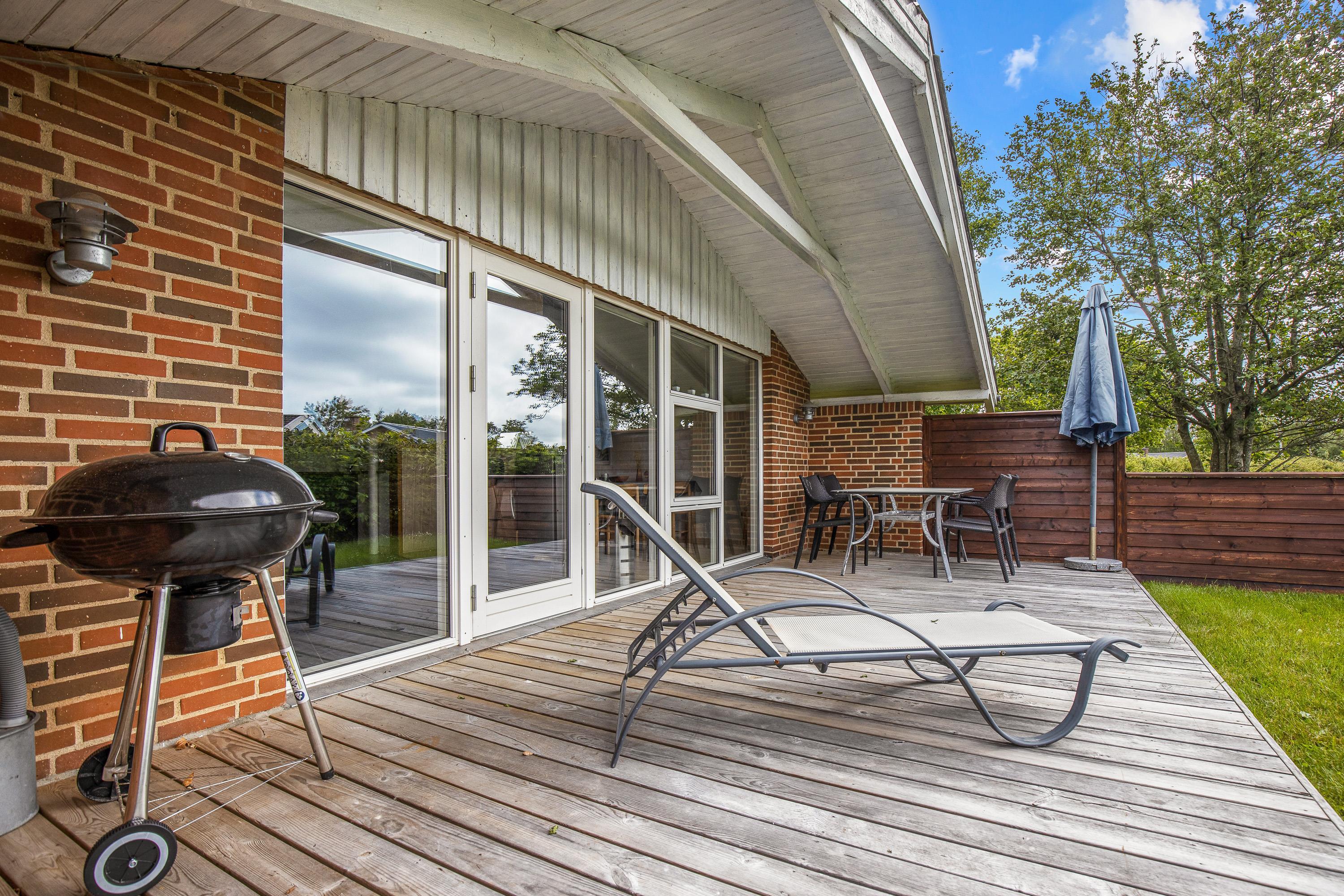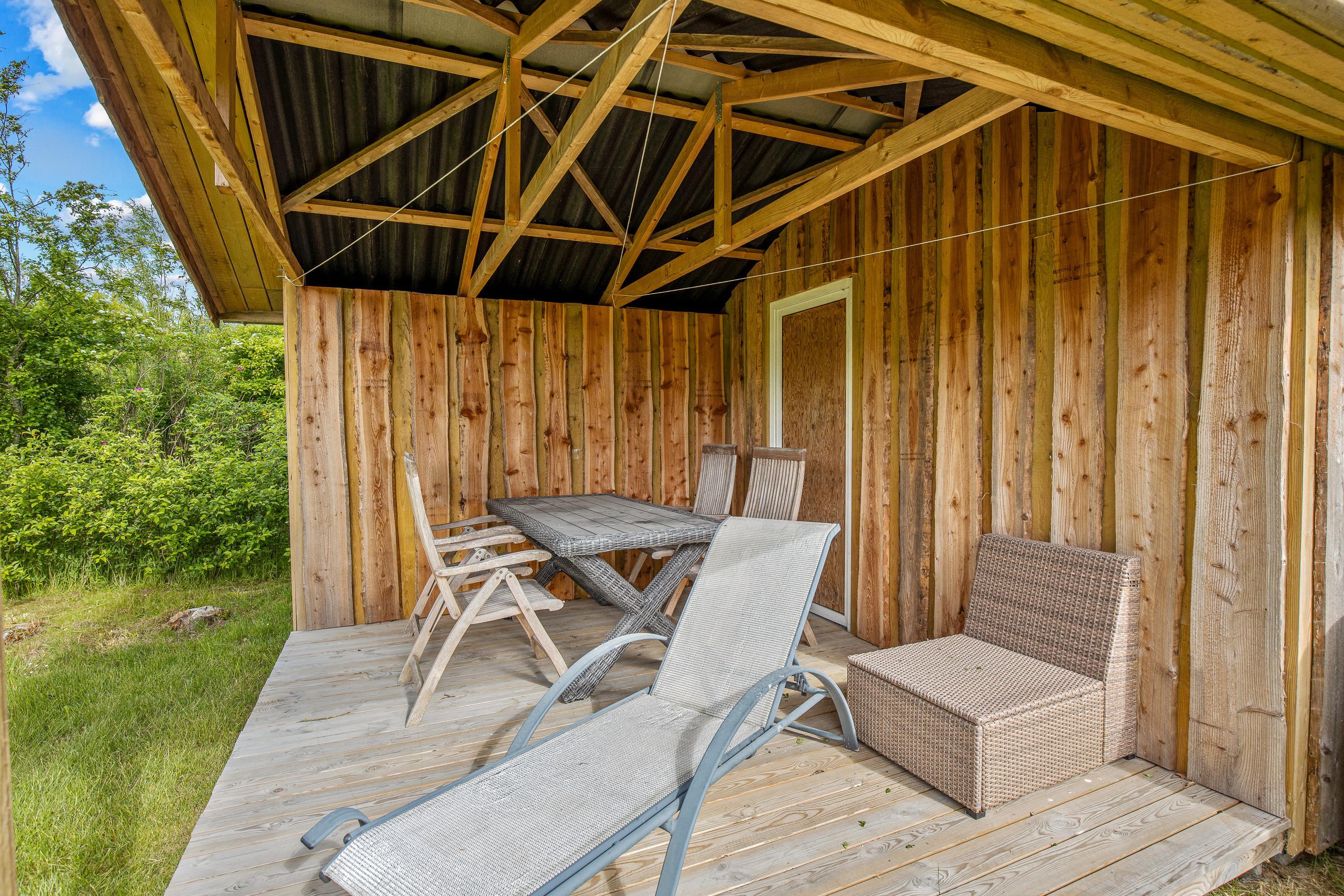 Terrassen giver mulighed for at nyde naturen og den friske luft i fulde drag, mens I stadig er beskyttet og komfortabelt placeret i jeres eget private udemiljø. Dette område indbyder til uforglemmelige ferieminder i det fri.