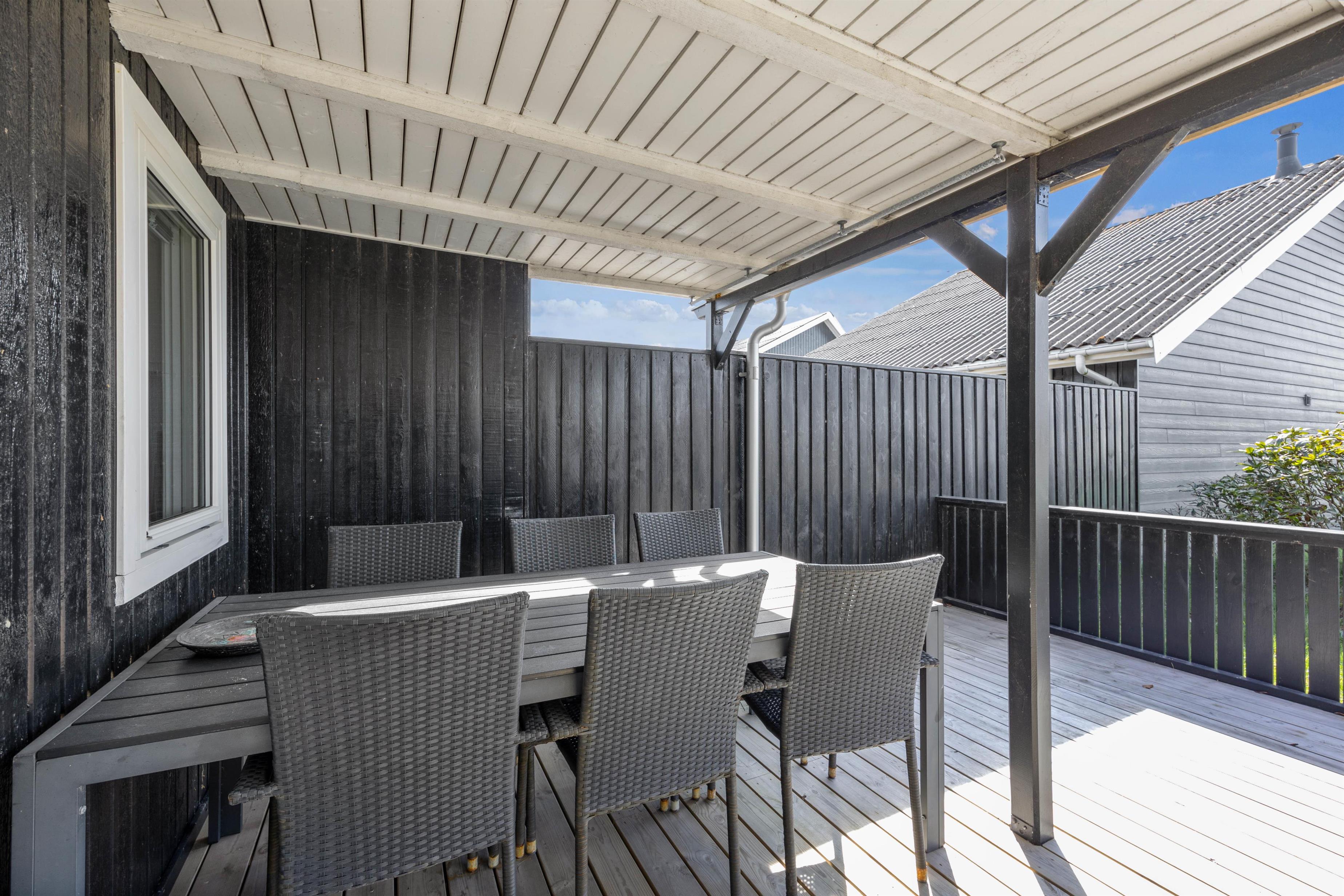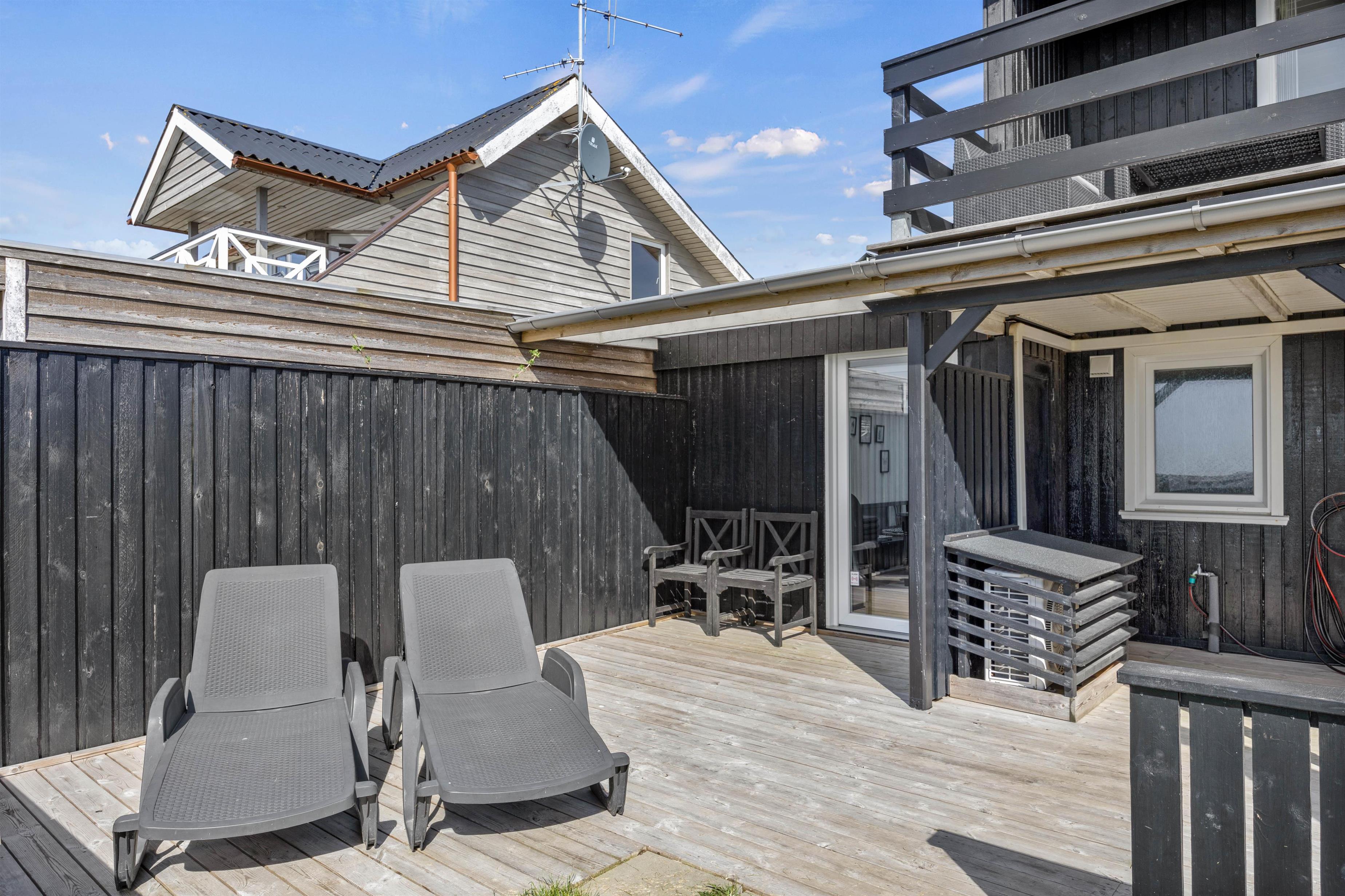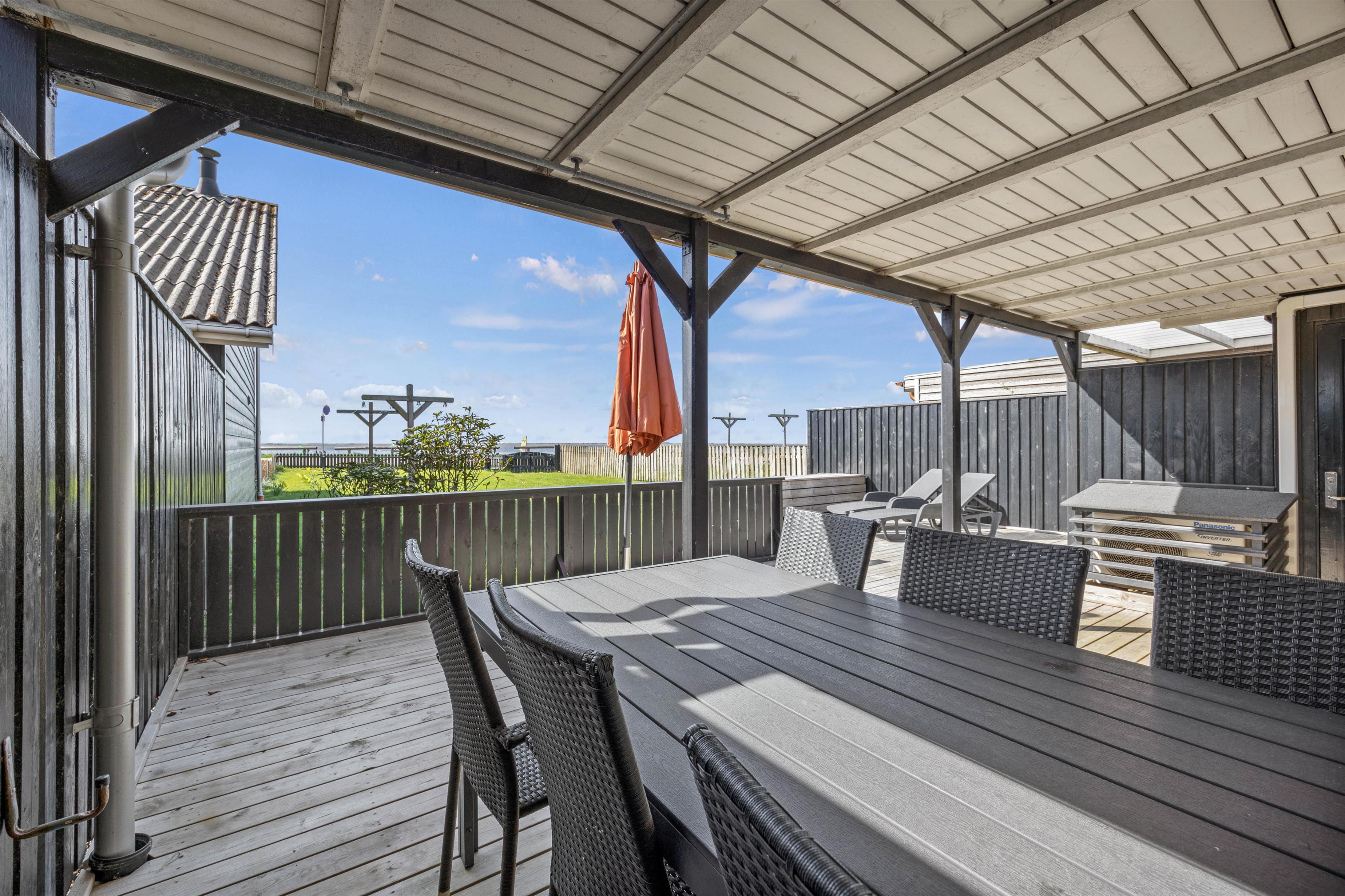 Feriehusets beliggenhed er helt enestående. Feriehuset ligger i 1. række direkte ud til Ringkøbing Fjord. Udenfor byder feriehuset på flere terrasser og en altan på 1. sal, hvorfra I kan nyde den fantastiske panoramaudsigt ud over fjorden og de mange surfere, samt mærke vindens susen. I stueetagen har I udgang til haven fra køkkenet, hvor I finder en overdækket terrasse med solvogne - perfekt til at nyde solen.