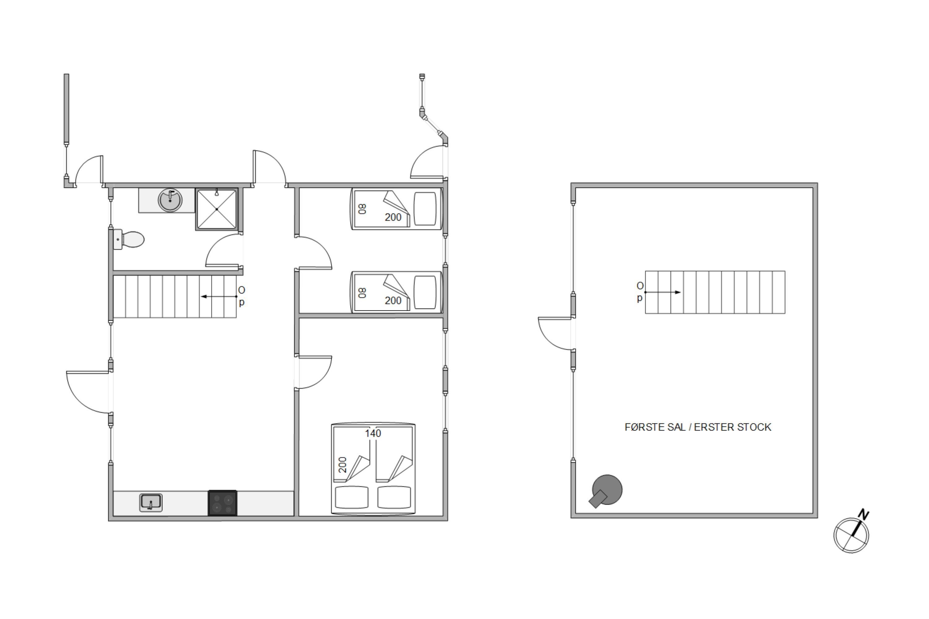 Det ligger i 1. række direkte ud til Ringkøbing Fjord og surfstranden. Boligarealet er på 70m² og er fordelt på 2 plan. Når I træder ind i sommerhuset, mødes I af det lækre køkken, som er lyst og funktionelt med en opvaskemaskine, som tager sig af alt opvasken efter en god middag. Derudover finder I også 2 soveværelser og 1 badeværelser med gulvvarme på stueetagen. Feriehuset egner sig til den lille familie på 4 personer og har en dobbeltseng og 2 enkeltsenge.