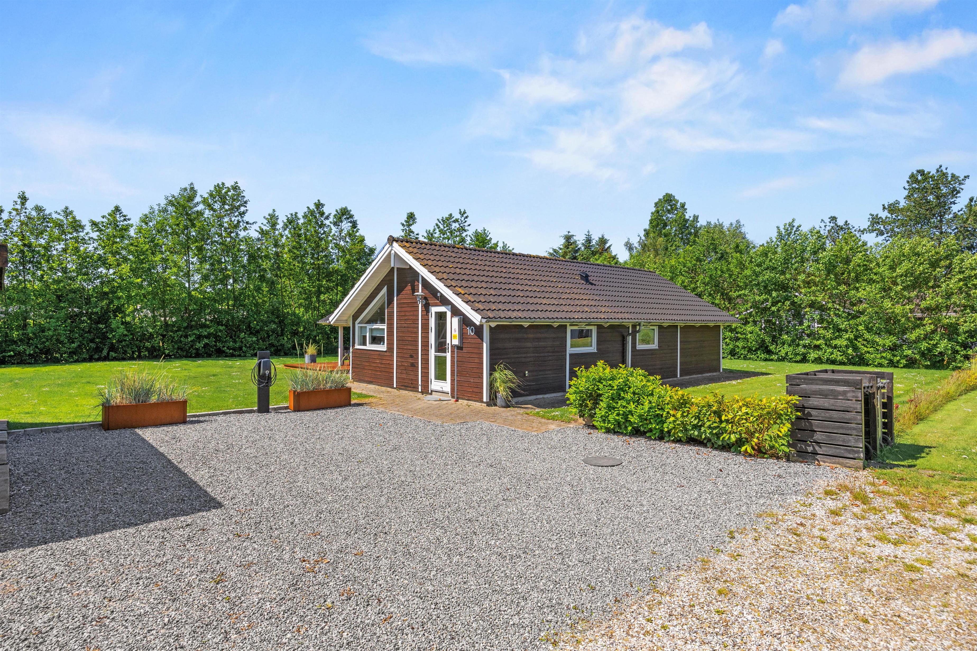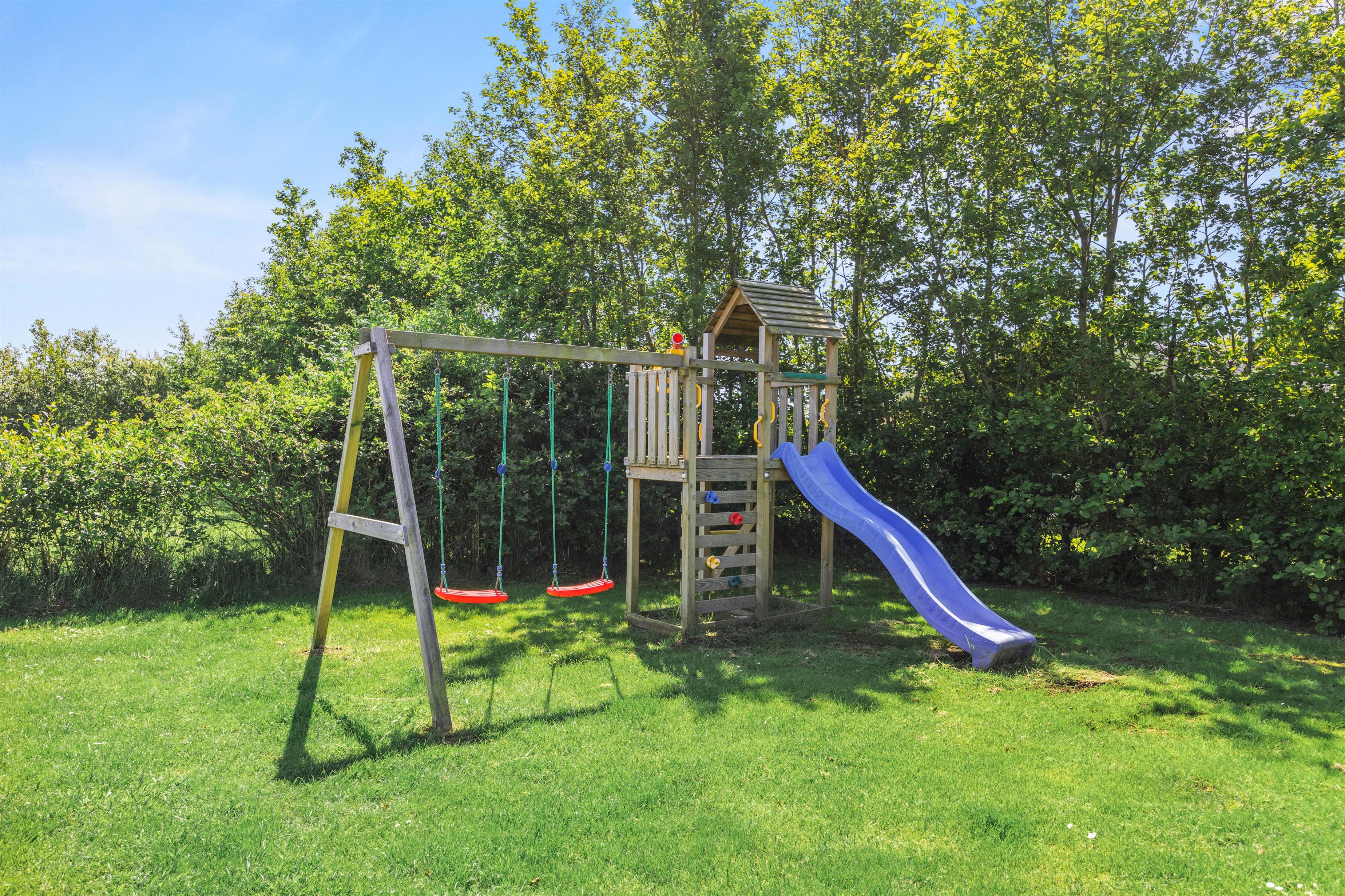 Plænegrunden giver rigelig plads til leg og aktiviteter, hvor børnene kan more sig på gyngen, mens de voksne nyder udsigten. For jer, der ankommer i el-bil, er der et praktisk ladestik til rådighed, som sørger for, at bilen er opladet og klar til nye eventyr når som helst.