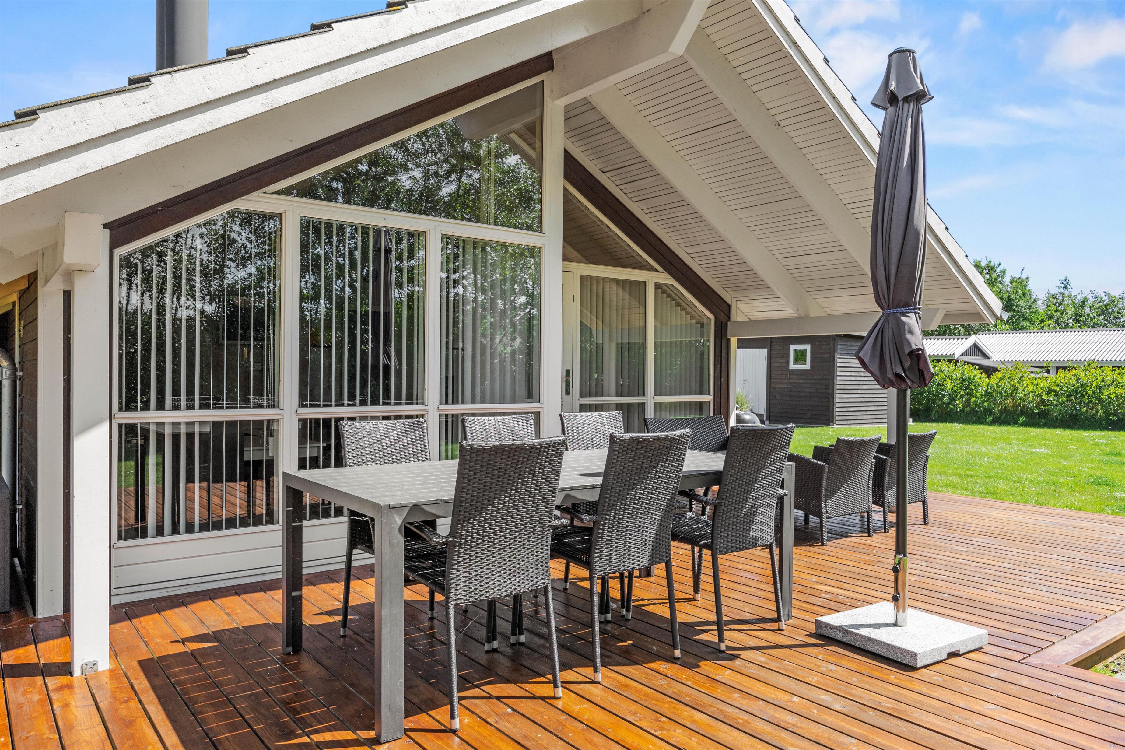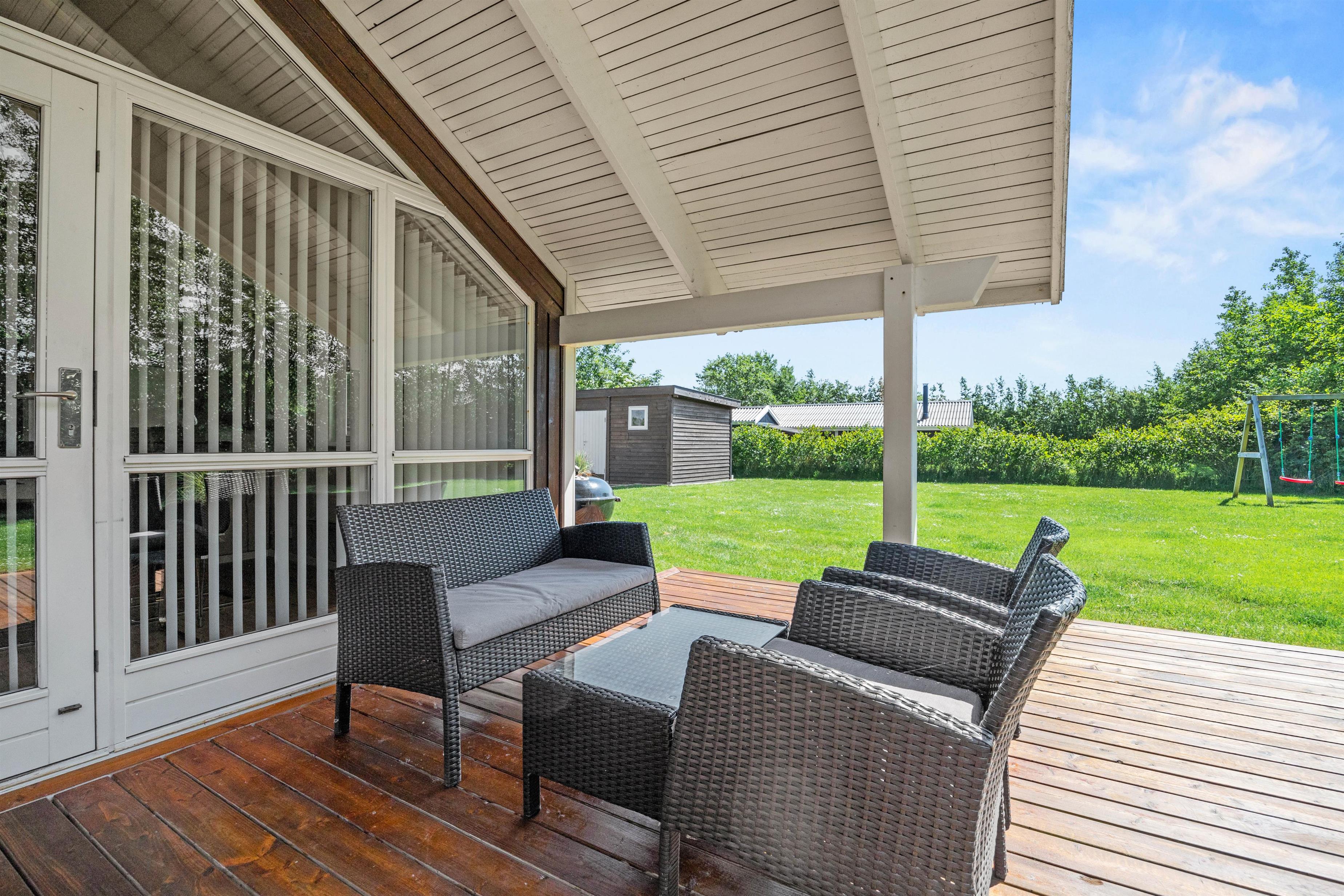 Udearealet er skabt til at nyde de lange, lyse dage og lune aftener. På den åbne terrasse kan I slappe af i solvognene, hvor I kan læse en bog eller nyde solen. Terrassen er også udstyret med en kulgrill, der indbyder til hyggelige grillmiddage i den friske luft.