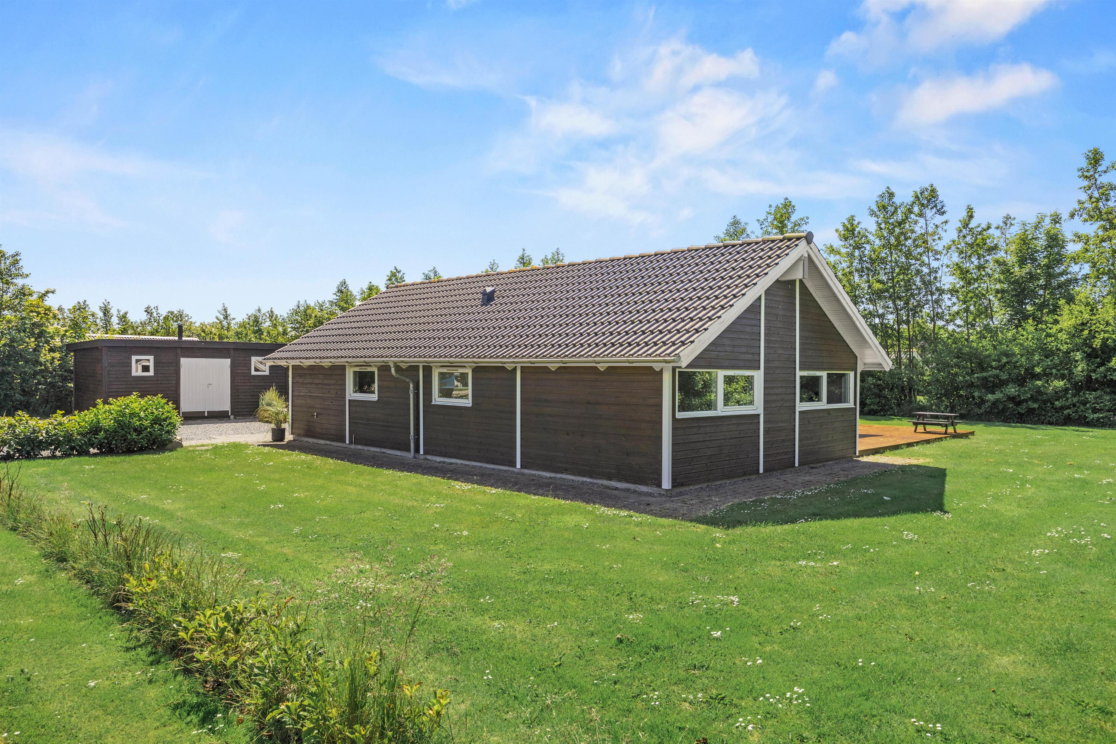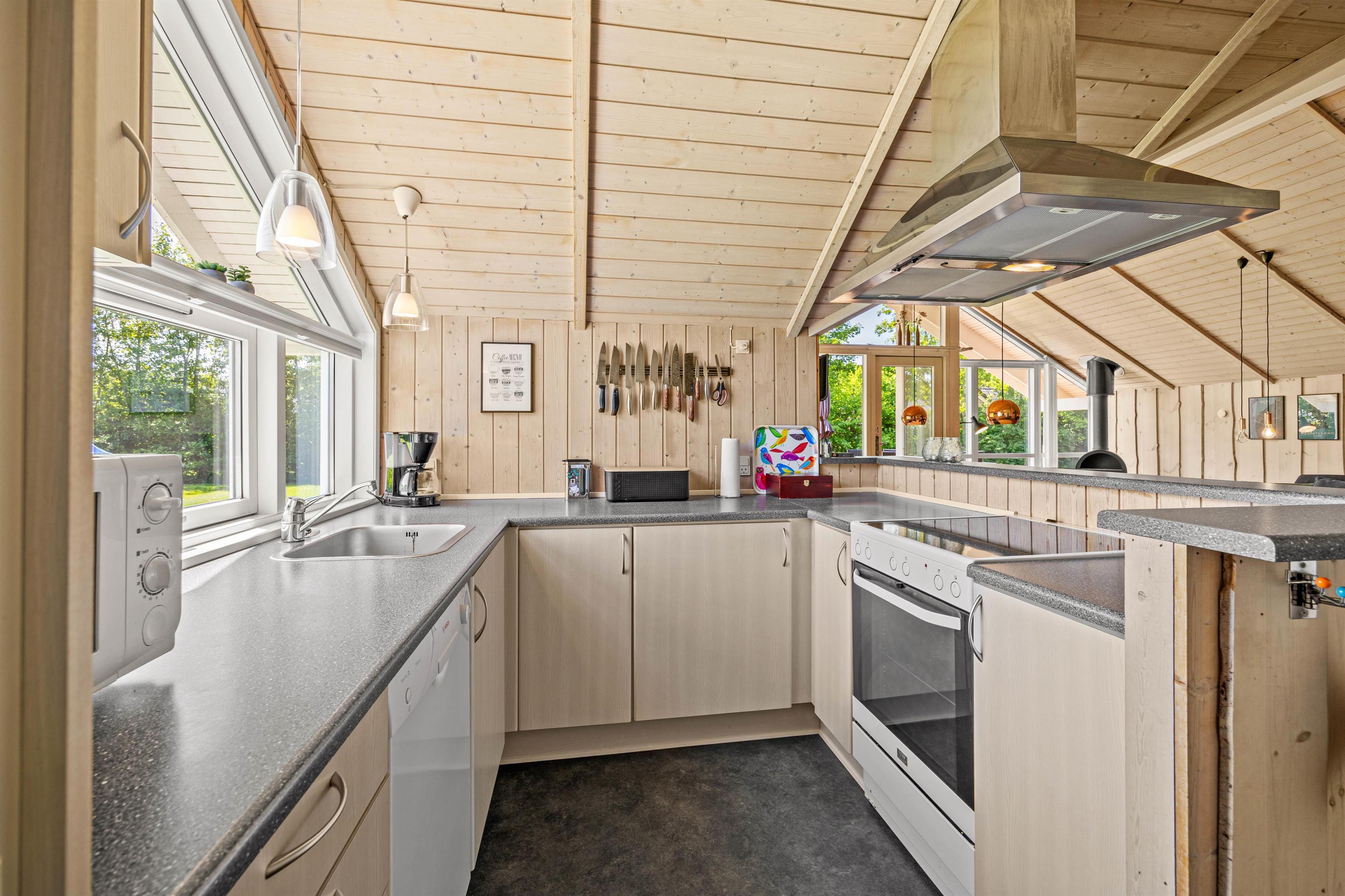 Indearealet i sommerhuset i Bork Havn er designet med fokus på både komfort og praktisk anvendelse, hvilket sikrer jer en behagelig ferieoplevelse. Det rummelige opholdsområde er centrum for afslapning og hygge, hvor en brændeovn giver en hyggelig stemning på kølige aftener. Med 3 velindrettede soverum, hvor det ene er med en elevationsseng på 180x200, kan op til 6 personer nyde en god nats søvn, ideelt både for familier og vennegrupper.