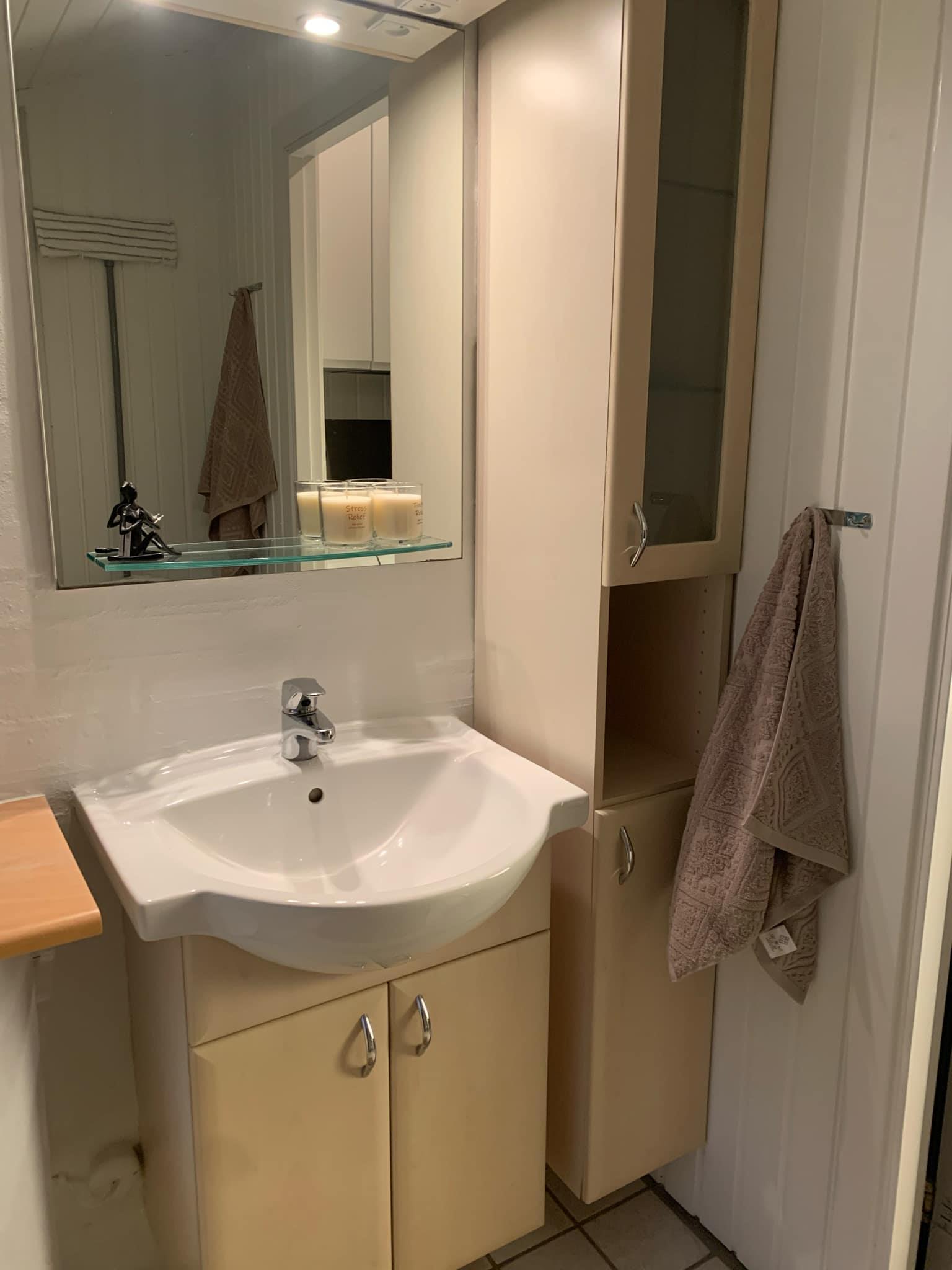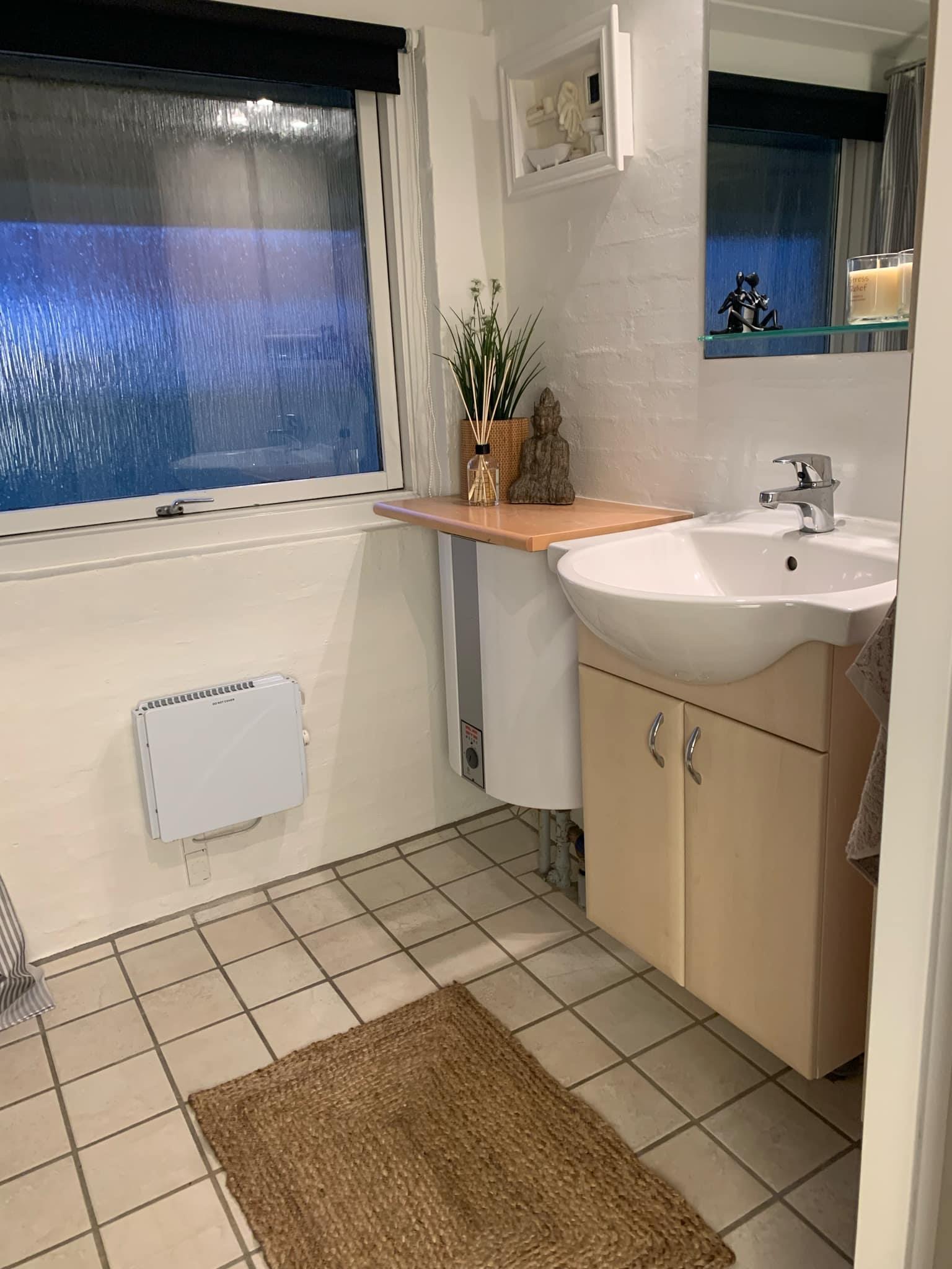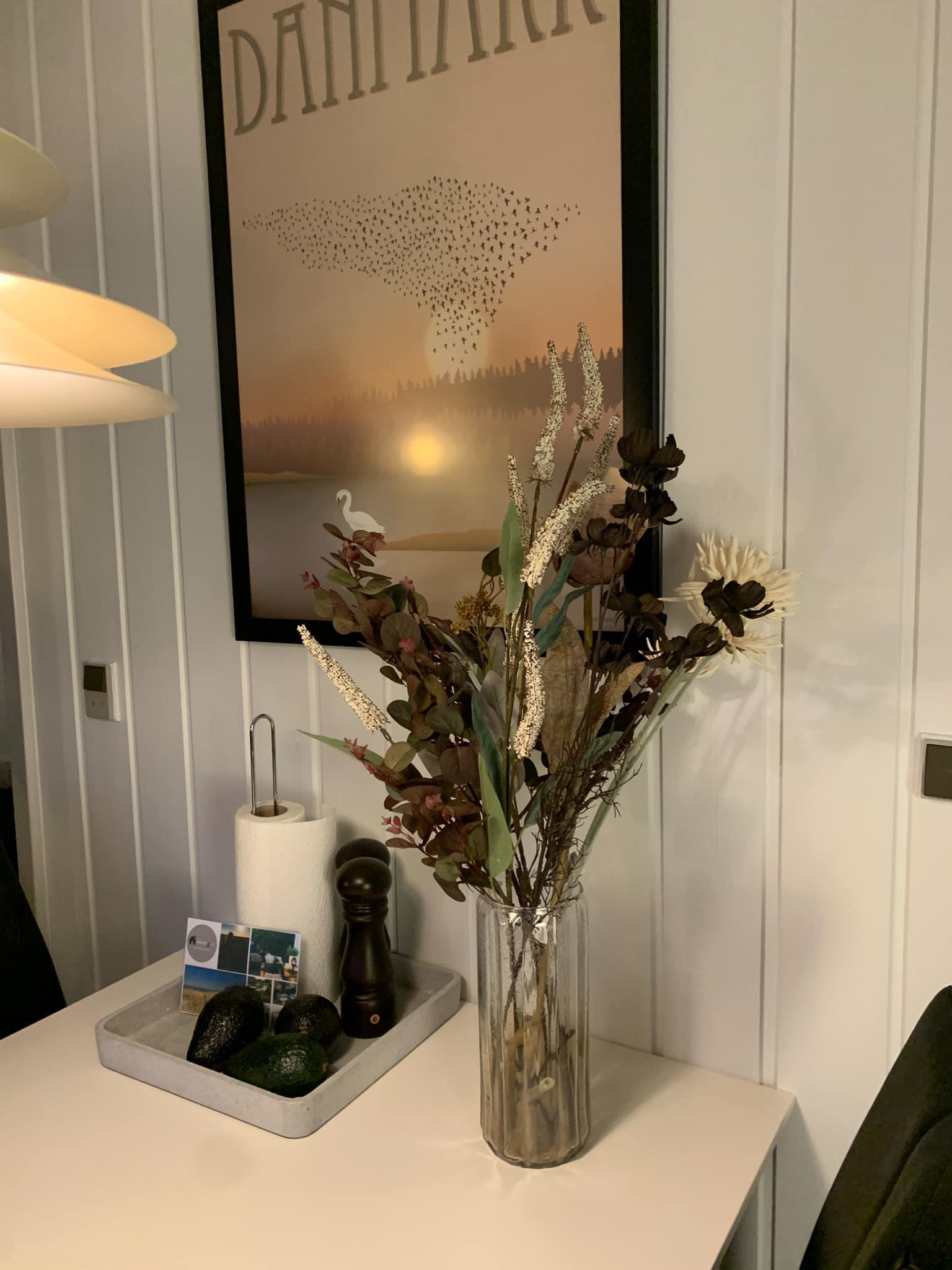 Et fuldt udstyret køkken med bl.a. køleskab og opvaskemaskine