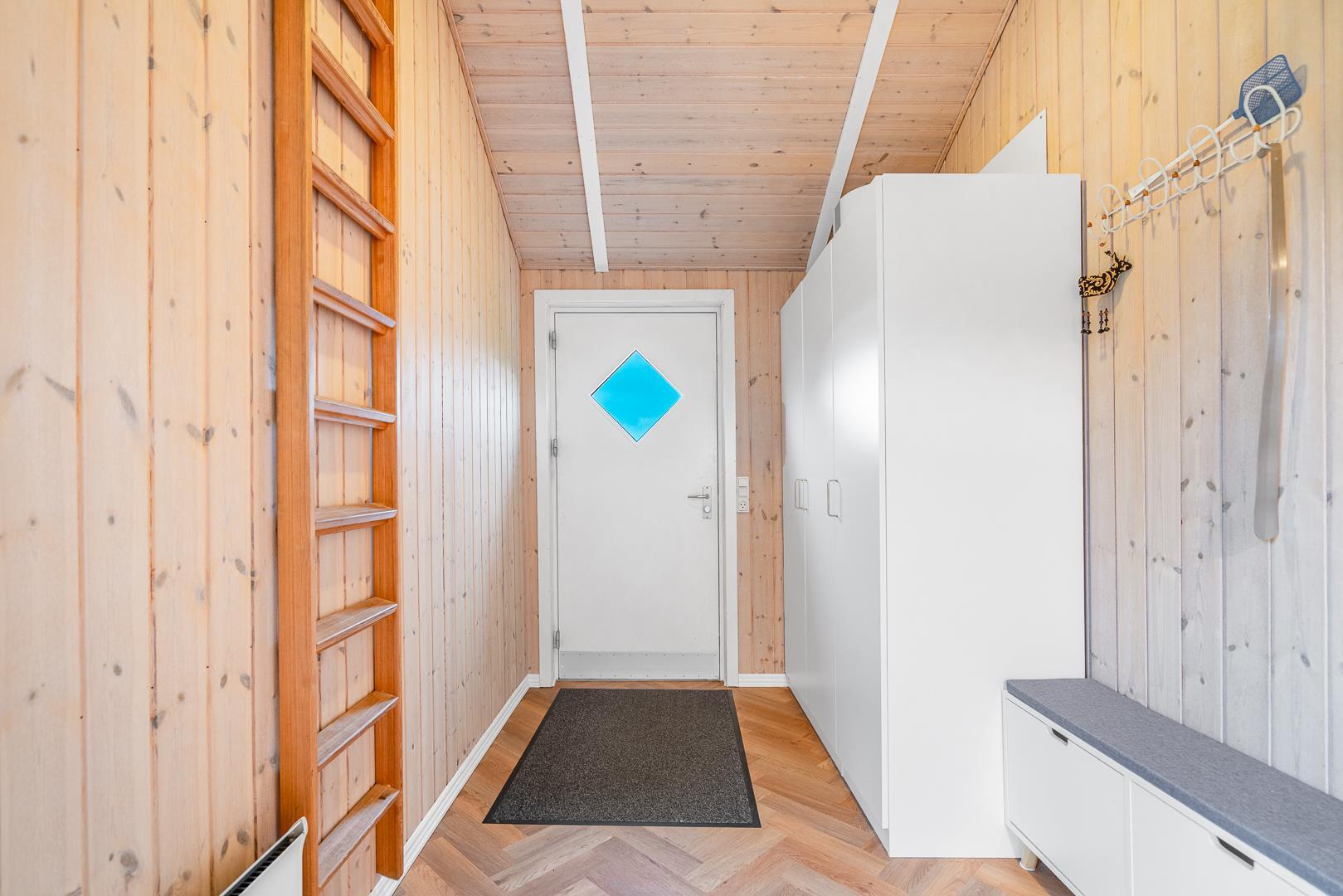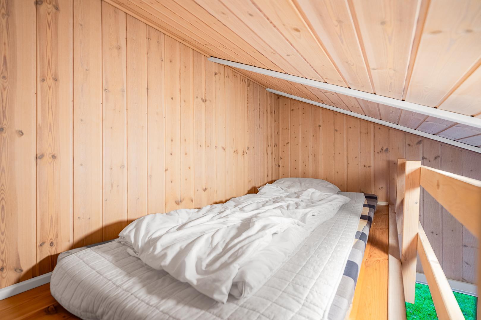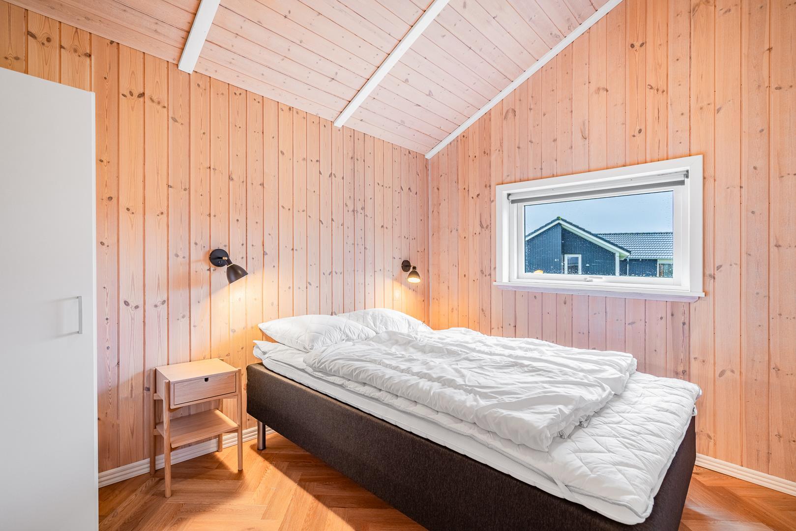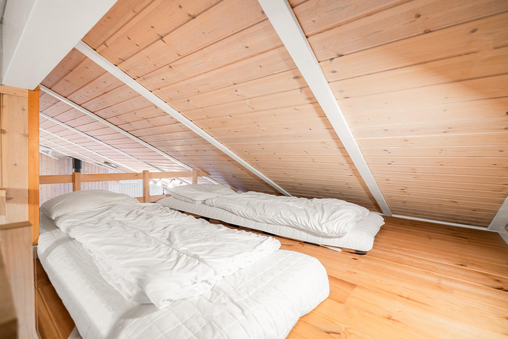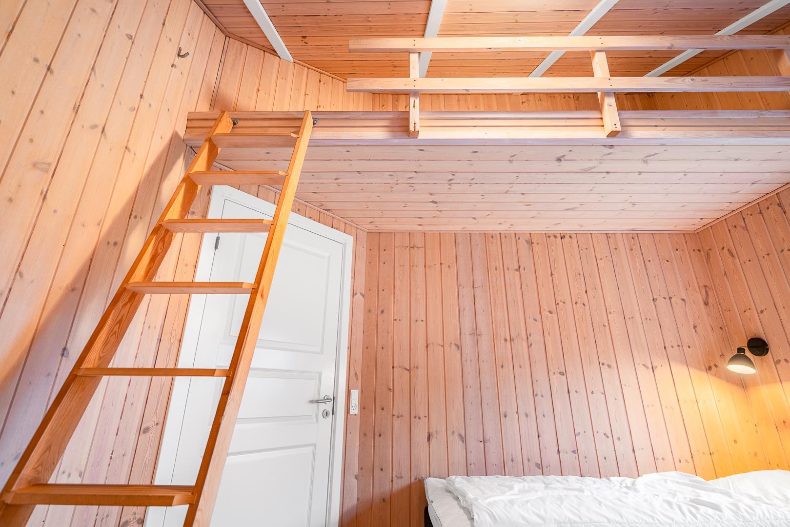 Sommerhuset har tre soveværelser samt en hyggelig hems, hvor børnene kan få deres eget lille fristed. Badeværelset er udstyret med både sauna og spa, så I kan slappe helt af efter en aktiv dag. Derudover findes vaskemaskine og tørretumbler – praktisk ved længere ophold.