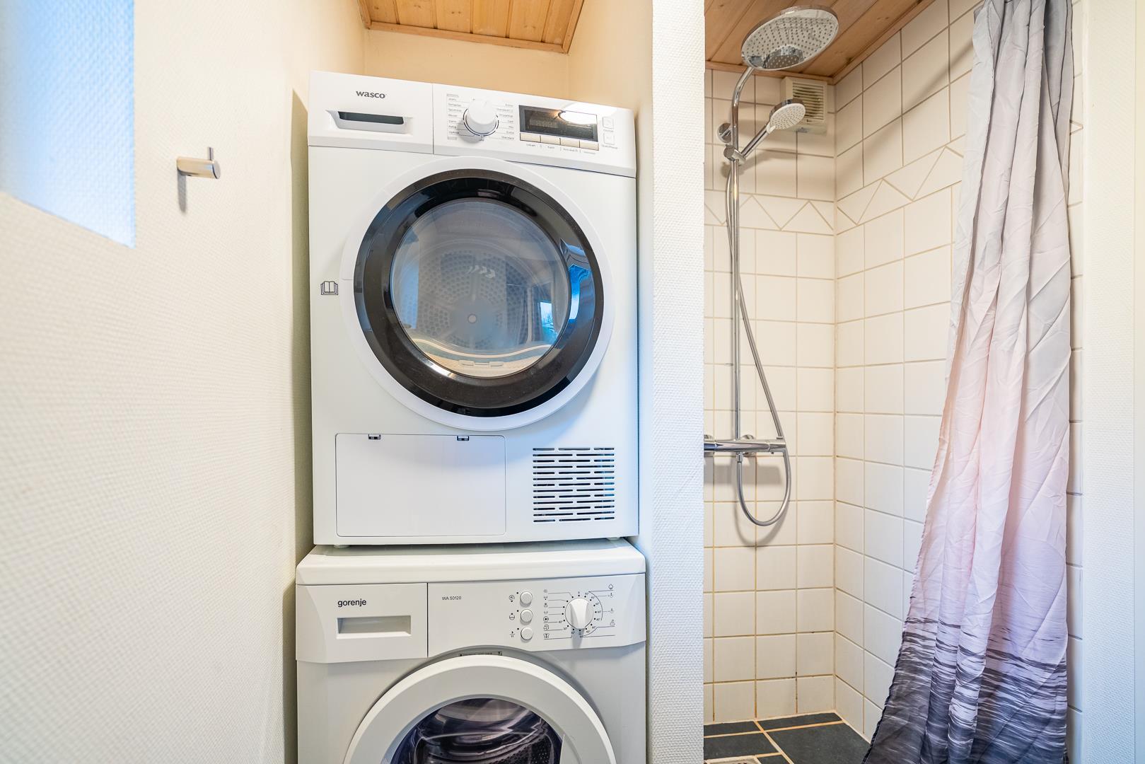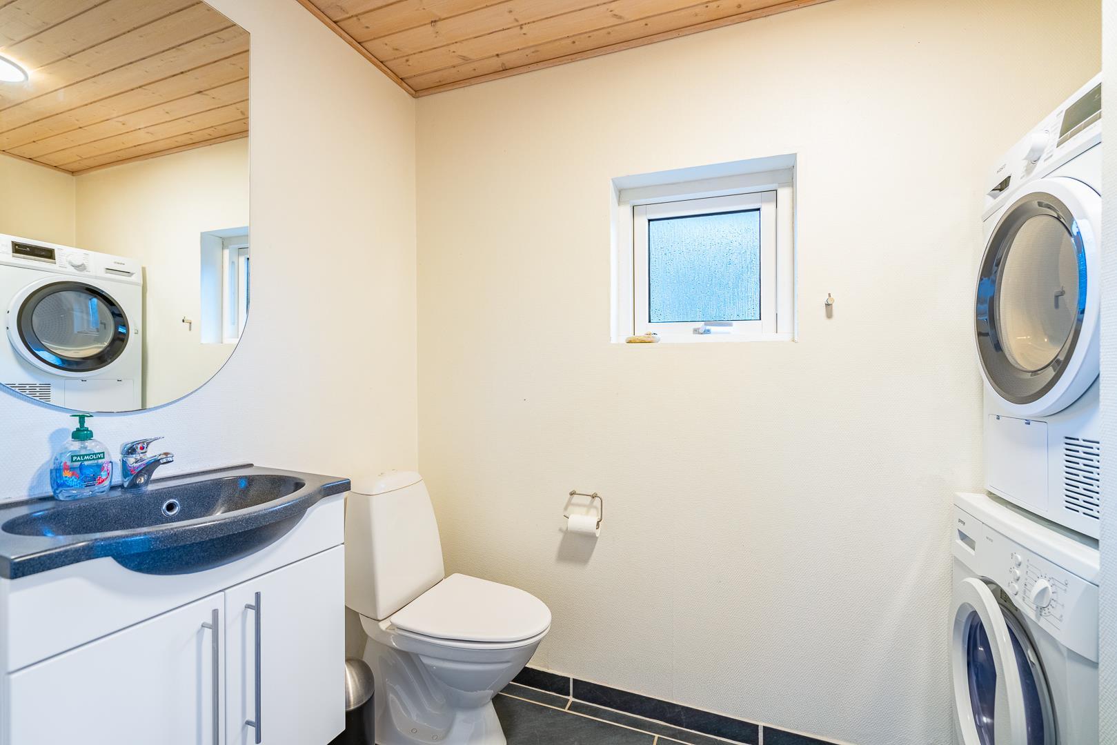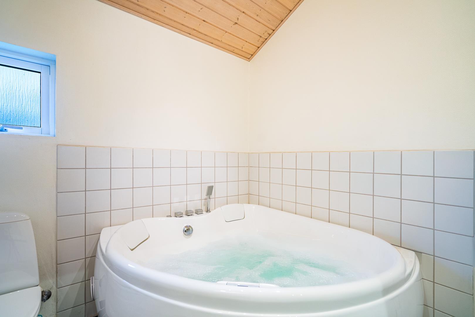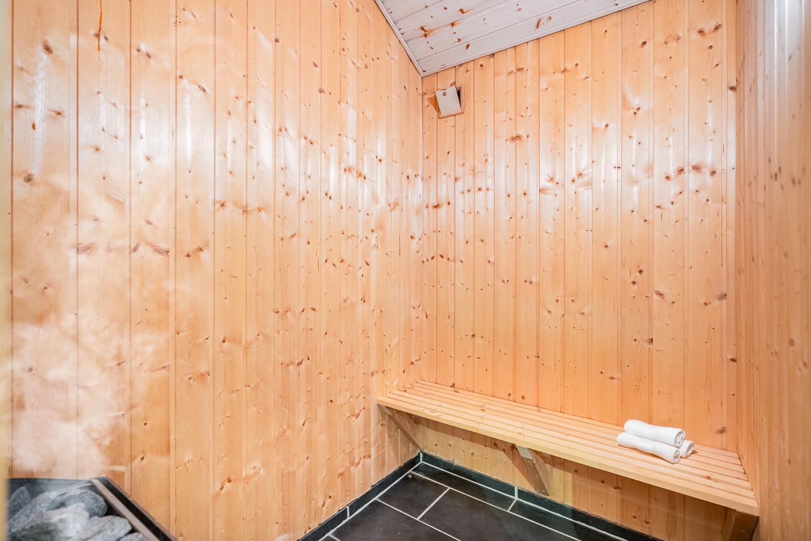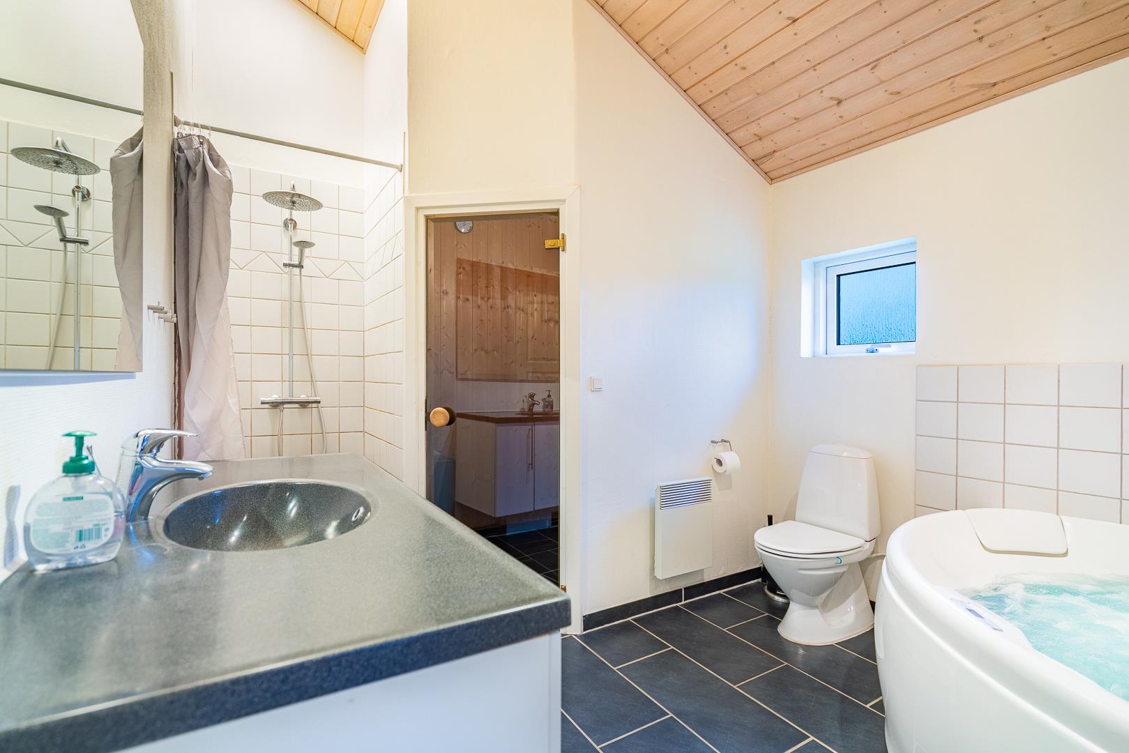 Sommerhuset har tre soveværelser samt en hyggelig hems, hvor børnene kan få deres eget lille fristed. Badeværelset er udstyret med både sauna og spa, så I kan slappe helt af efter en aktiv dag. Derudover findes vaskemaskine og tørretumbler – praktisk ved længere ophold.