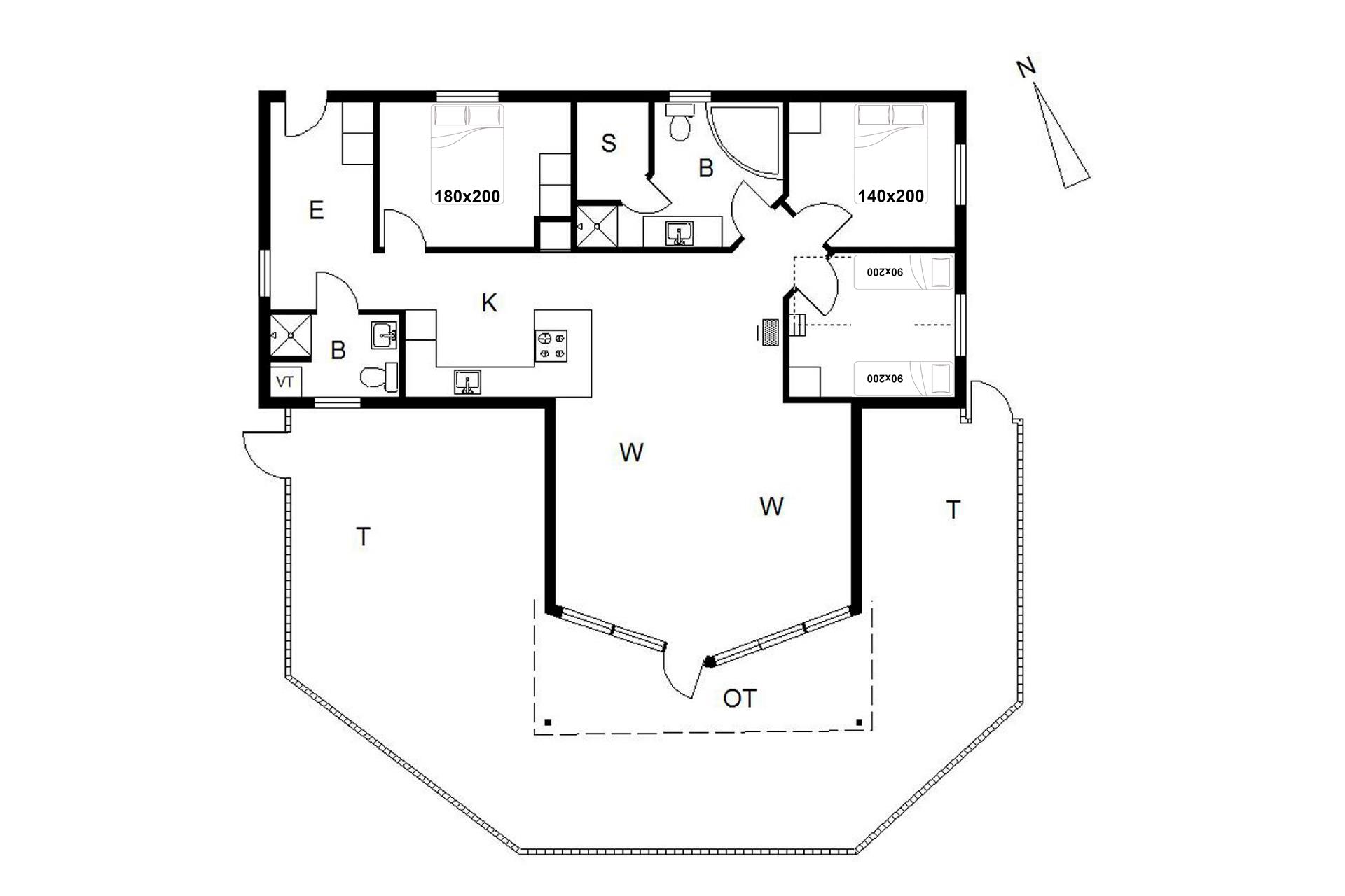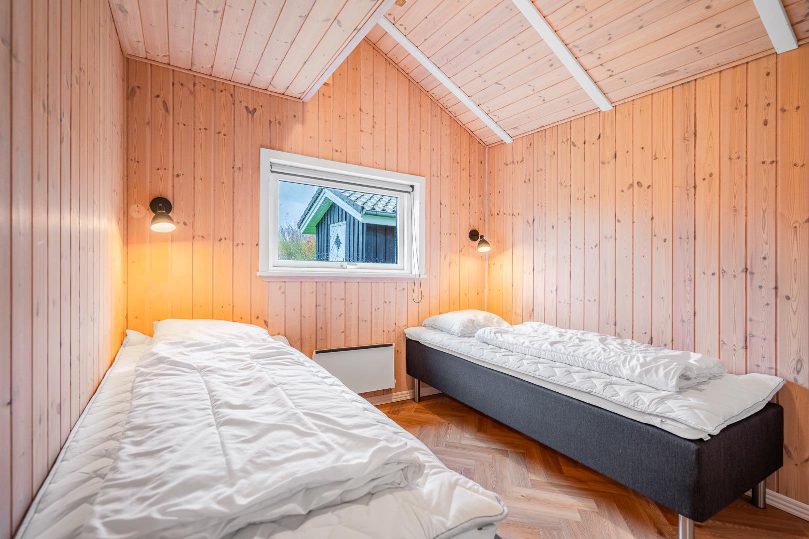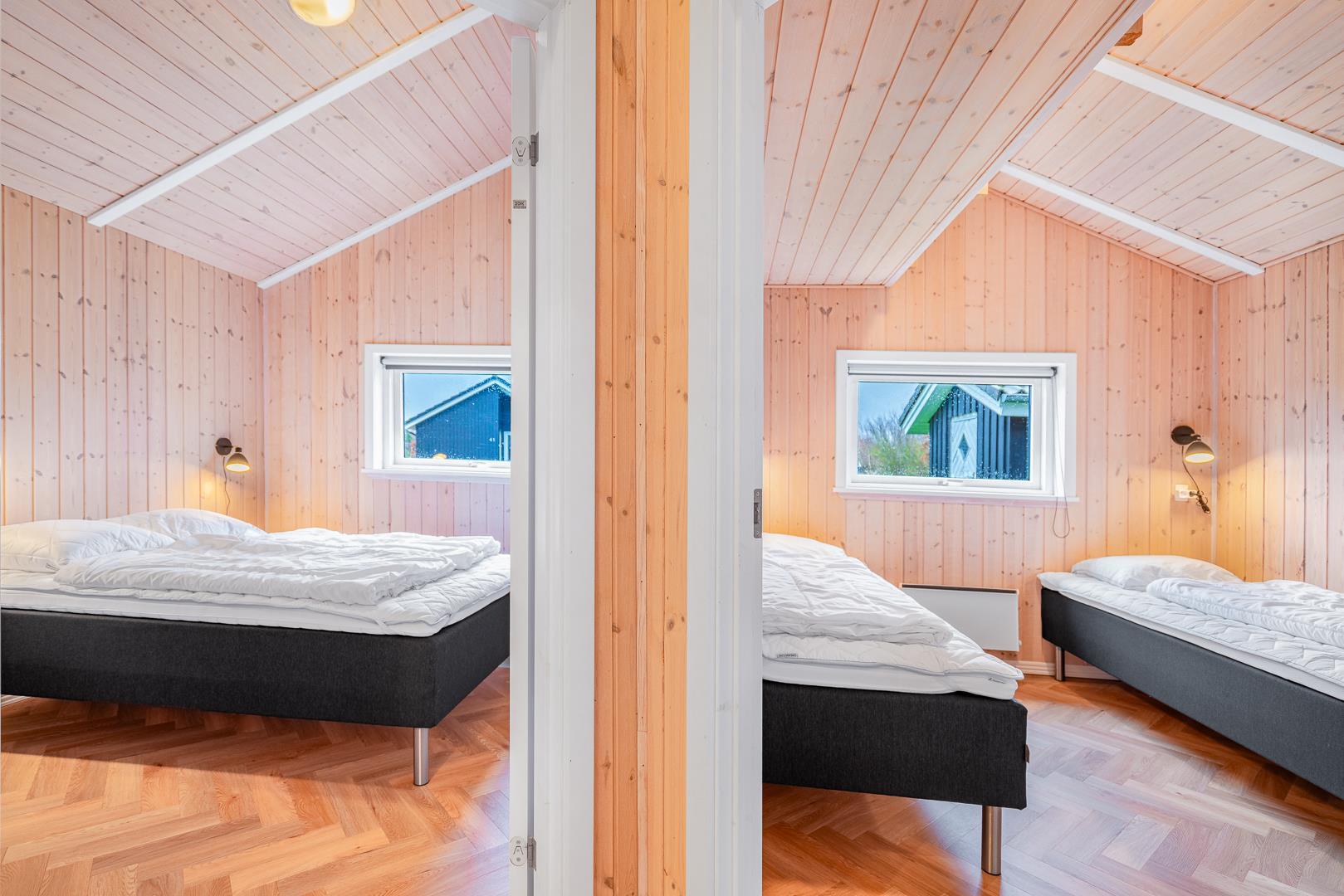 Sengestørrelse: 1 dobbeltseng (180 × 200 cm), 1 dobbeltseng (140 × 200 cm) og 2 enkeltsenge (90 × 200 cm).
