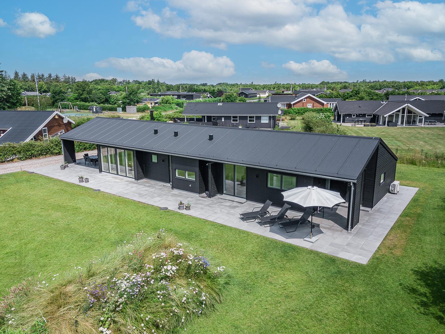 Det 125 m² store, røgfri og husdyrfri sommerhus har plads til op til 8 personer og er udstyret med alt, hvad man kan ønske sig, til en komfortabel ferie ved Vestkysten.