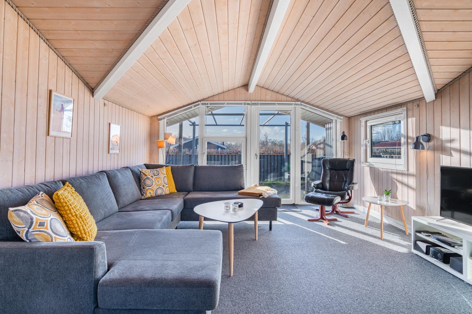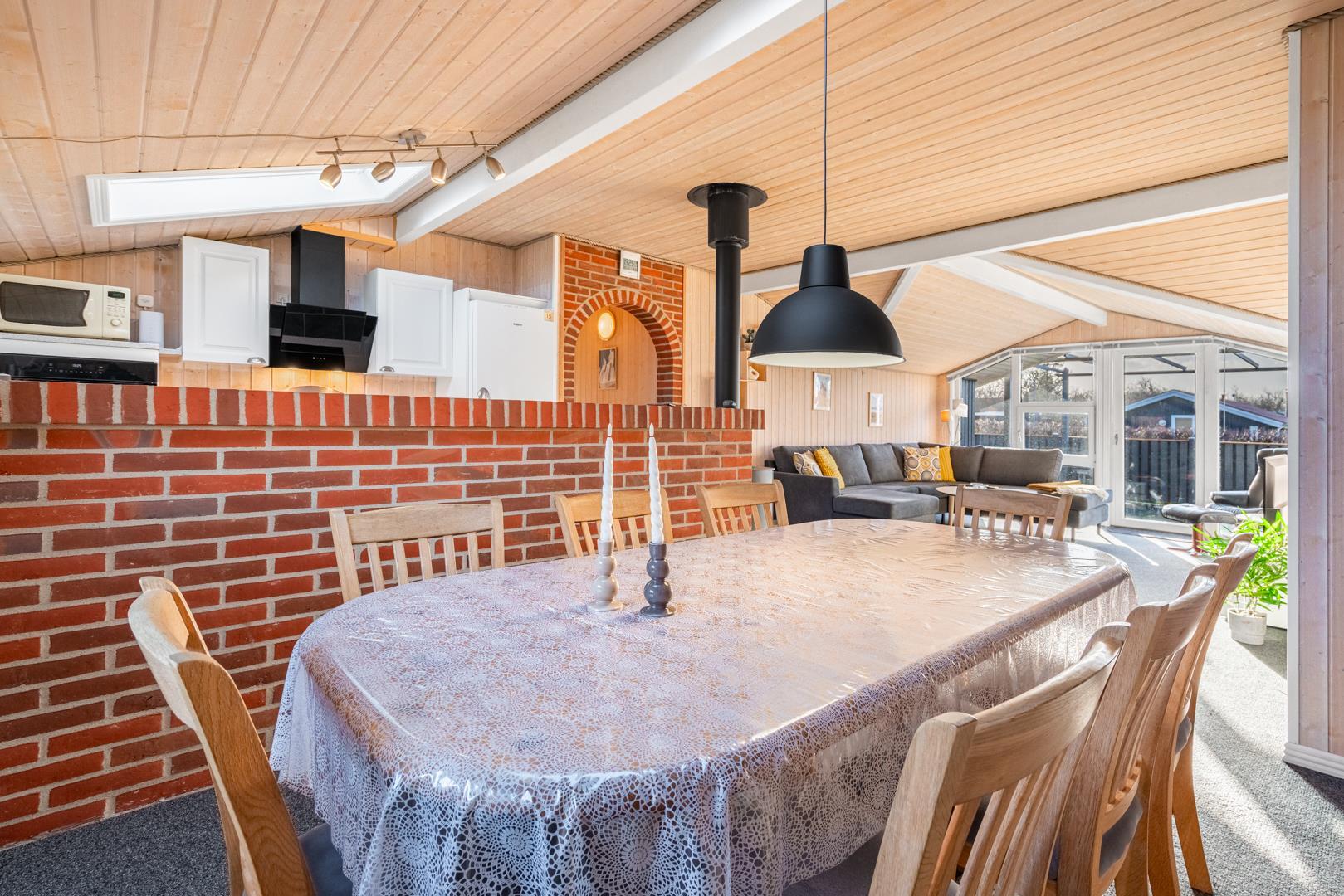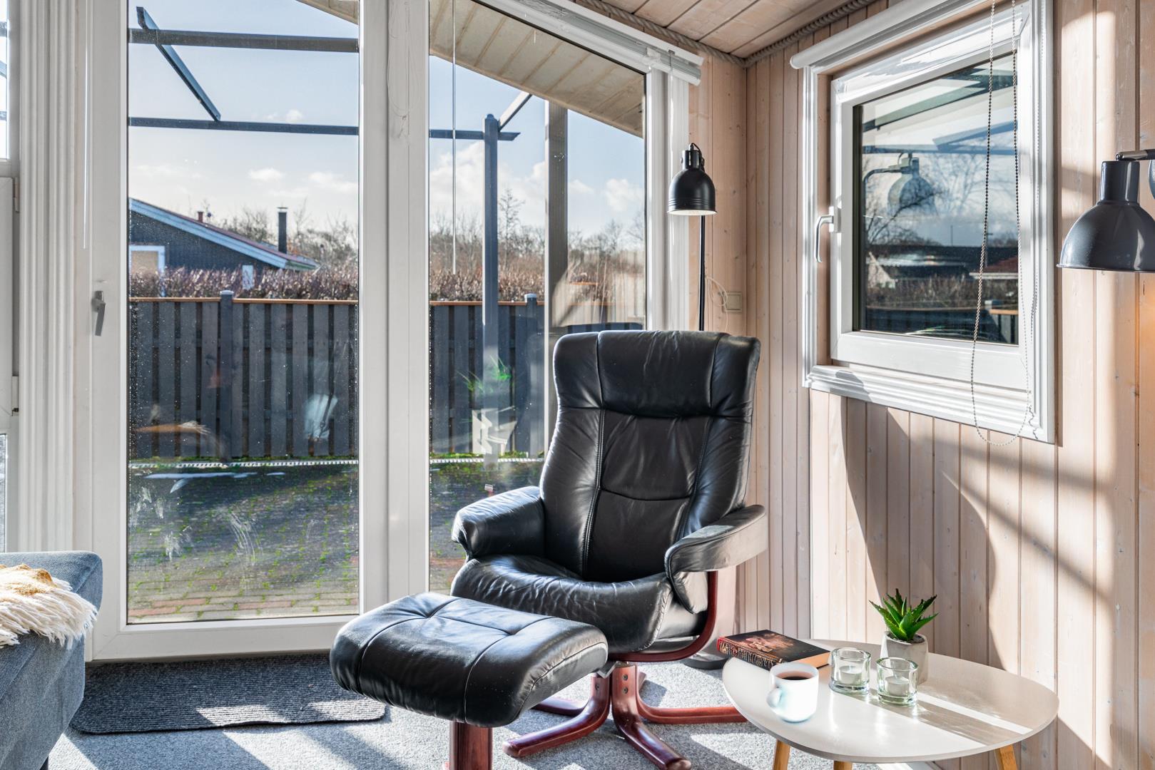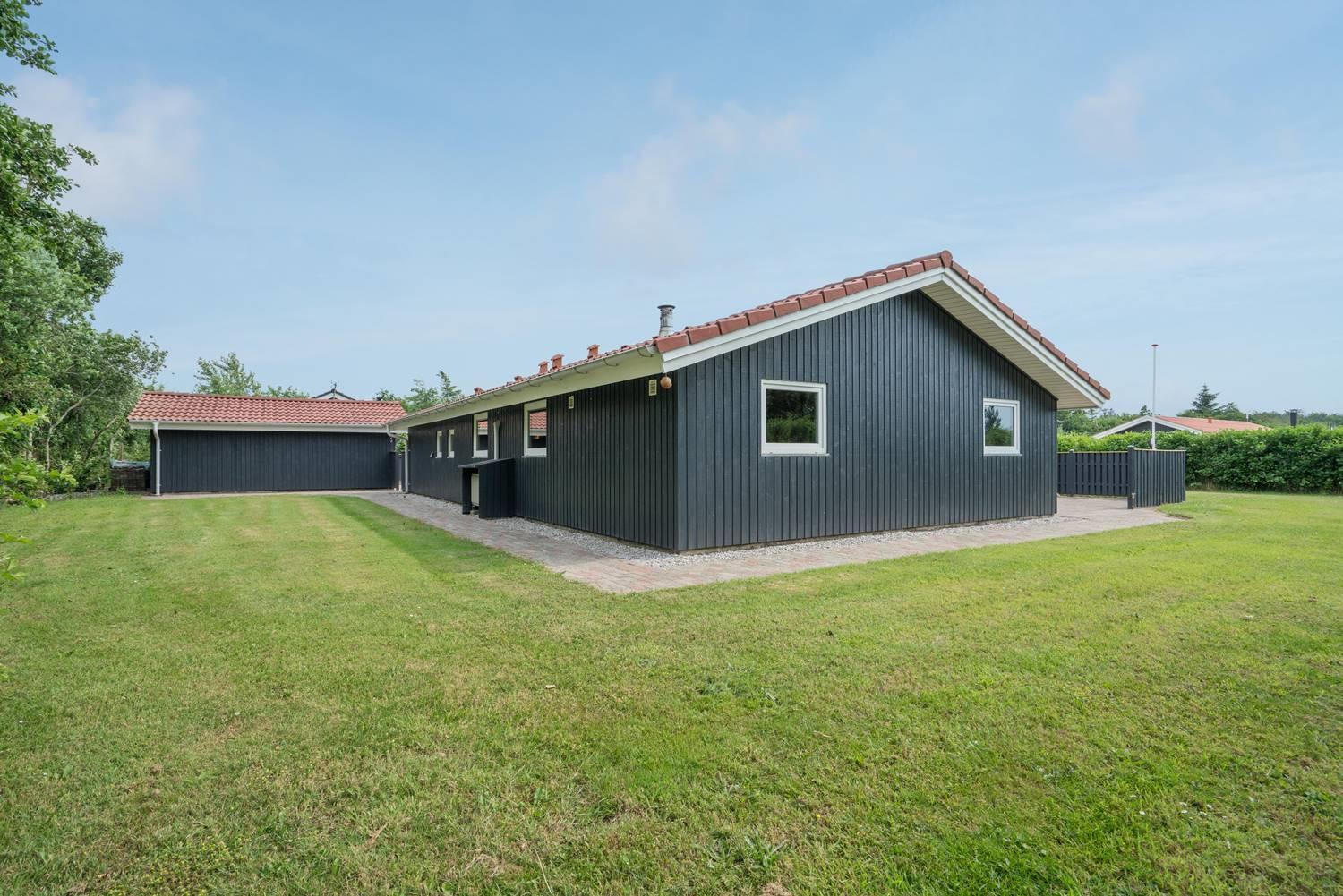 Den store, indhegnede have giver masser af plads til leg, boldspil og afslapning. For børnene er der gynge og sandkasse, og på den overdækkede terrasse kan I nyde jeres måltider og de lange sommeraftener – også når vinden frisker op.