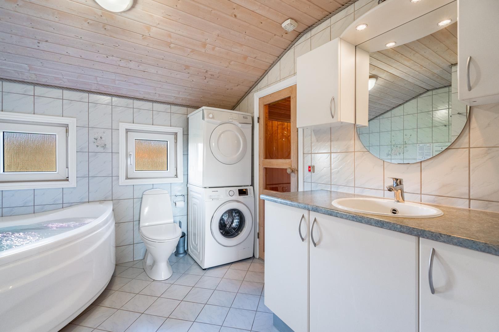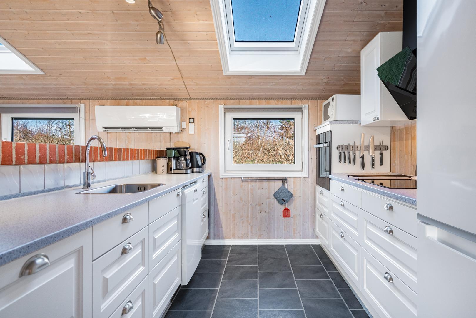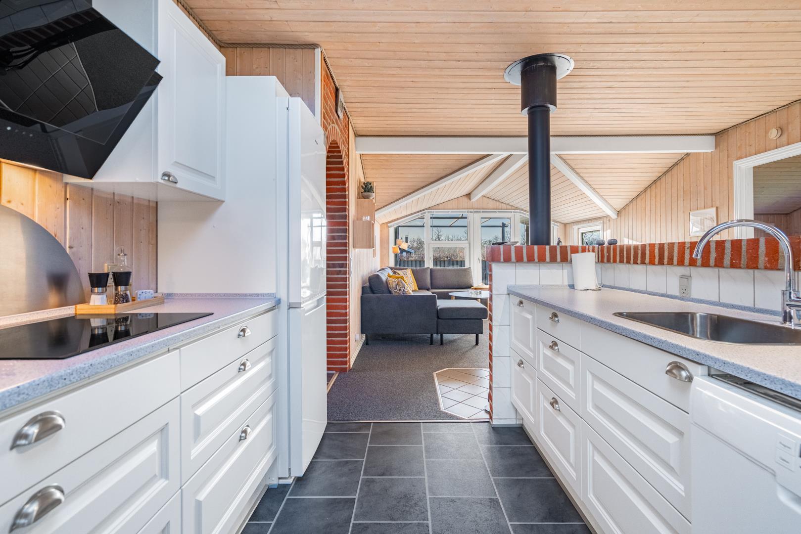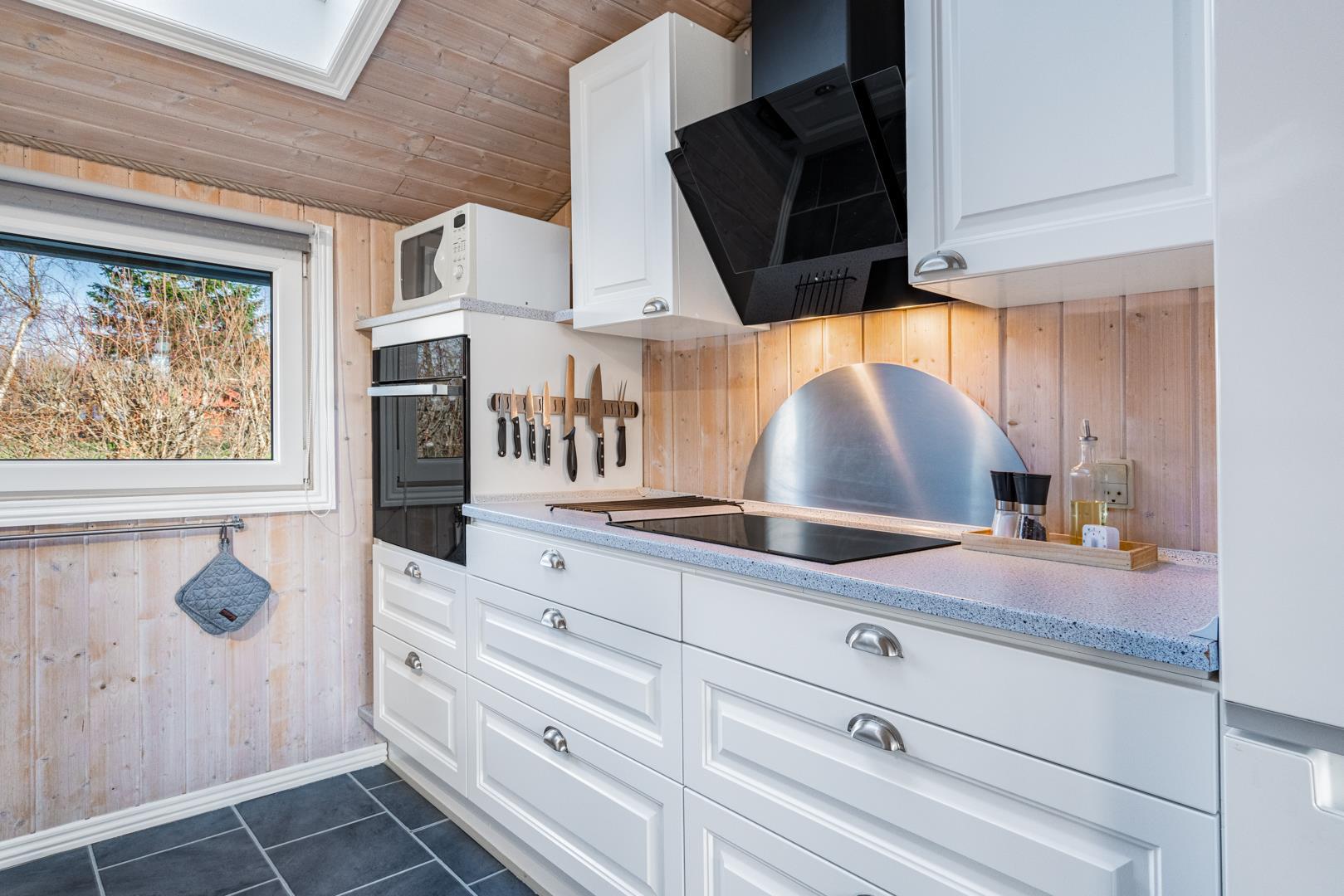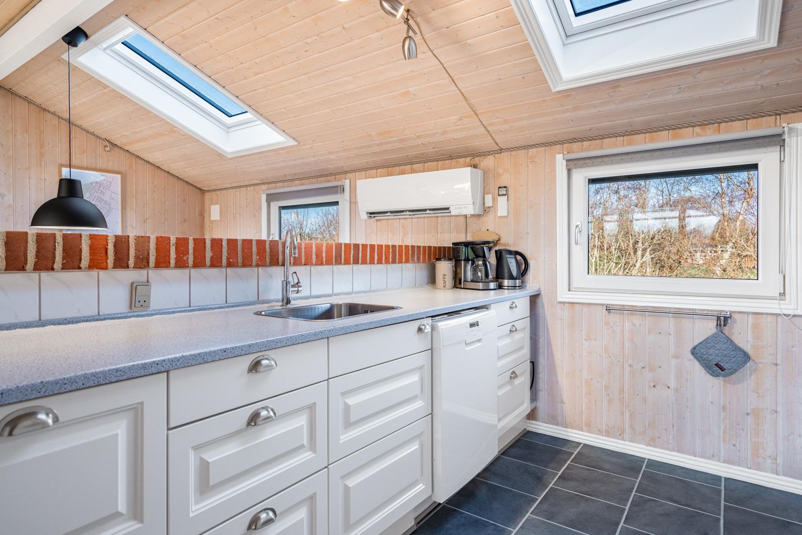 Køkkenet er moderne og veludstyret med alt, hvad I skal bruge til fælles måltider – inklusive opvaskemaskine. Der er også både vaskemaskine og tørretumbler, så det hele bliver lidt nemmere, især hvis ferien varer mere end en weekend.