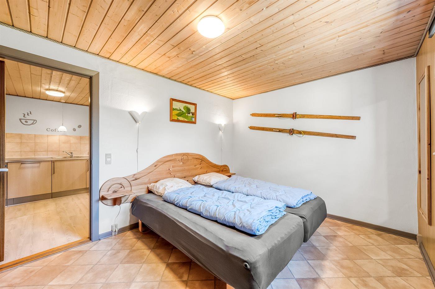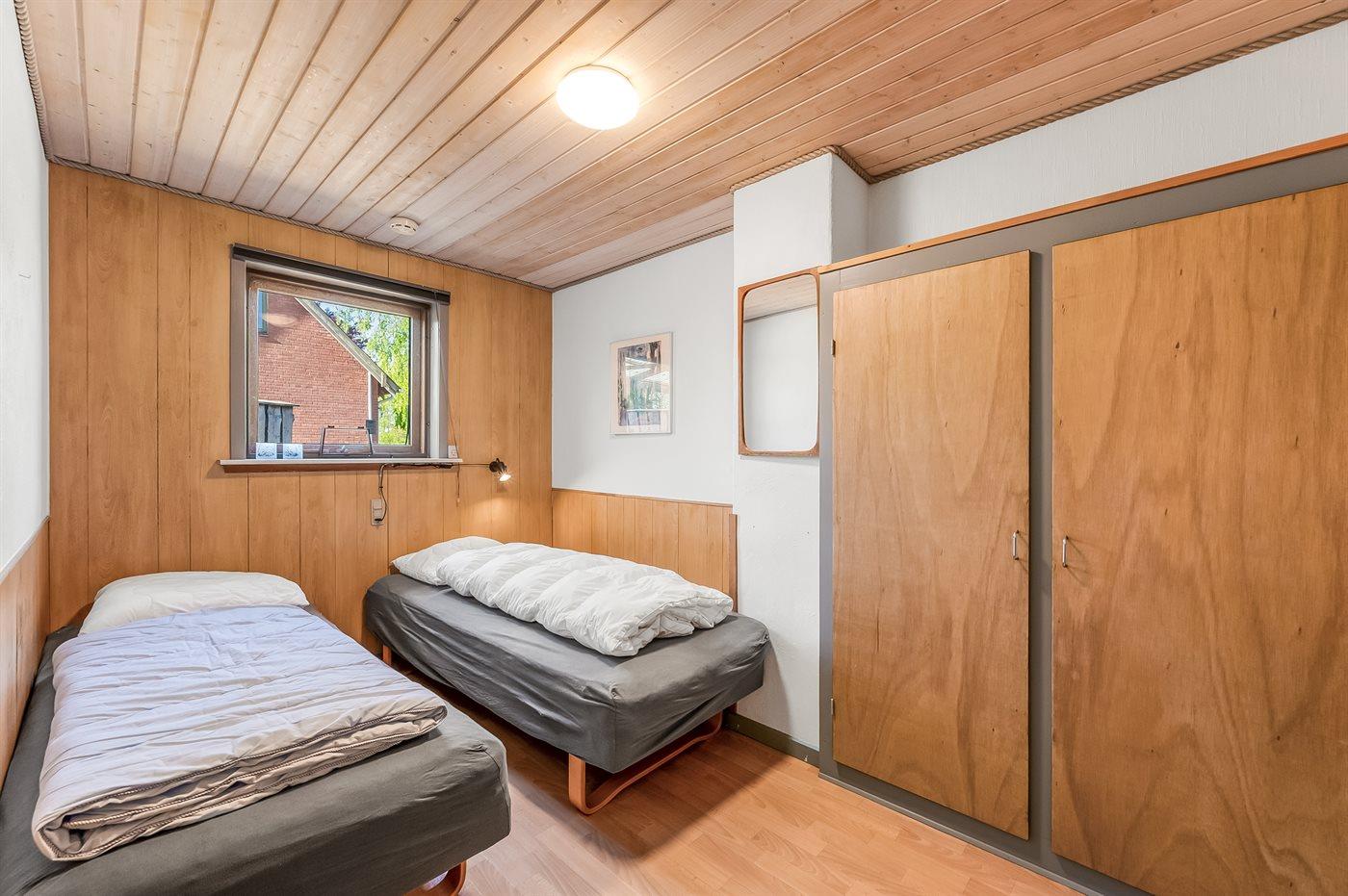 Der er i alt 2 soveværelser. Sovepladserne fordeler sig på: 2 sovepladser i dobbeltseng. 2 sovepladser i enkeltsenge. Derudover er der 1 stk. barneseng.