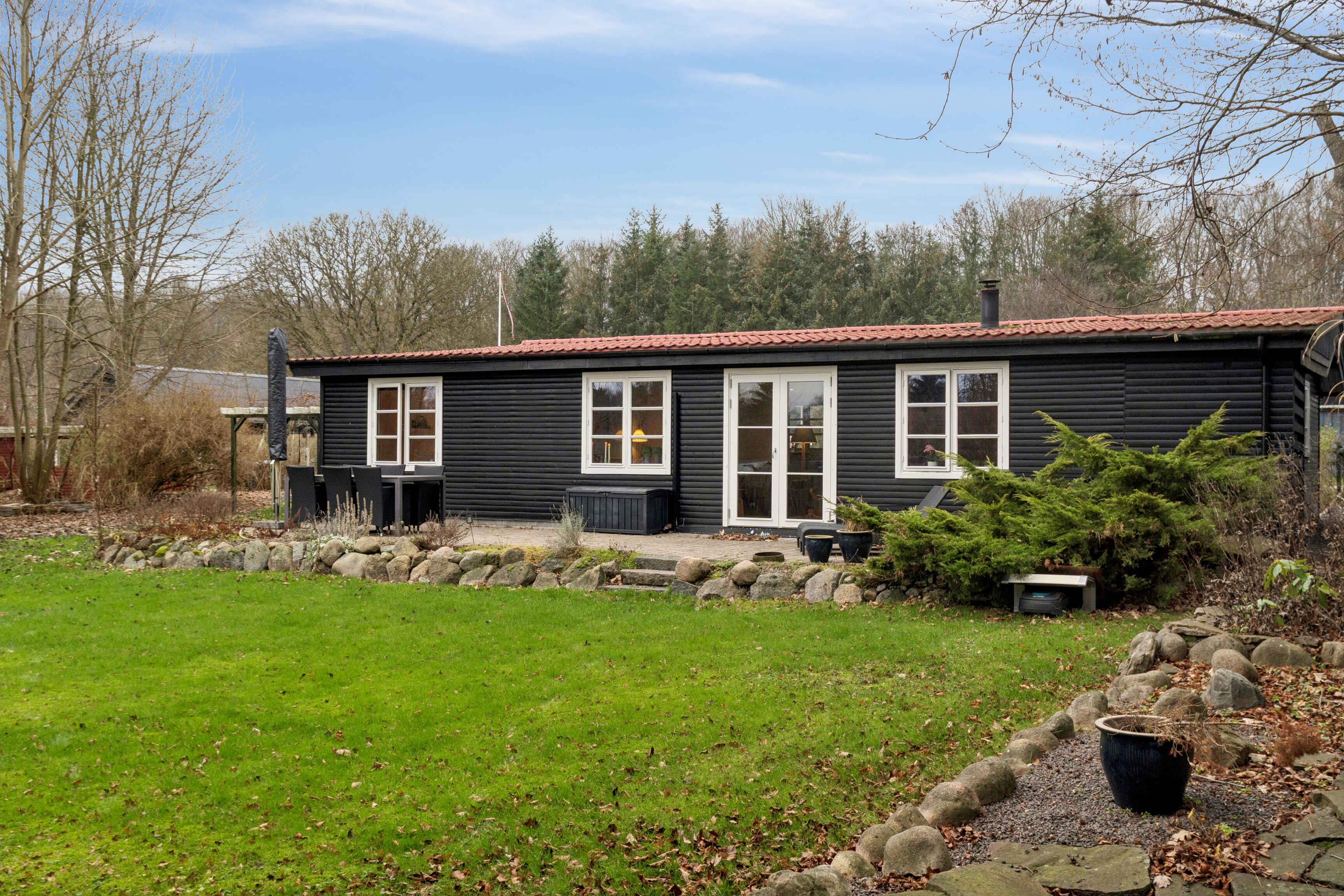 dejligt lyst sommerhus, 400 til badesø, , varmepumpe, brændeovn, internet, stor grund med plads til leg, stor terrasse, oplader til elbil type 2, smart tv, skøn natur i området til mountainbike og gåture, knap 7 km til golfbane