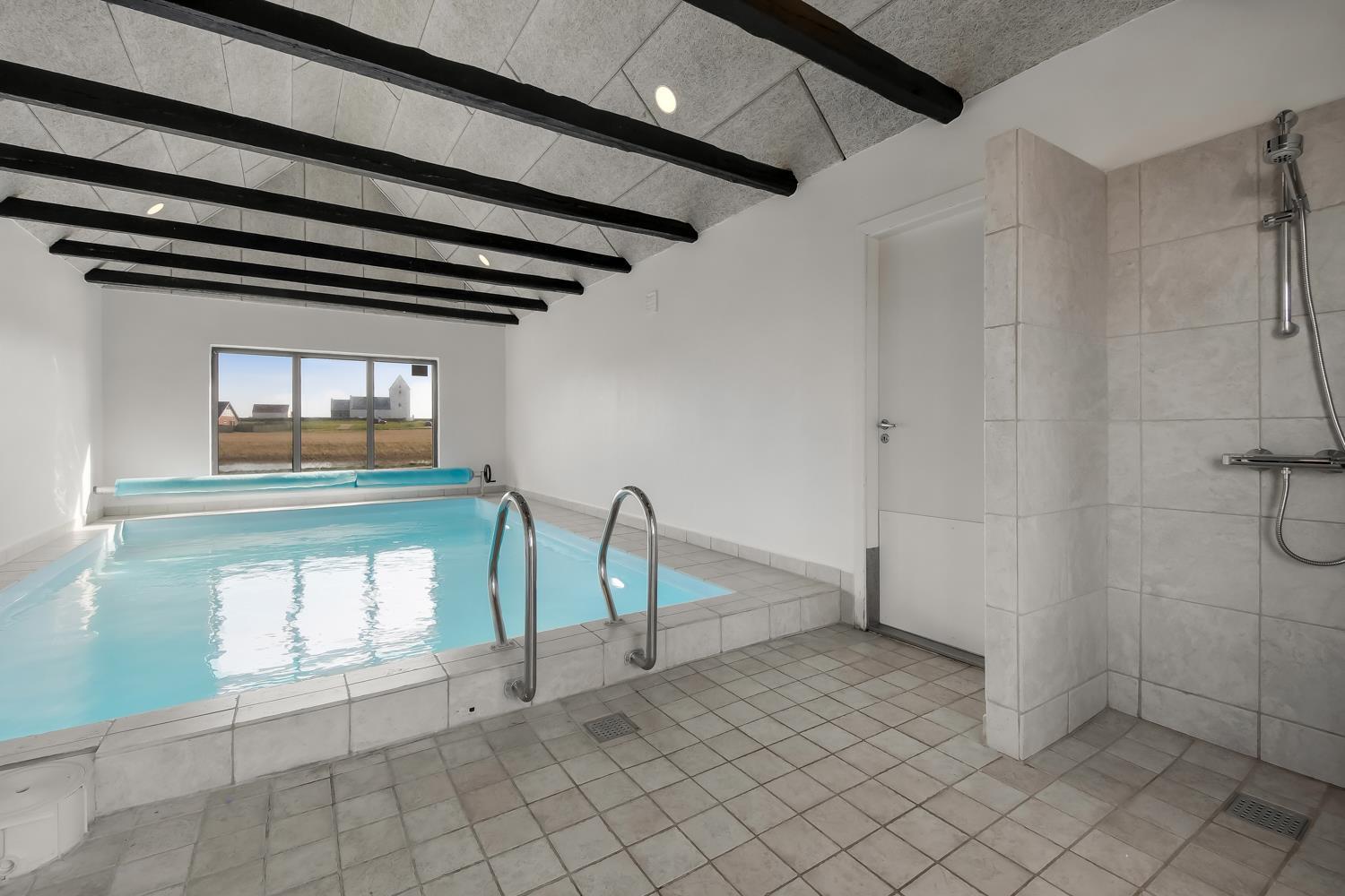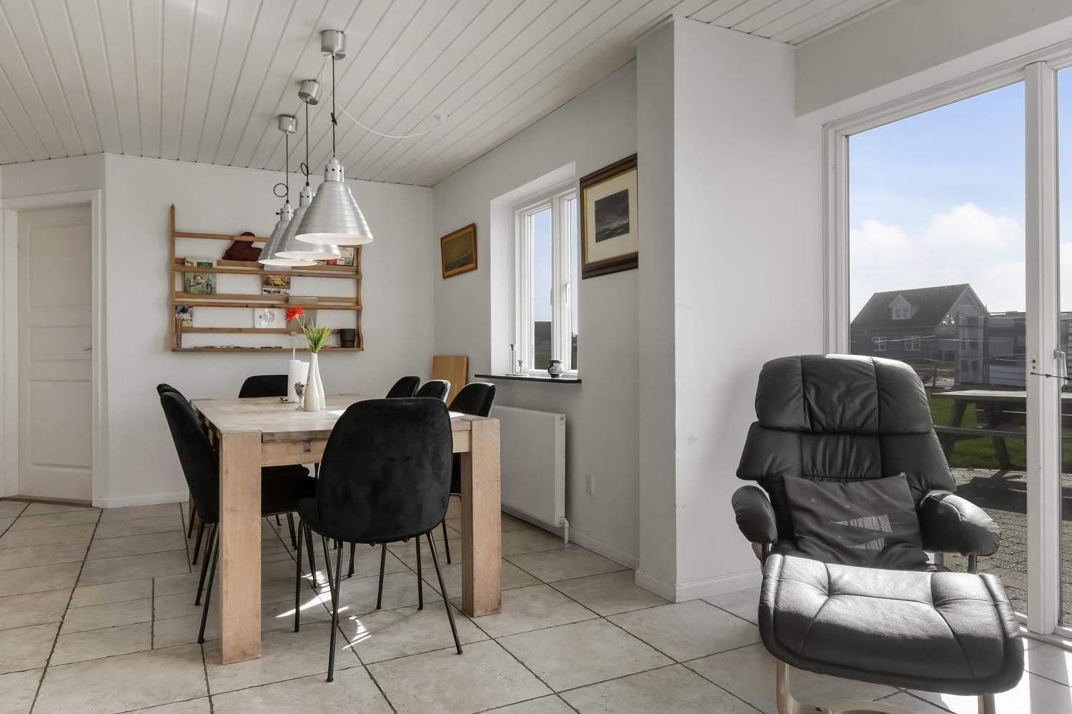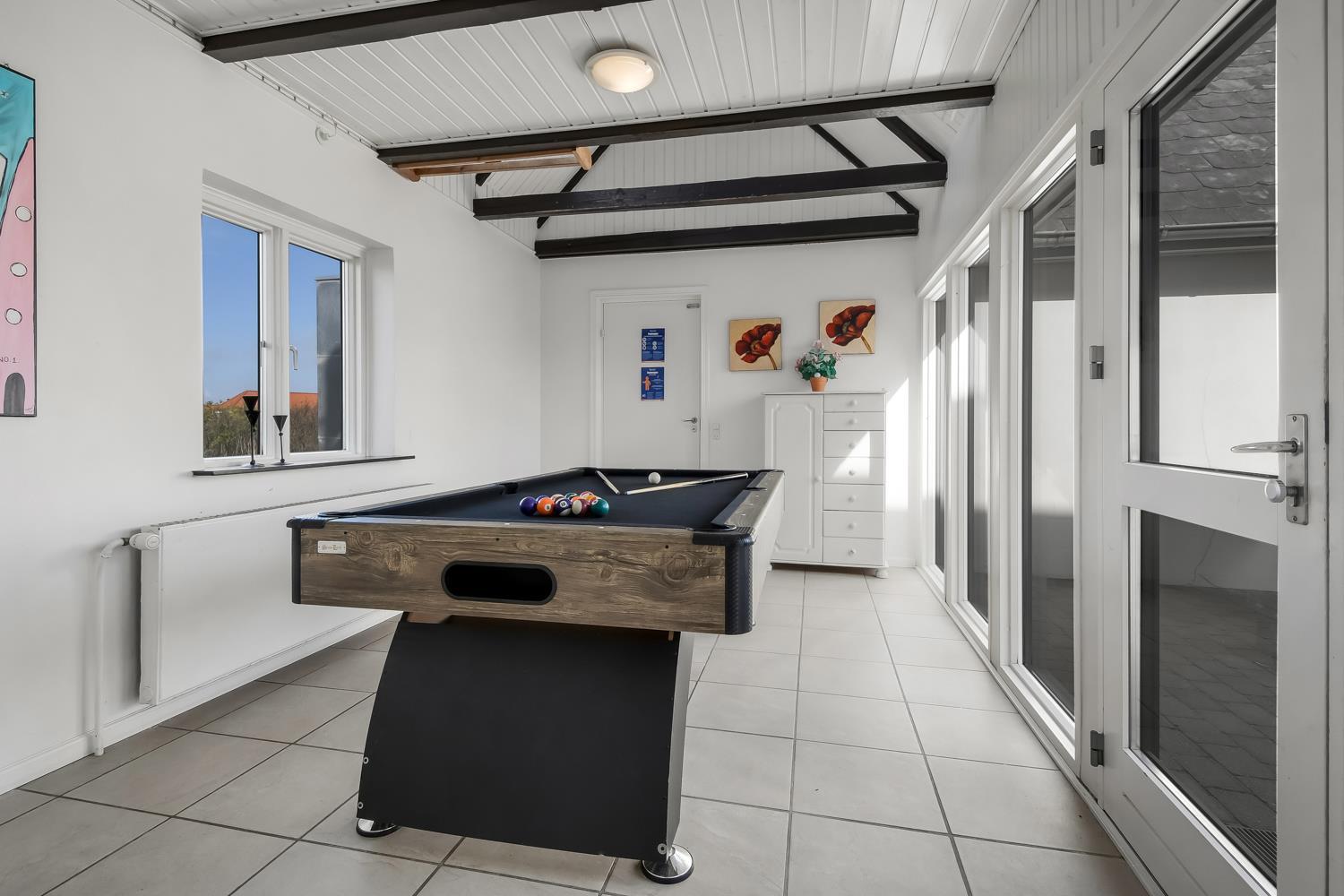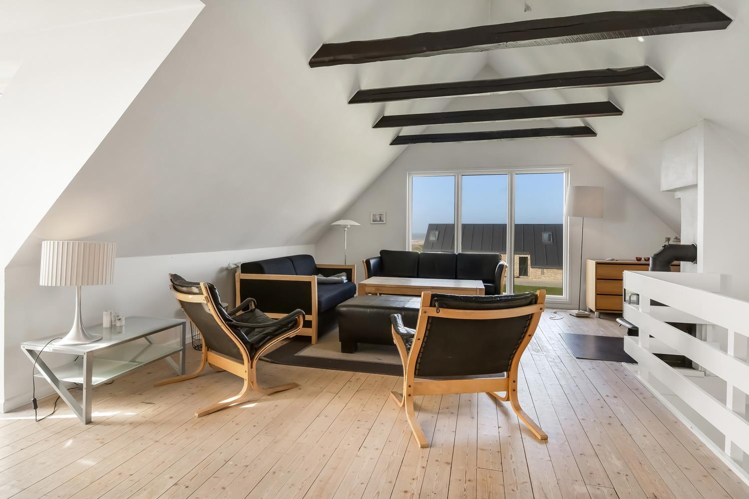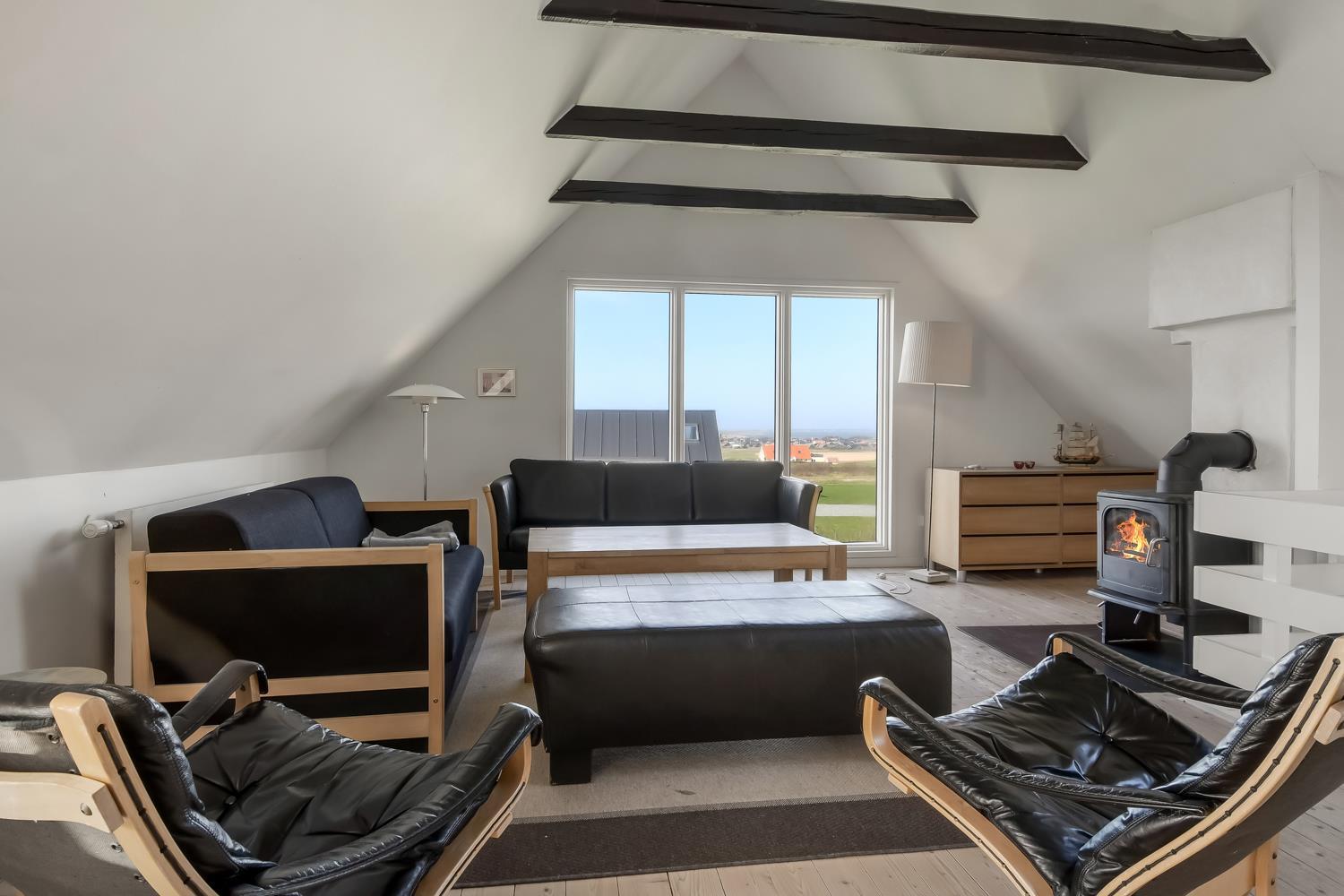 På 1. sal er stuen, hvor der er fladskærms-TV med DR1 og TV2, DVD og CD-afspiller. Her er husets brændeovn, hvor man kan sidde og nyde en god bog og lytte til brændeovnens knitren - eller sætte sig hen ved vinduet og nyde den helt fantastiske udsigt over Vesterhavet. På 1. sal er der 2 soverum: 1DS + 2ES og alle gulve er trægulve. Husets køkken er godt udstyret med bl.a. keramisk komfur, opvaskemaskine, mikroovn og 70L fryser. Fra køkkenet er der adgang til huset spisestue, som også har en flot udsigt over landskabet. I underetagen er der 3 rummelige soverum: 1DS + 1DS + 1DS. Til de helt små er der barneseng og barnestol til rådighed. Huset har 2 badeværelser begge med gulvvarme og bruser. I den store poolafdeling er husets swimmingpool og den 4 personers store spa, hvorfra man har udsigt til Vesterhavet. Desuden er der adgang til sauna og bruser i poolrummet. Der er vaskemaskine og tørretumbler. Husdyr er tilladt. Depositum vintersæson kr. 4500 og sommersæson kr. 2200. Ikke rygerhus.