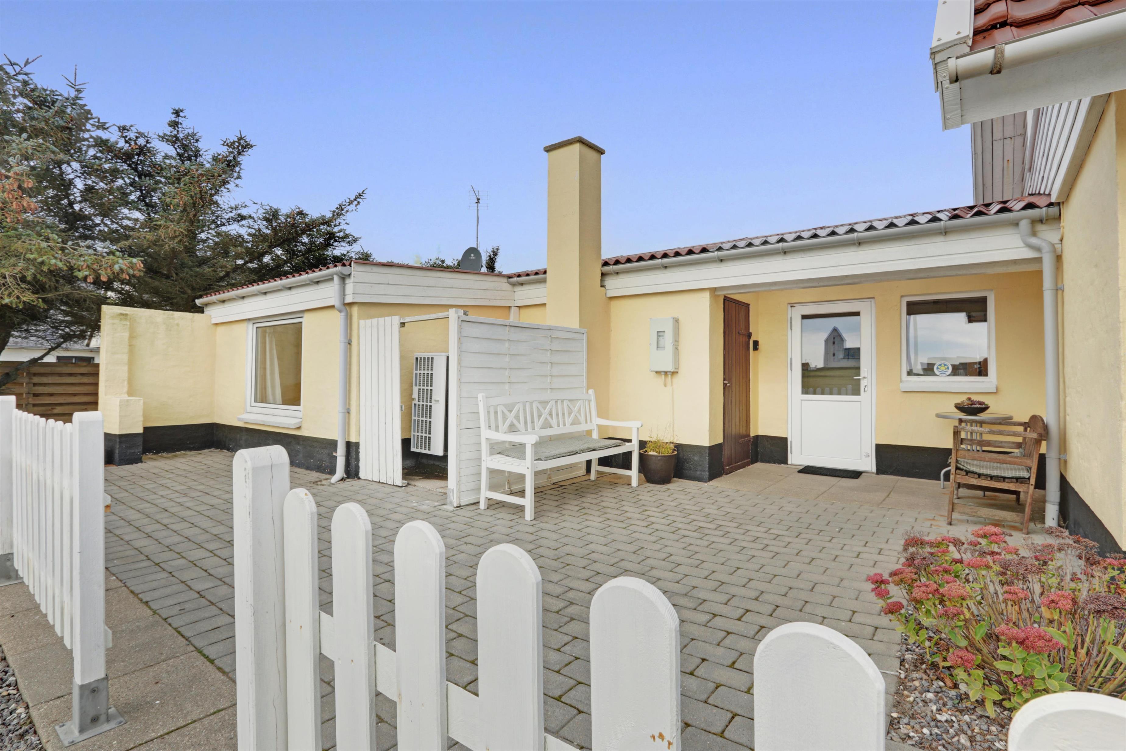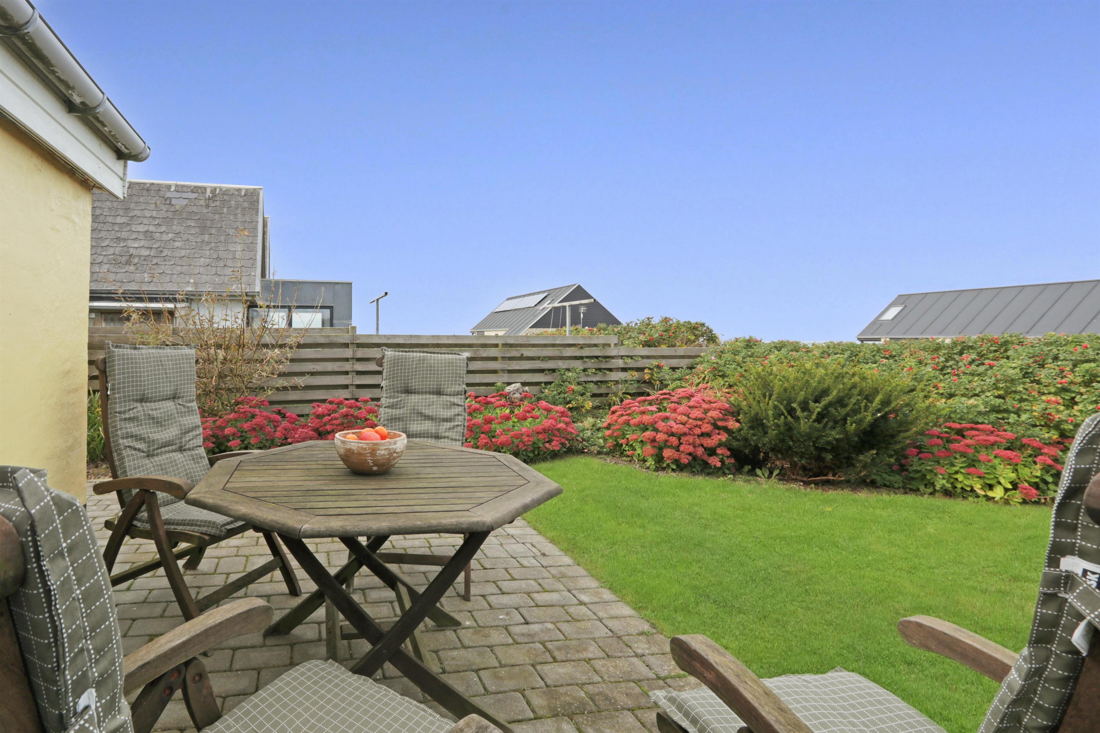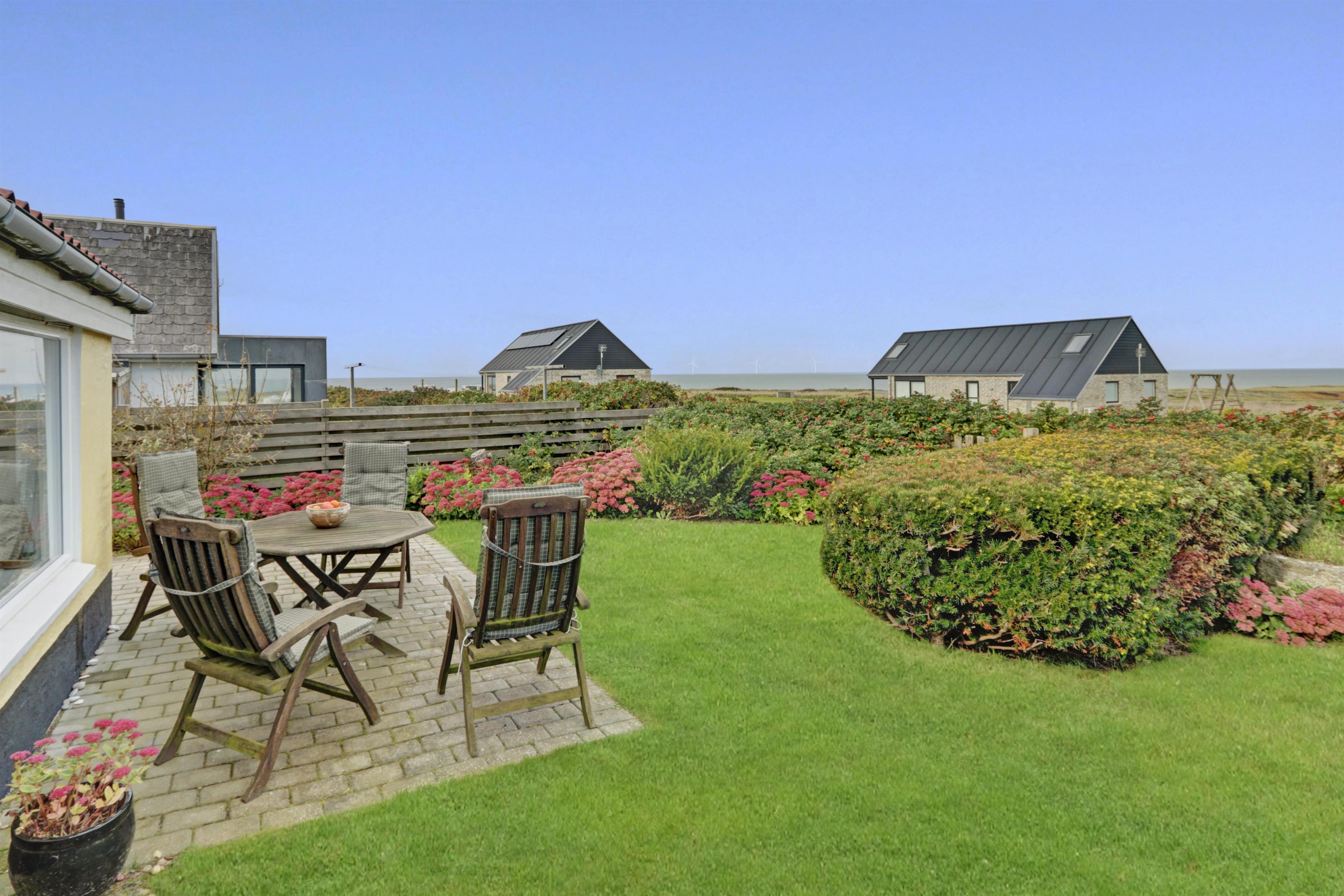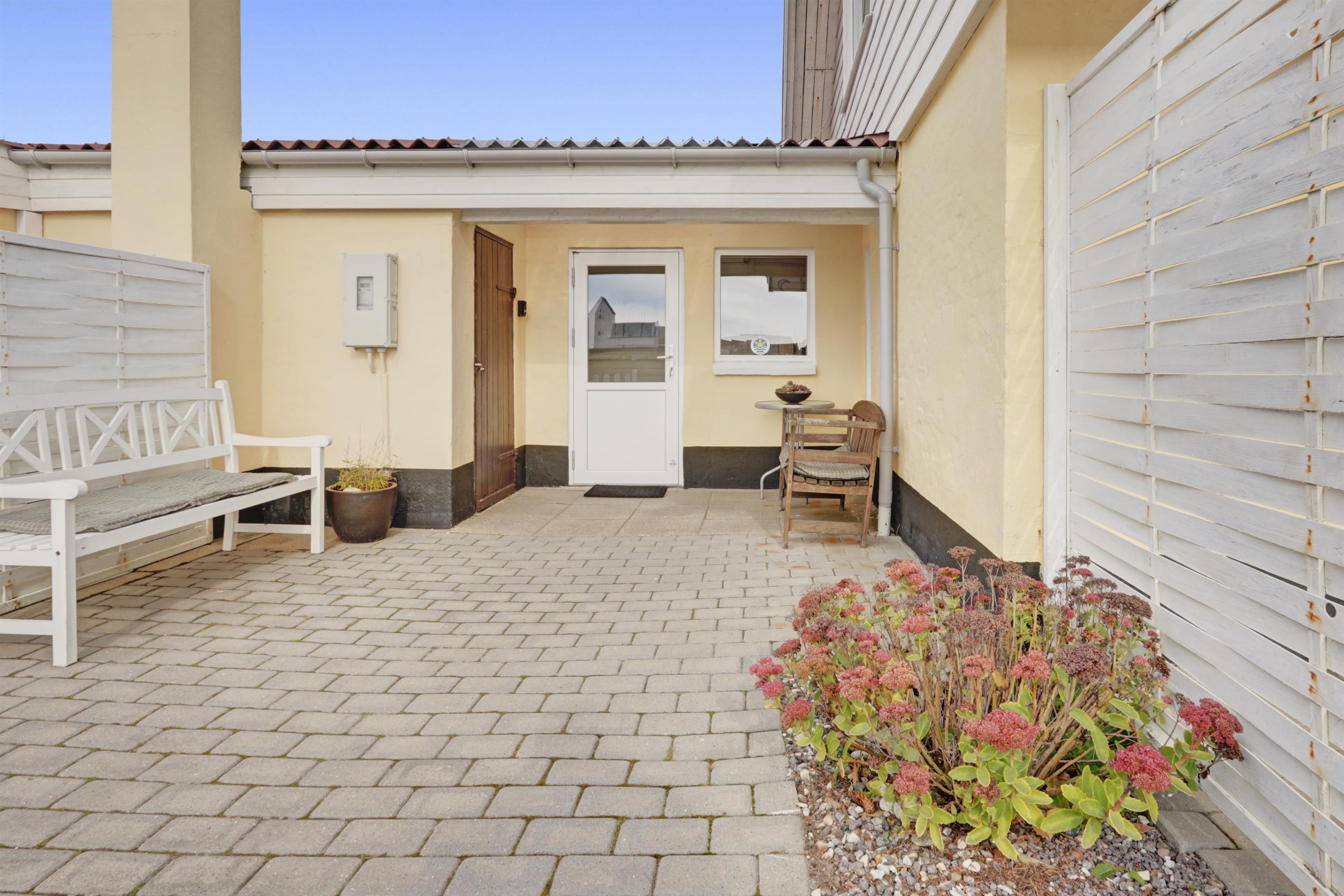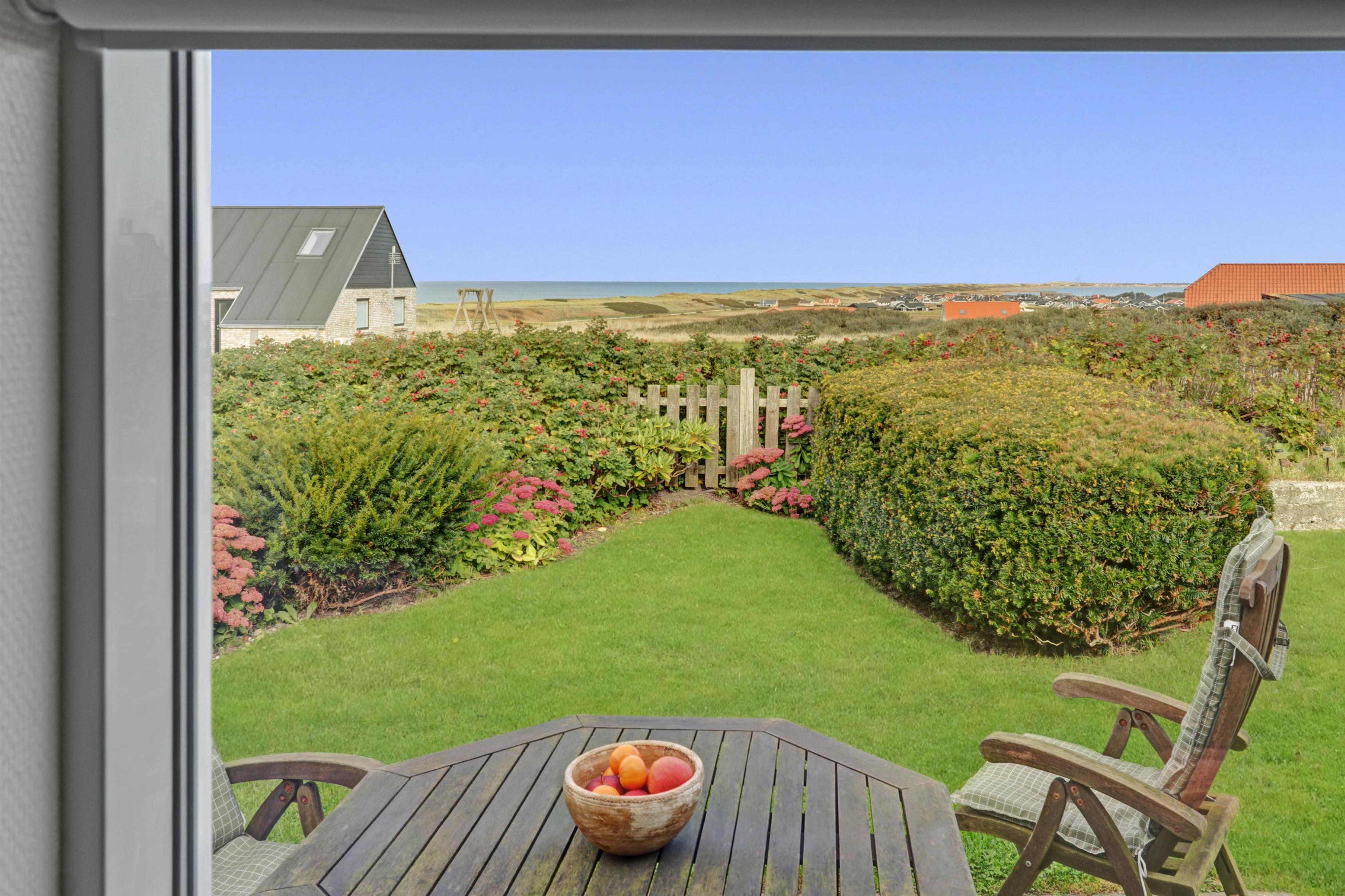 Lejligheden ligger i forbindelse med ejerens bolig, men har egen indgang, så I kan nyde privatliv og ro. Udenfor venter en dejlig delvis overdækket, gårdhave og terrasse med havemøbler, grill og solvogne og en have – alt sammen med udsigt til det brusende hav.