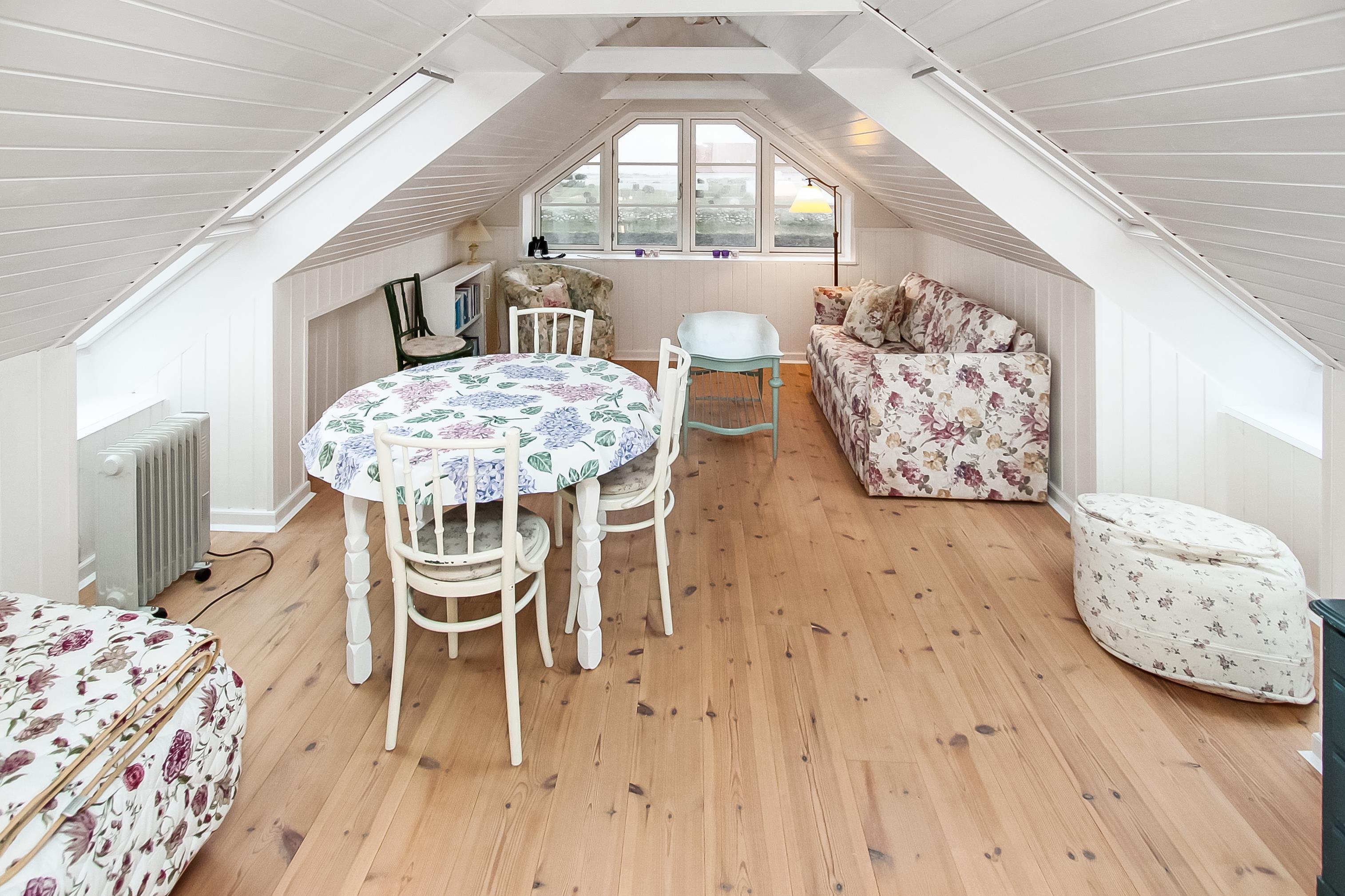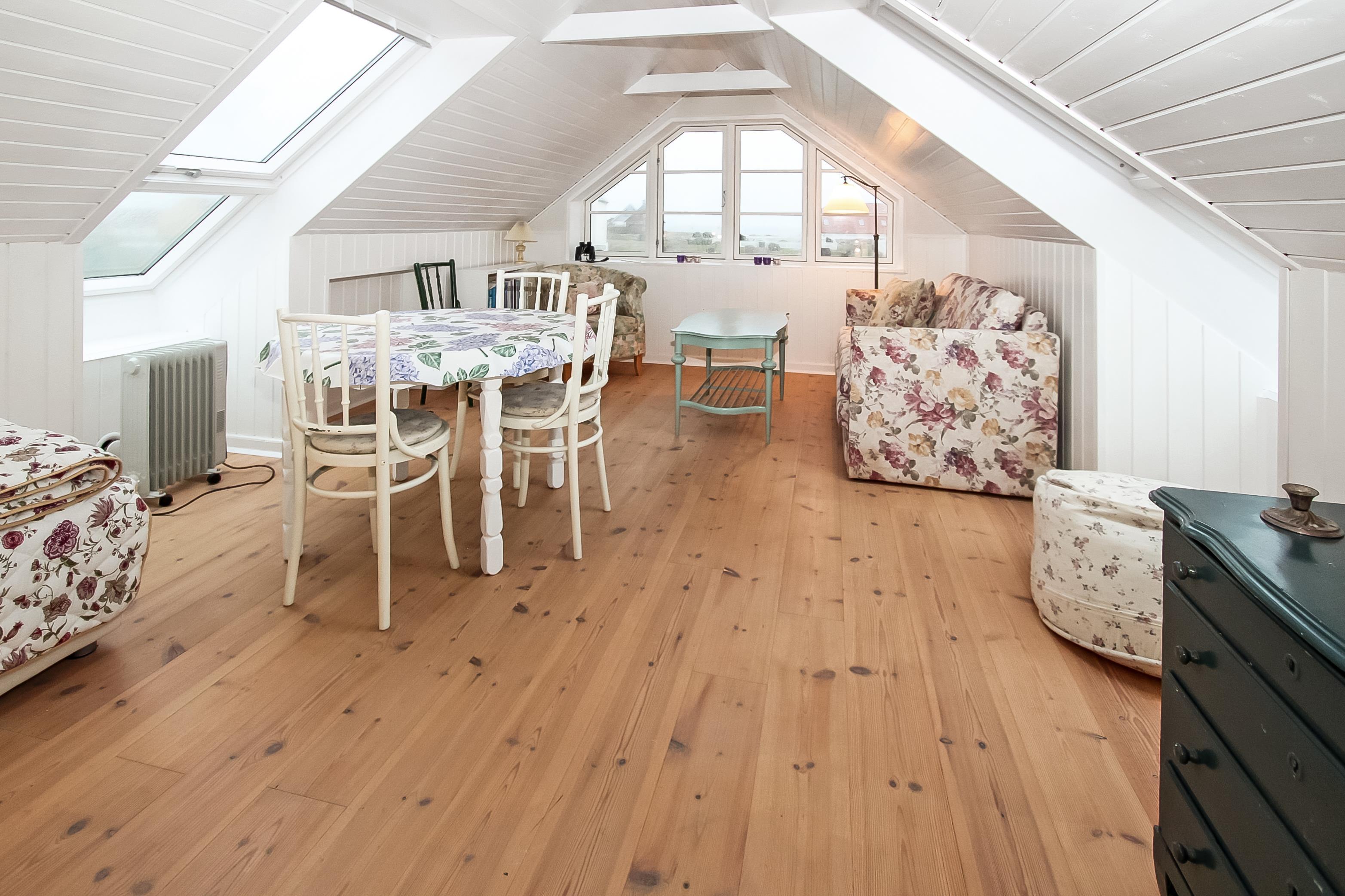 1. sal: Flot trappeopgang til 1. sal hvor der er en ekstra stue med spiseplads og polstermøbler samt fantastisk udsigt til Vesterhavet, området og Ferring Sø samt huset soveværelse. Ikke rygerhus. 2 husdyr er tilladt.