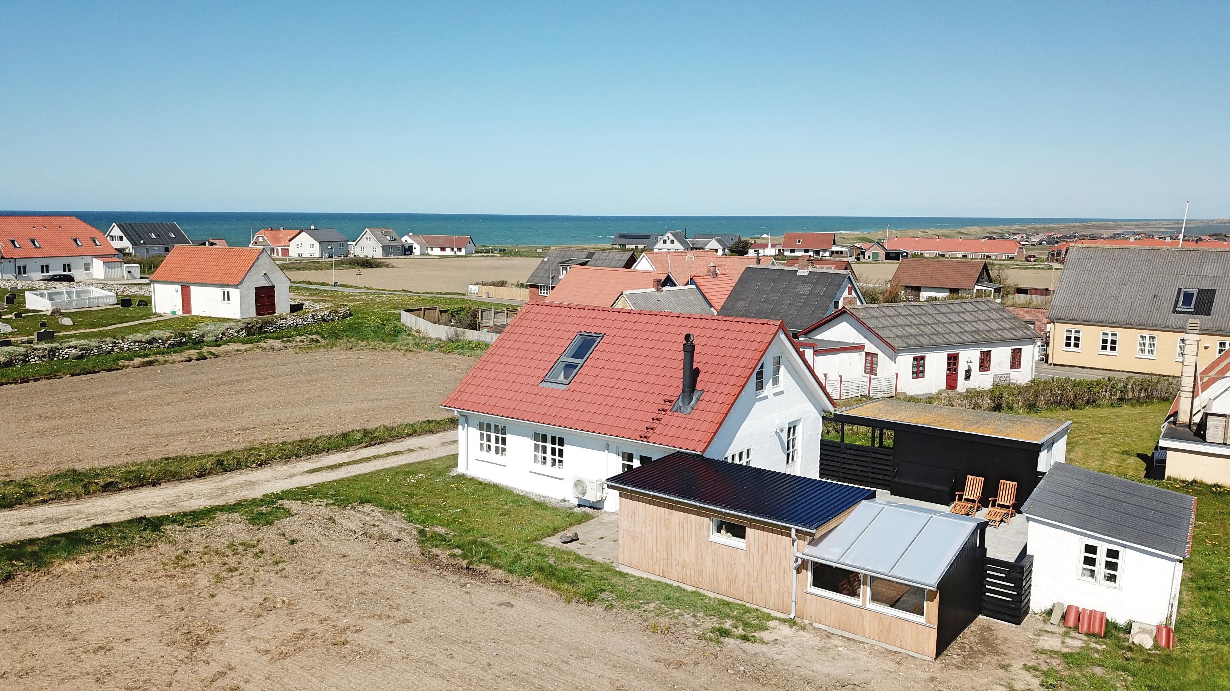 Hyggeligt murstenshus, beliggende i Bovbjerg tæt ved kirken og med panorama udsigt fra 1. sal til Vesterhavet og Ferring sø. Gratis Internet.