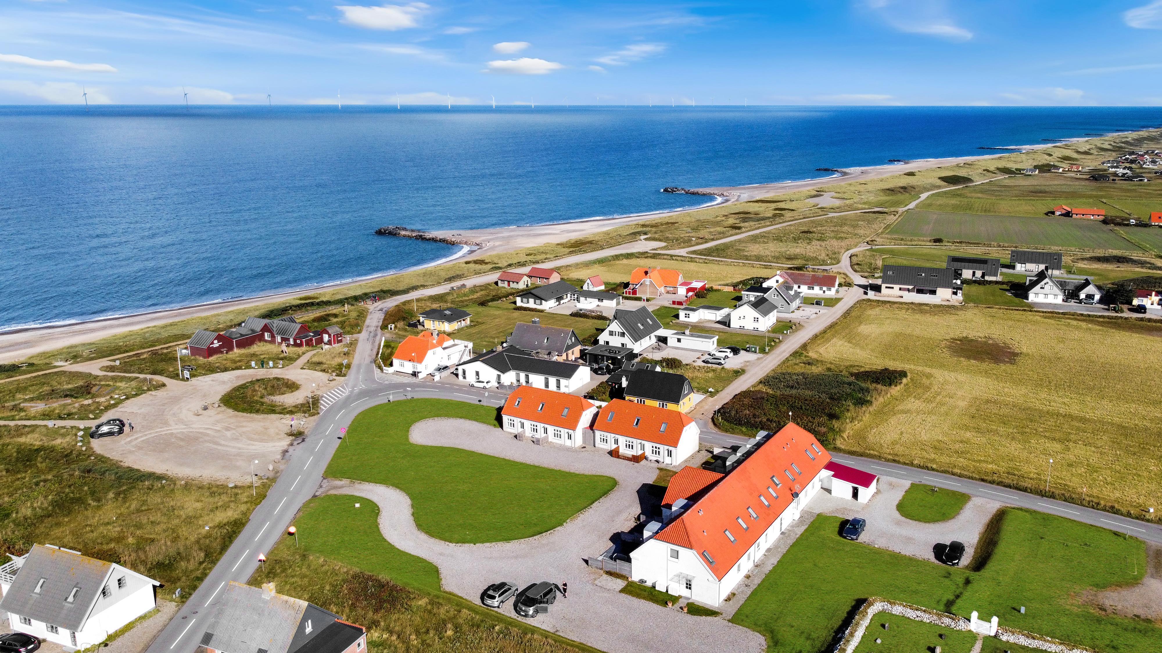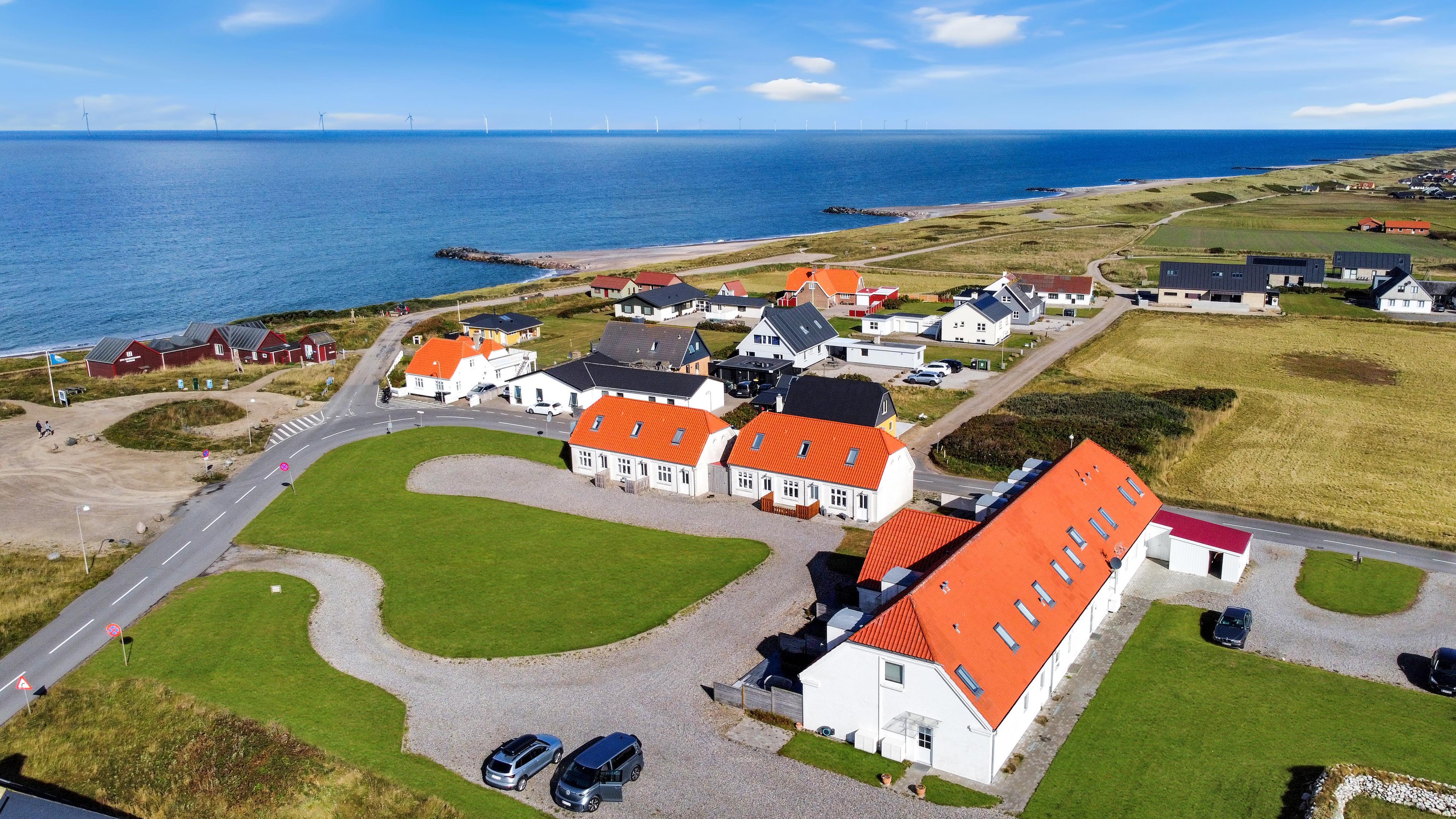 Huset ligger i et fredeligt område med kort afstand til både natur og kultur. I kan gå en tur til Jens Søndergaards Museum, udforske de smukke klinter eller besøge det historiske Bovbjerg Fyr. Samtidig er der kun en halv times kørsel til indkøbsmuligheder og forskellige aktiviteter, hvis I ønsker lidt afveksling fra roen ved havet.