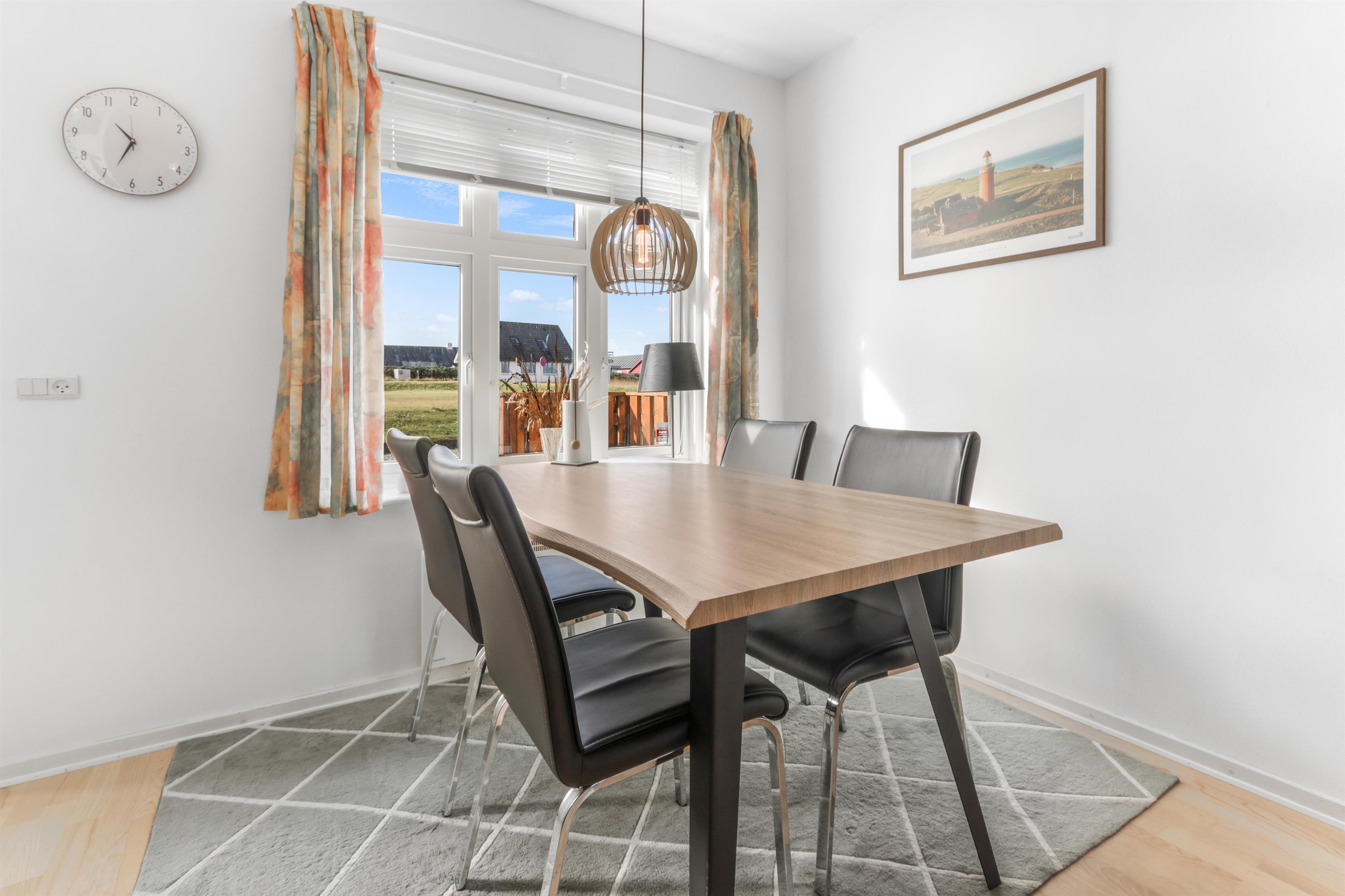 Dette hyggelige og velholdte rækkehus ligger kun 150 meter fra Vesterhavet og byder på den perfekte kombination af afslapning, naturoplevelser og hjemlig komfort. Her får I en ideel ramme for en ferie tæt ved Bovbjerg Fyr og de dramatiske klinter ved Bovbjerg, hvor havets brus og den friske luft sætter stemningen fra første øjeblik.