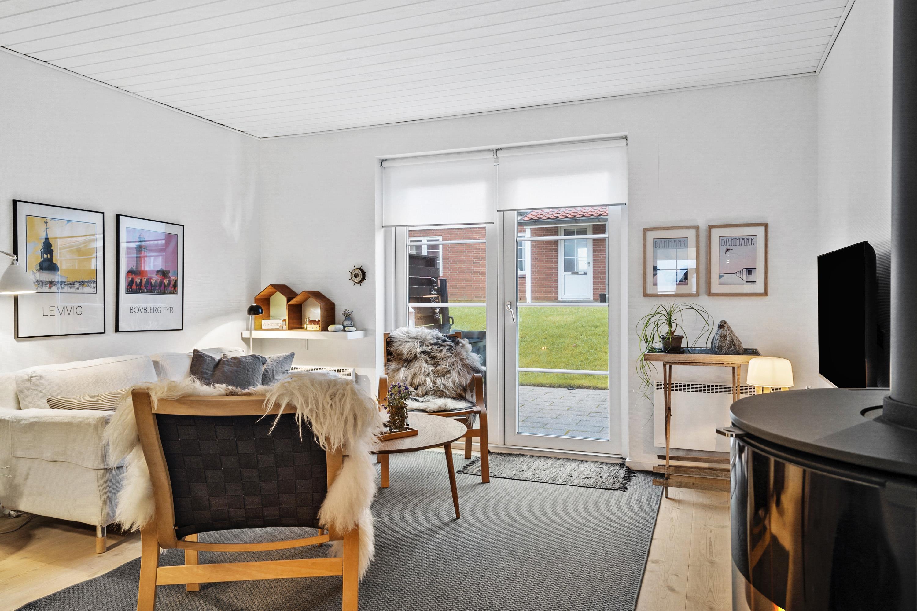Fra stuen er der udgang til en terrasse med havemøbler, hvor man kan nyde udsigten over området. Rækkehuset har en fantastisk beliggenhed tæt på Bovbjerg Fyr, Jens Søndergaards Museum og kun 300 meter fra Bovbjerg Klint ved Vesterhavet.