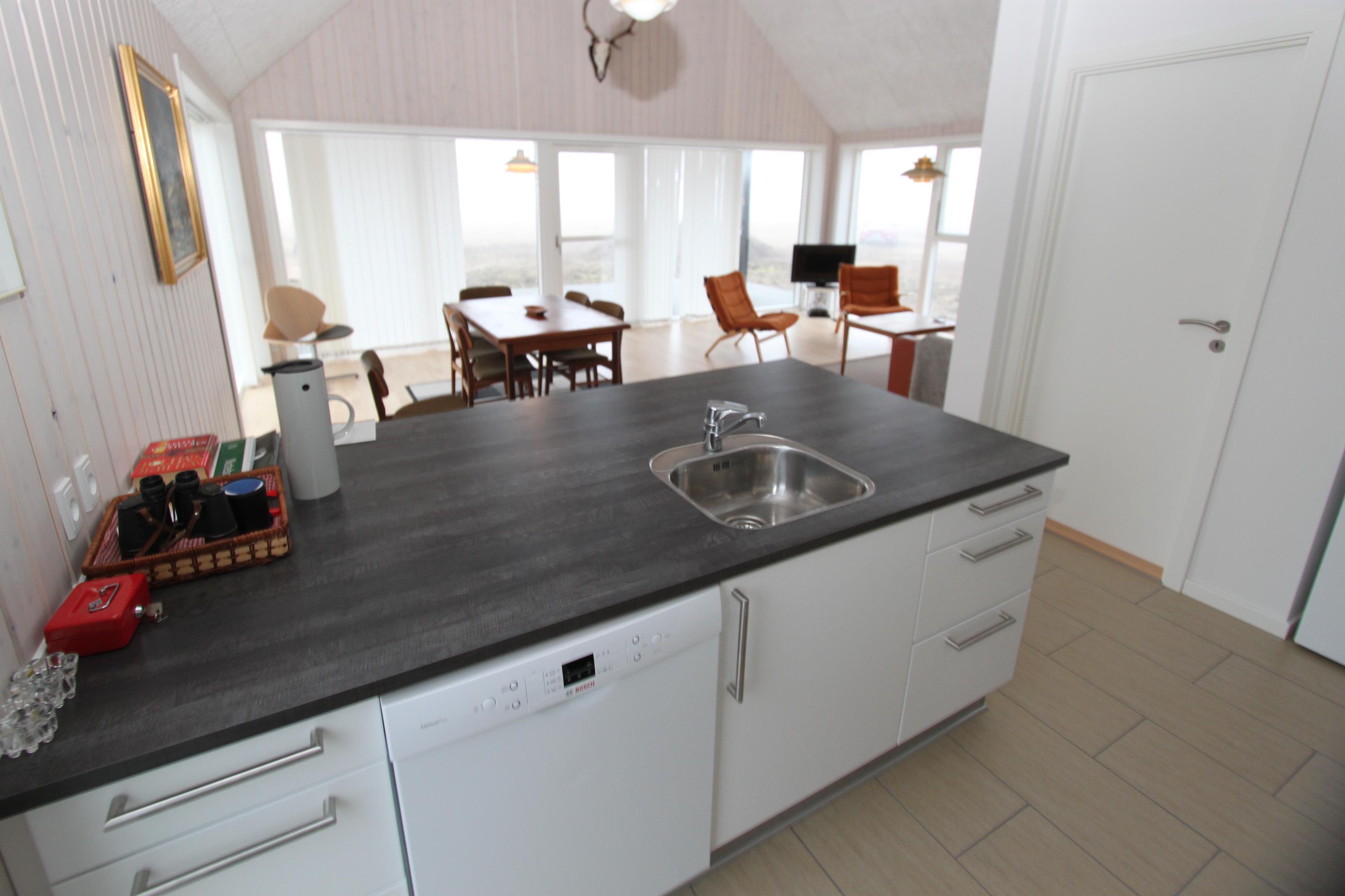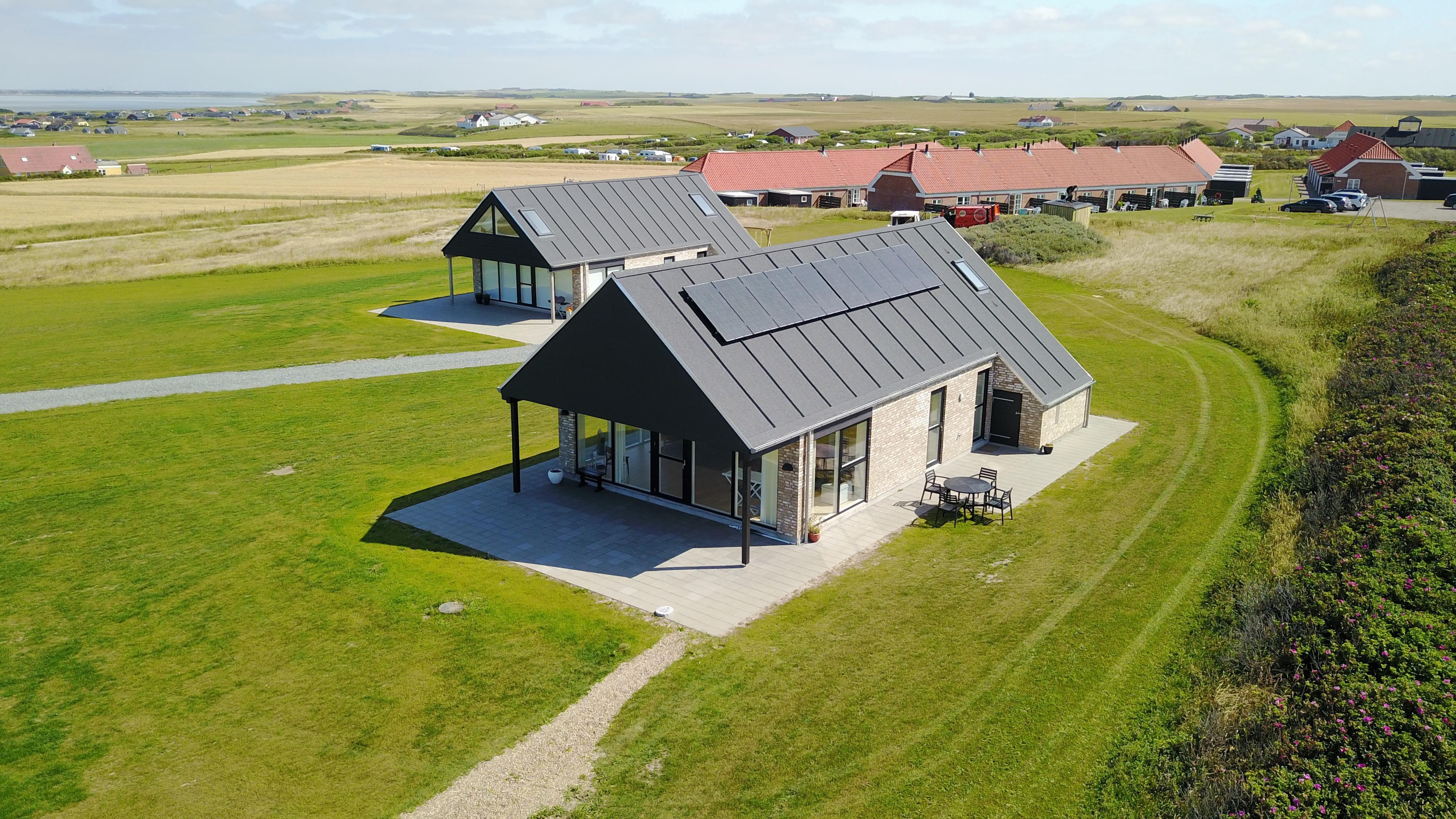 Dette nybyggede feriehus ligger optimalt på en naturgrund direkte ved Vesterhavet og har et rigtig godt lysindfald fra de store vinduespartier og lofter der åbne til kip. Stuen er med trægulve og god møblering, her er der fladskærms-TV med DR-kanaler samt parabol til at modtage de tyske kanaler. Køkkenet, som er kombineret med stuen, er med klinkegulv og godt udstyret med bl.a. opvaskemaskine og fungerer som et samtalekøkken, hvor man kan sidde ved baren og følge med i madlavningen. Der er varmepumpe installeret, hvilket gør huset til energibesparende. Bryggers med vaskesøjle med vaskemaskine og tørretumbler. Badeværelset er med gulvvarme og bruser og sauna. 3 soverum med 1DS + 1DS + 1S samt en hems med 2 sovemuligheder. Et husdyr er tilladt. Dette er et ikke rygerhus.