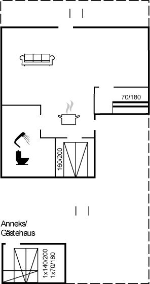 Der er i alt 3 soveværelser. Sovepladserne fordeler sig på: 4 sovepladser i dobbeltsenge. 3 sovepladser i køjesenge. 2 af disse sovepladser befinder sig i et anneks. Derudover er der 1 stk. barneseng.