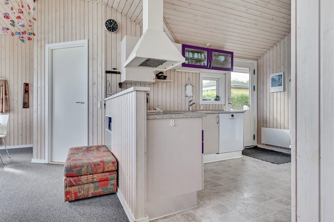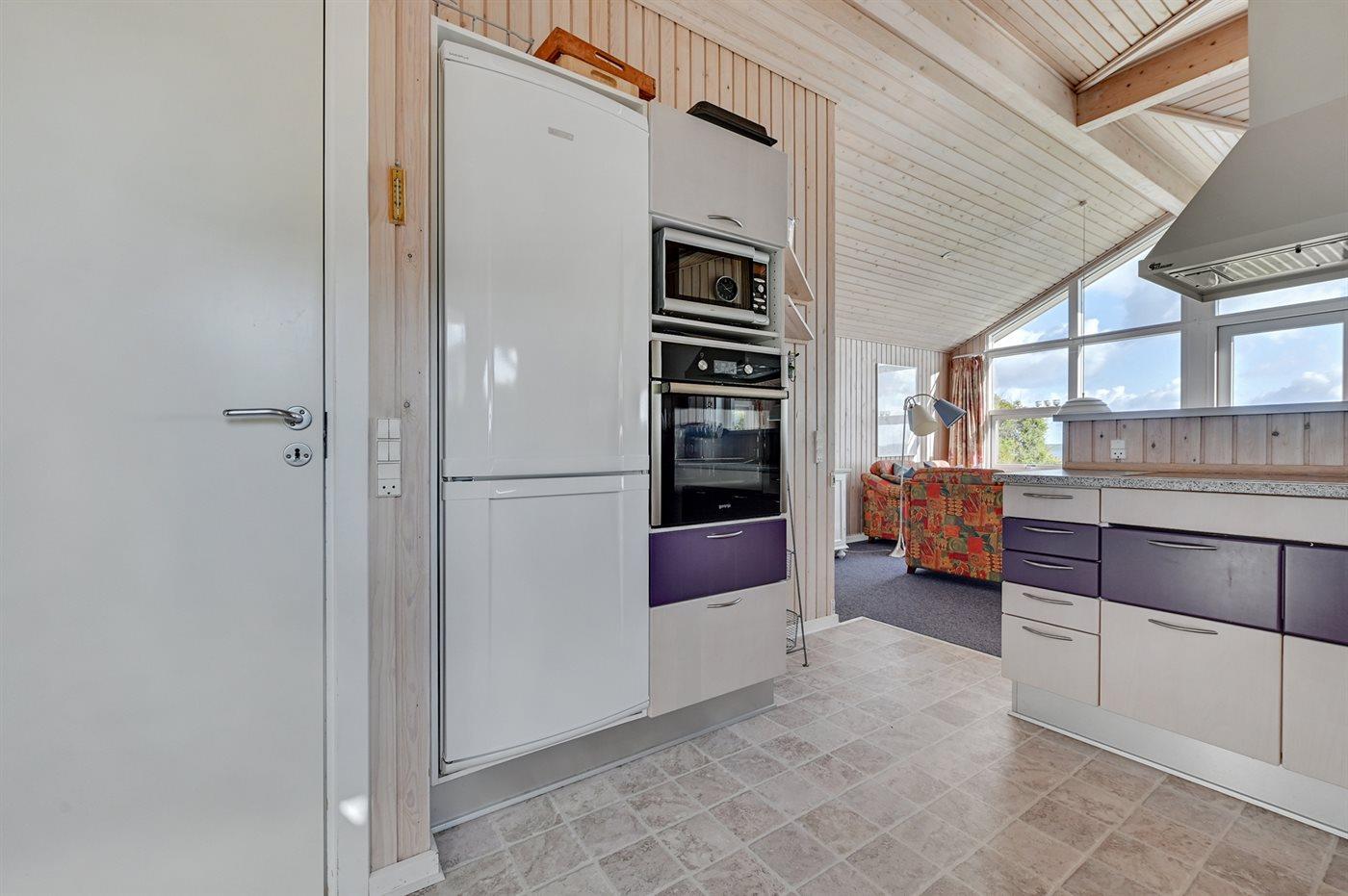 Køkkenet er udstyret med 1 køleskab. Der er 4 keramiske kogeplader, varmluftovn, mikrobølgeovn samt opvaskemaskine.