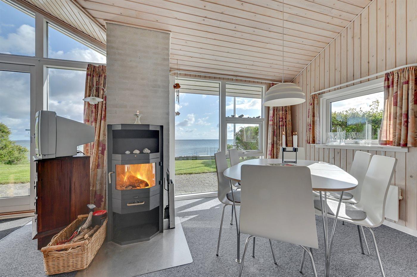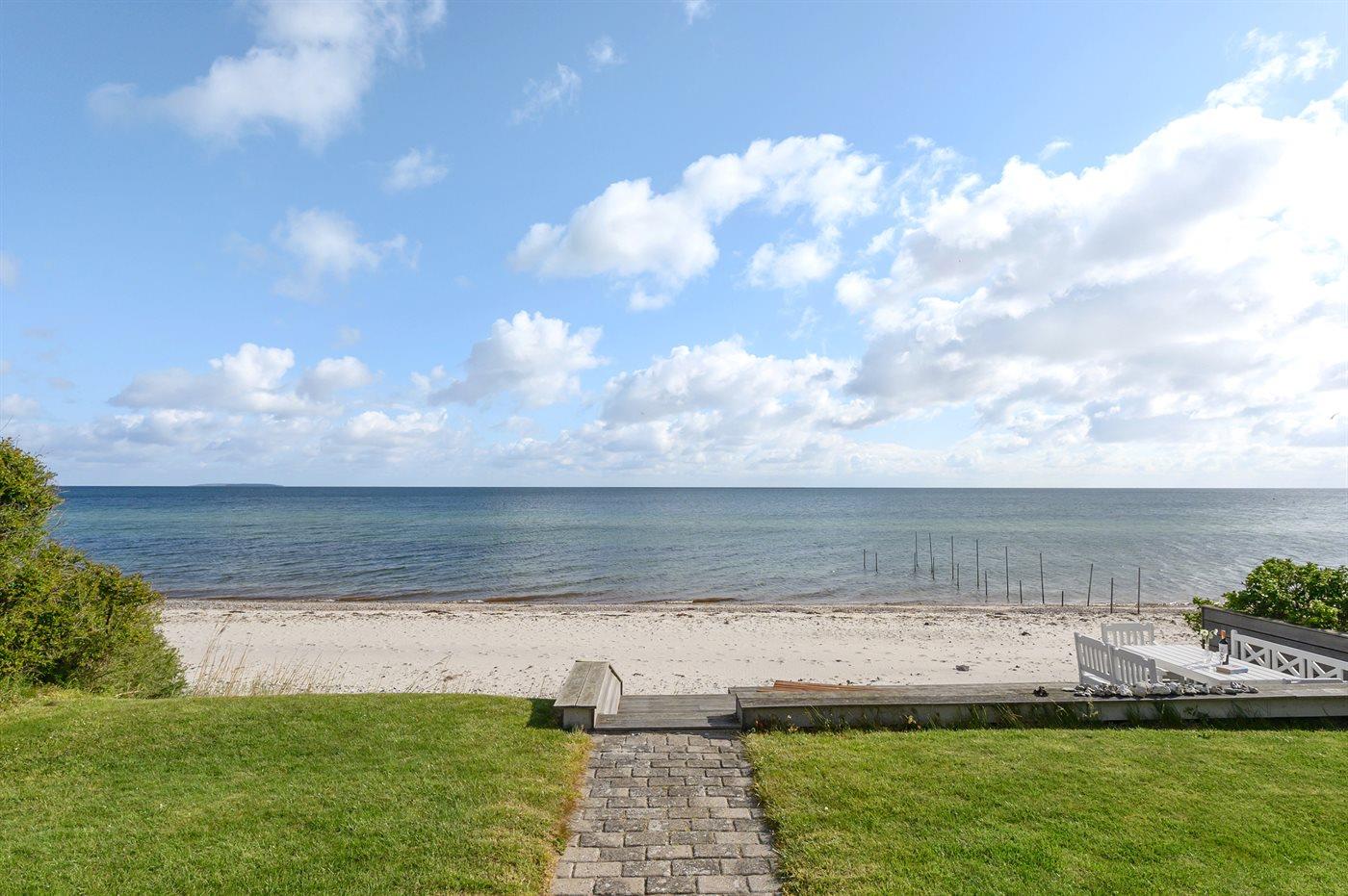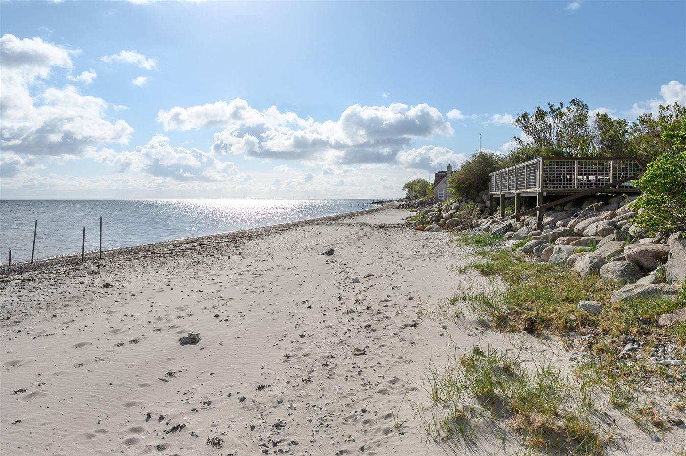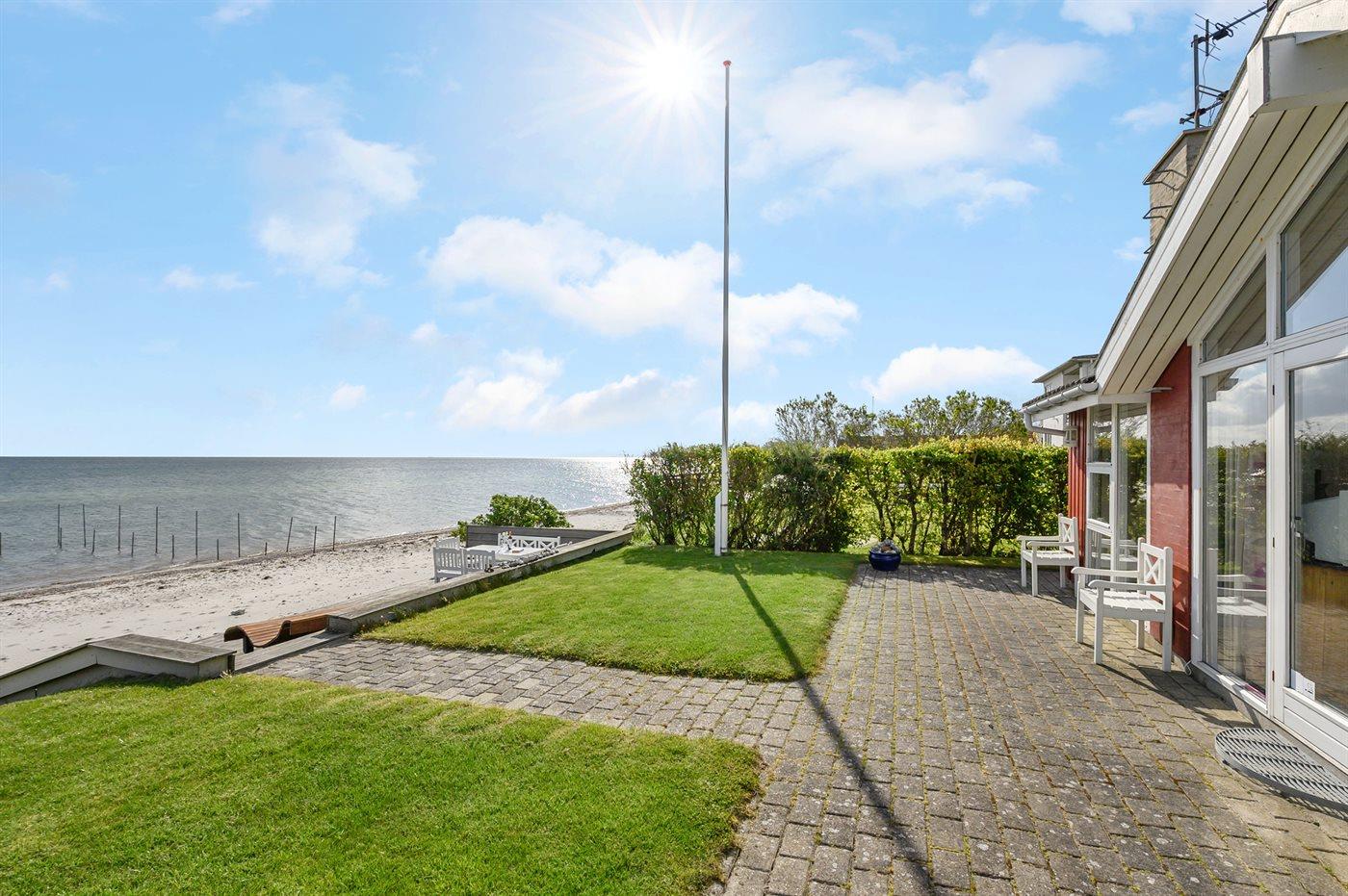 Dette dejlige sommerhus ligger kun 5 m fra vandkanten med en vidunderlig panoramaudsigt over havet. Til huset hører bl.a. en stor og lækker træterrasse, som går helt ned til stranden. Desuden tilhørende anneks, hvor 3 af sovepladserne befinder sig.