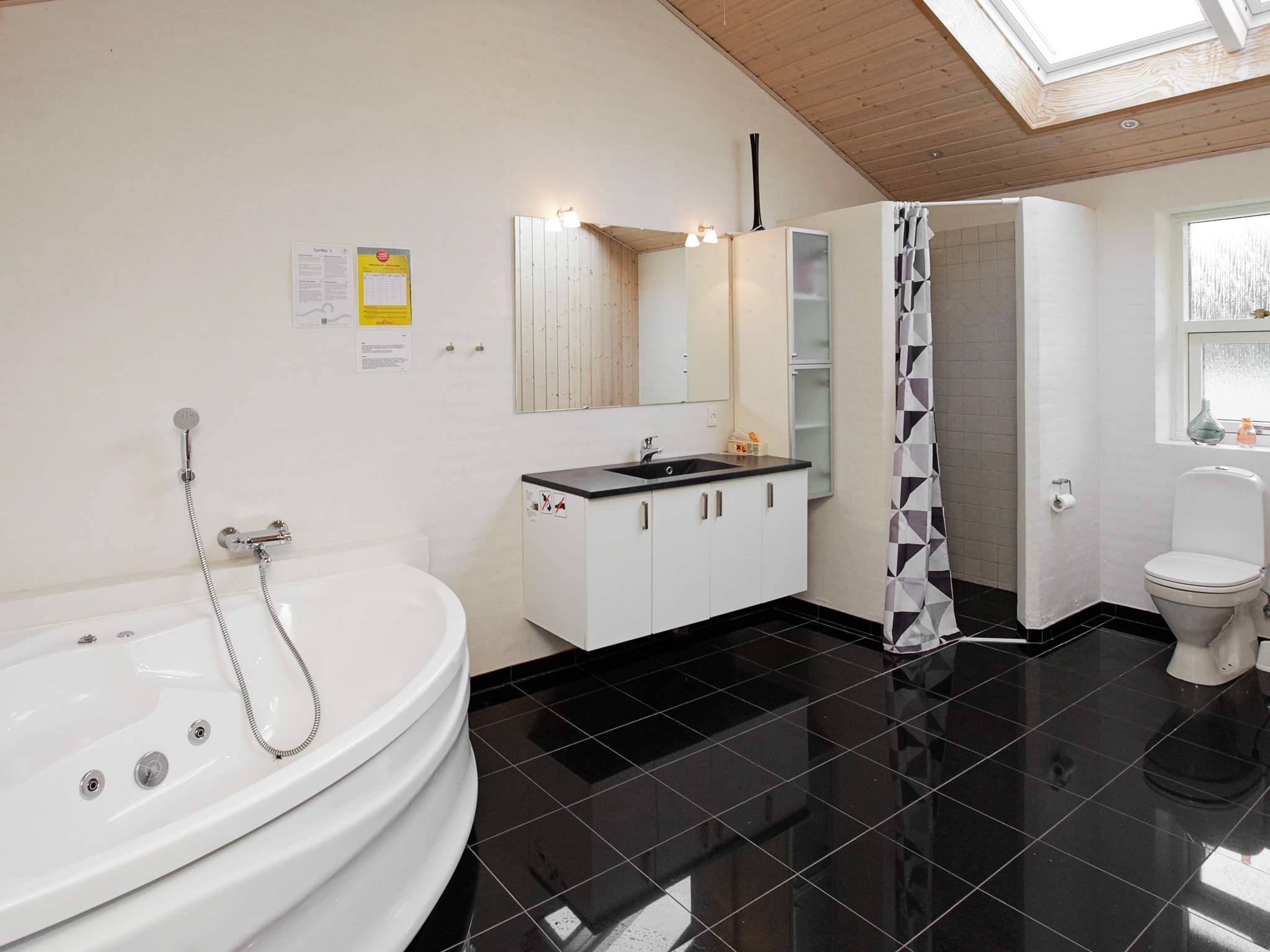 I det attraktive sommehusområde Bratten Strand ligger dette store og velindrettede sommerhus. Der er to badeværelser, hvoraf det ene er stort og byder på sauna og et fristende spabad. Det er udstyret med fire soveværelser, med 2 i hver ende af huset. Indgang ved entré til stort køkken/alrum, spisestue og tv-stue i et stort rum med brændeovn og Overalt er der brugt de bedste materialer, og med lyse trægulve og store vestvendte vinduespartier fremtræder huset meget lyst og indbydende. Fra stuen er der udgang til en vestvendt terrasse, hvorfra der er udsigt over åbne naturområder.