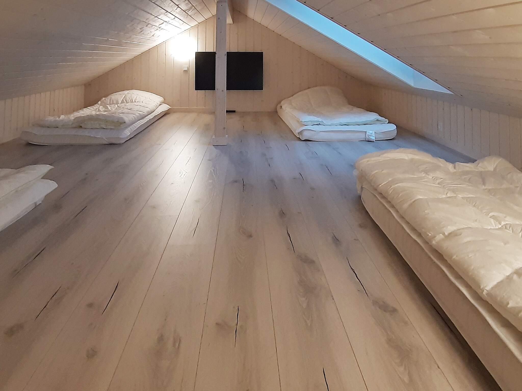 Huset rummer ikke mindre end 9 soverum og hems med 4 sovepladser. Derudover er der også 3 badeværelser samt et ekstra toilet i forbindelse med aktivitetsrummet.